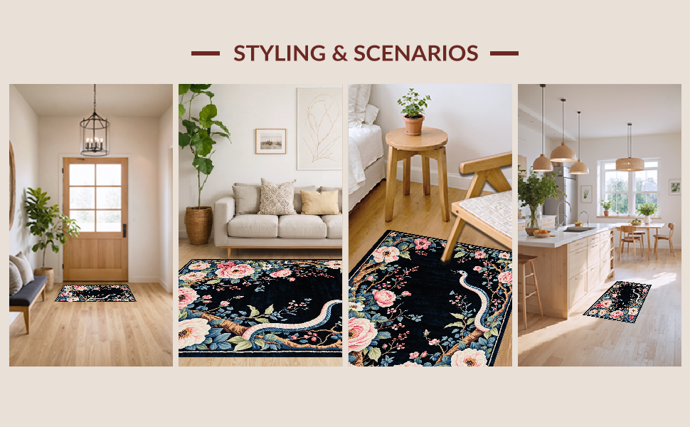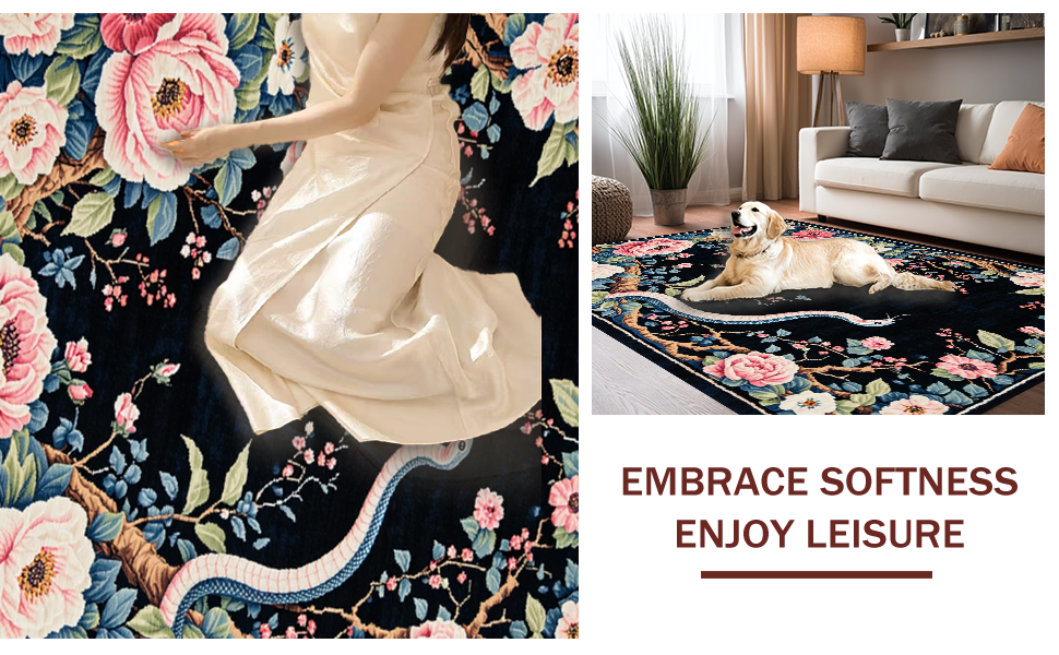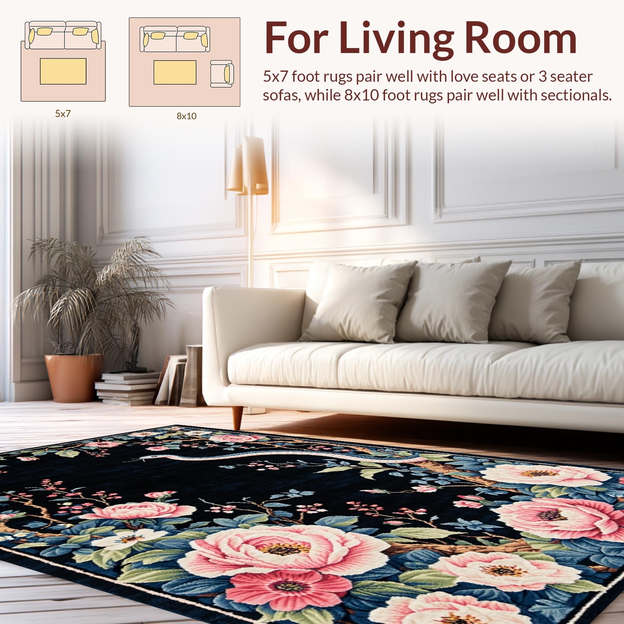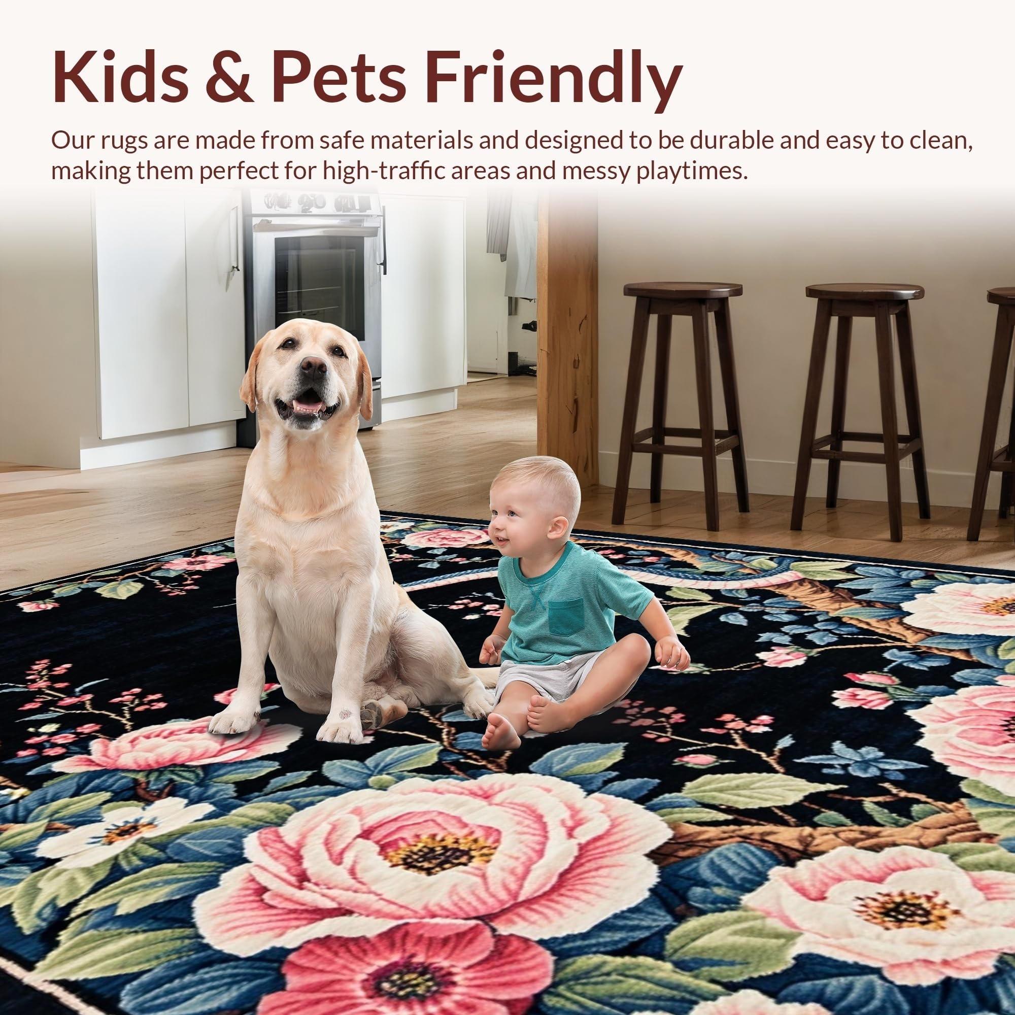 Ultra Soft Area Rug, Non Slip, Stain Resistant, Washable Area Rugs for Living Room, Bedroom, Elegant Black and Pink Fusion(Black) Overview: