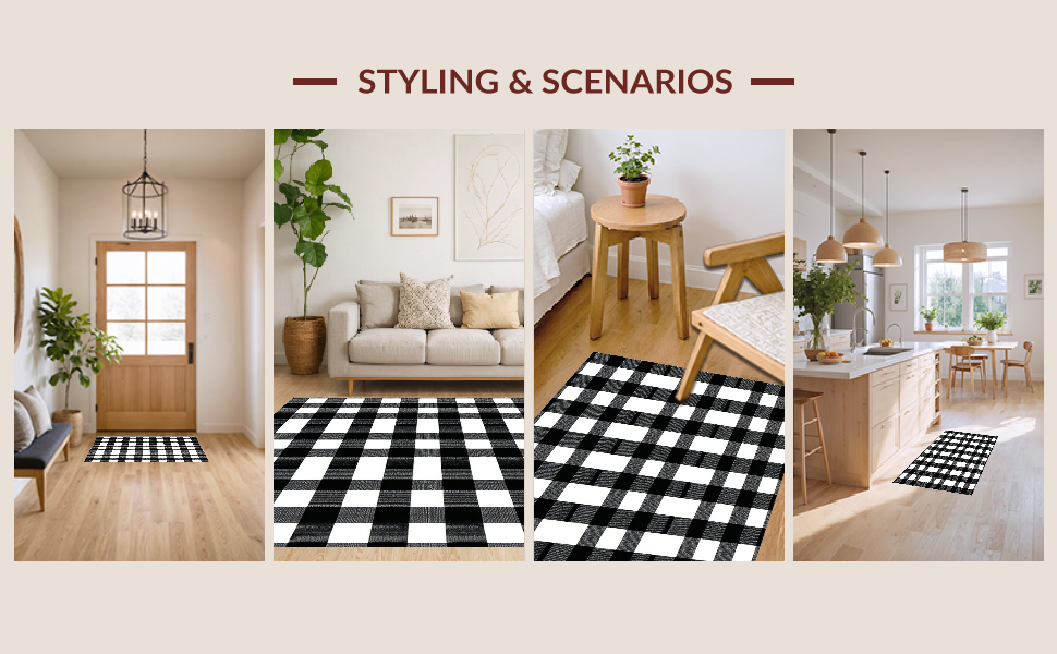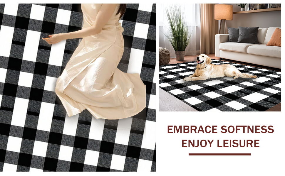 Ultra Soft Area Rug, Non Slip, Stain Resistant, Washable Area Rugs for Living Room, Bedroom, Elegant Black and White Checkerboard(Black) Overview: