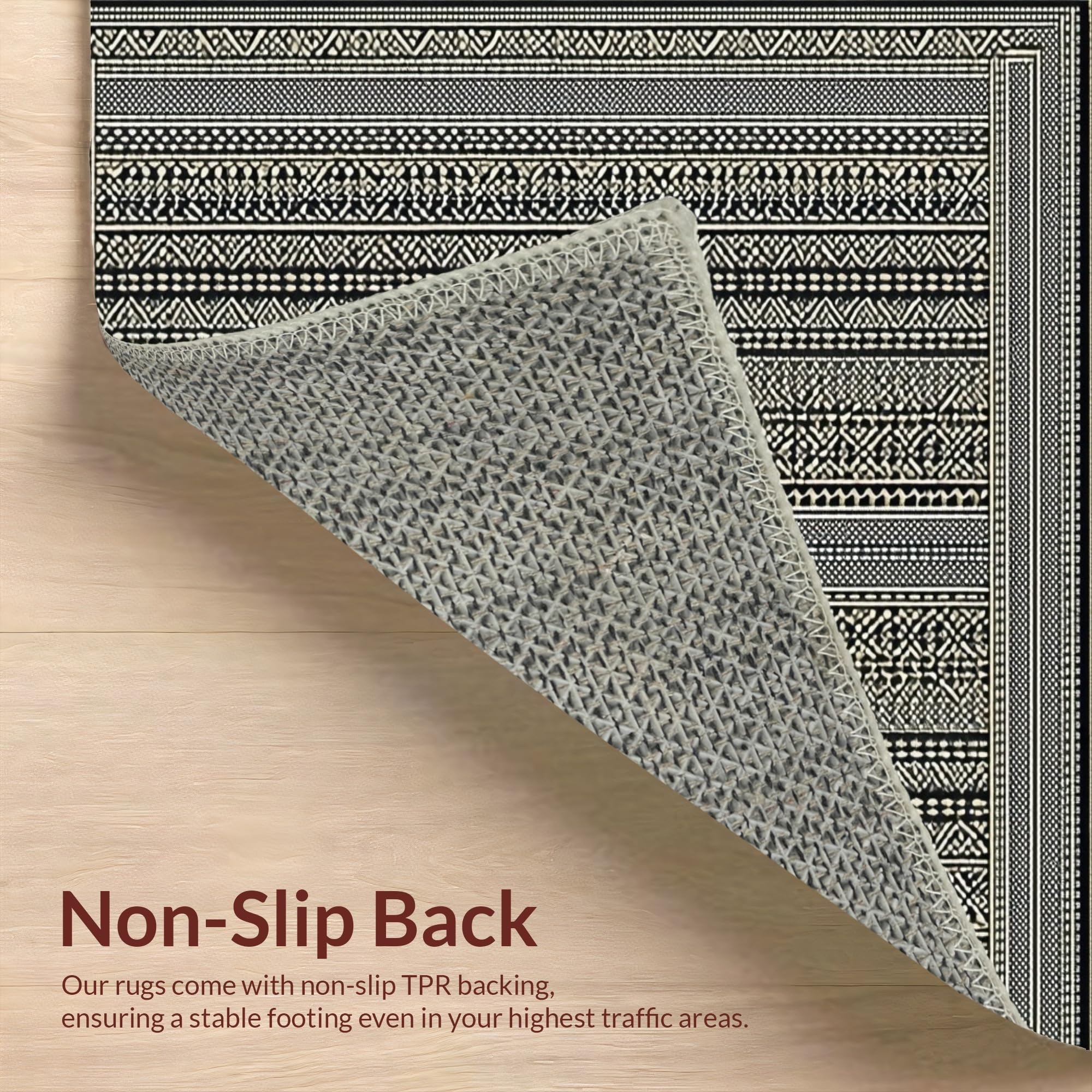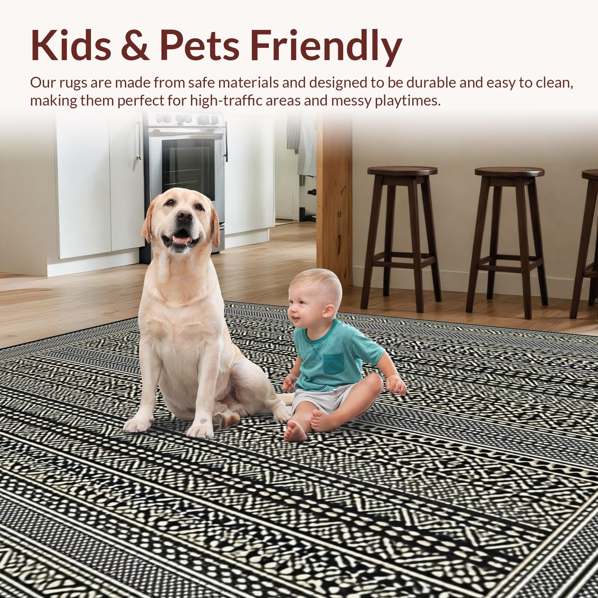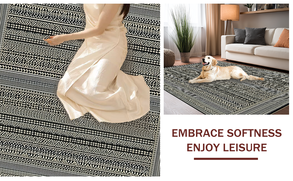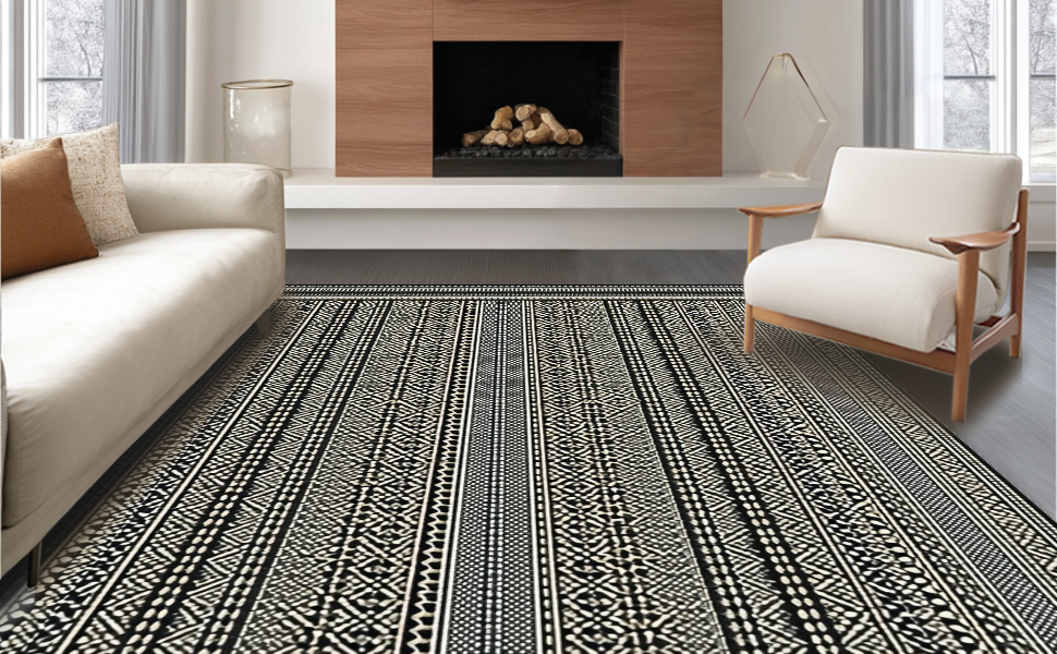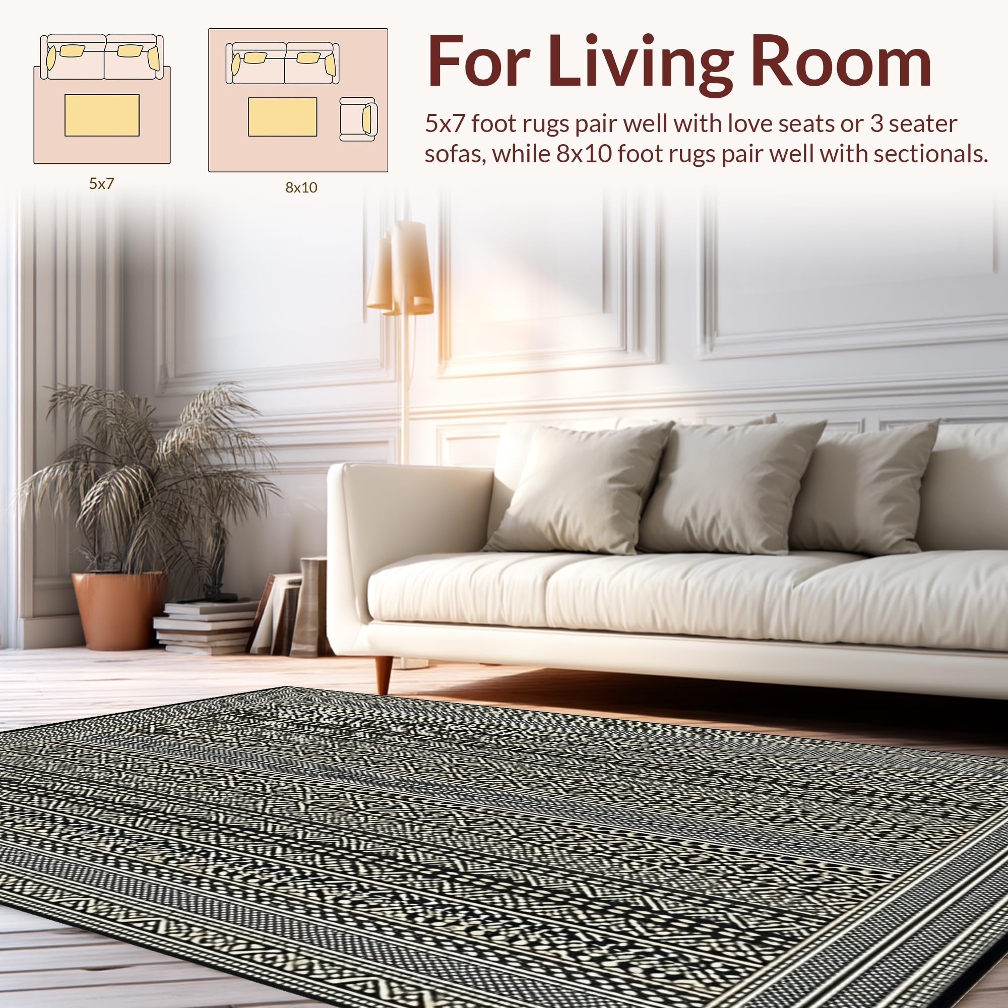 Ultra Soft Area Rug, Non Slip, Stain Resistant, Washable Area Rugs for Living Room, Bedroom, Elegant Black and White Trellis(Black) Overview: