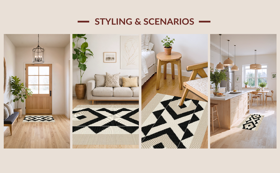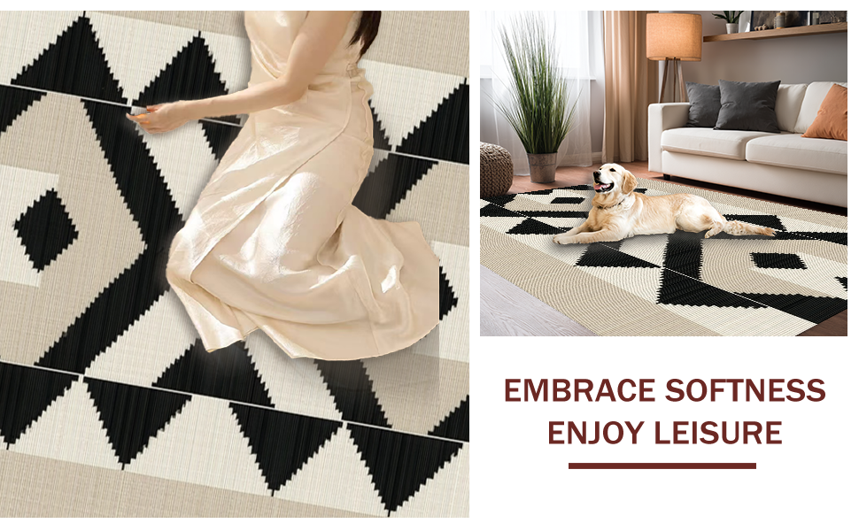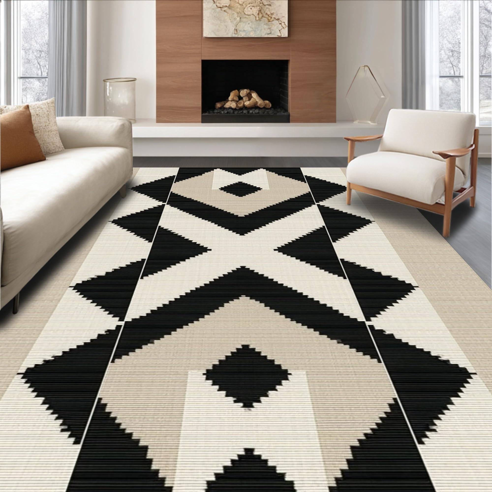 Ultra Soft Area Rug, Non Slip, Stain Resistant, Washable Area Rugs for Living Room, Bedroom, Elegant Black Diamond Pattern(Beige) Overview: