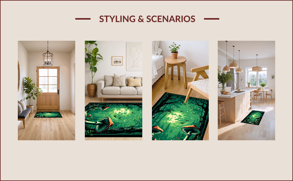 Ultra Soft Area Rug, Non Slip, Stain Resistant, Washable Area Rugs for Living Room, Bedroom, Elegant Black Floral Aesthetic(Green) Overview: