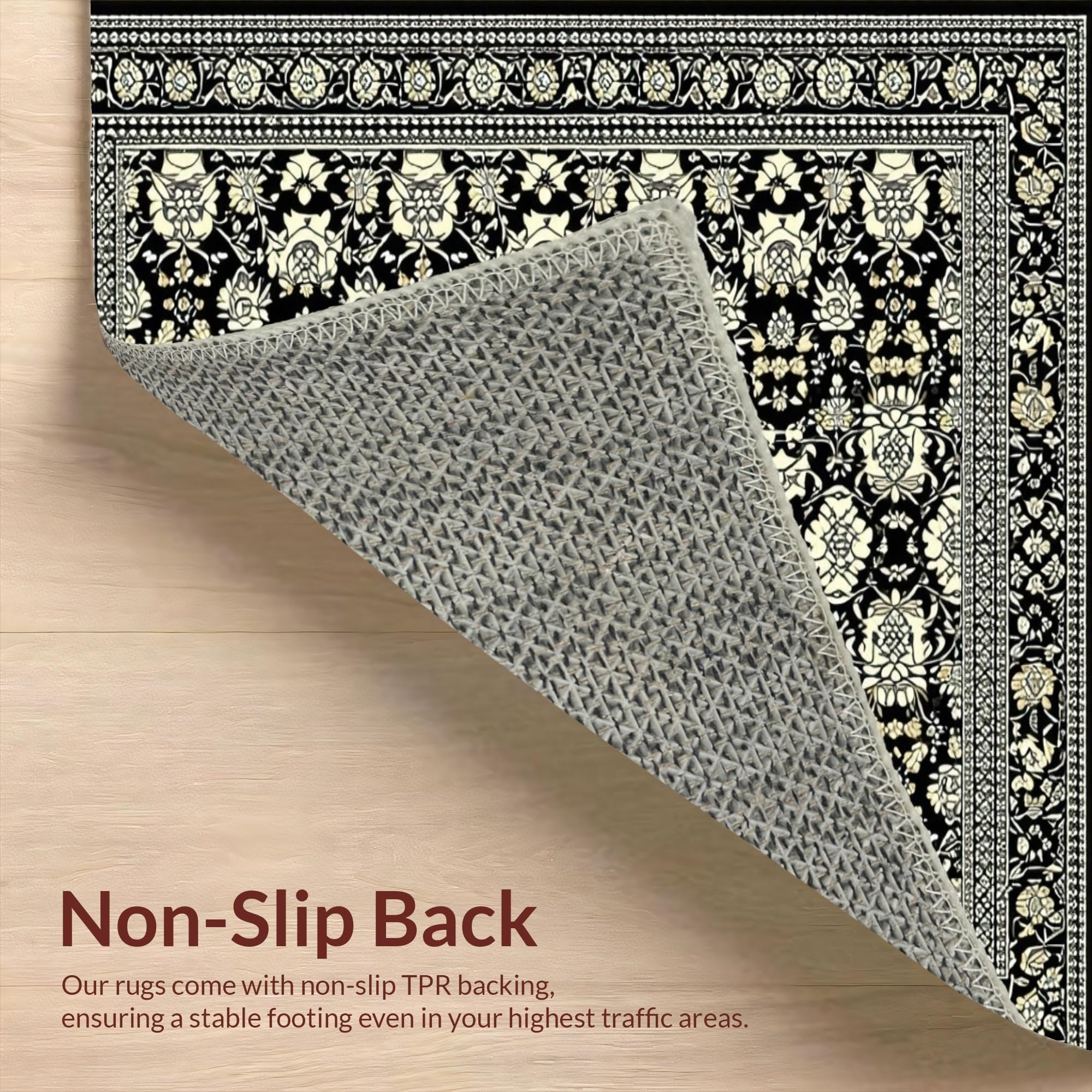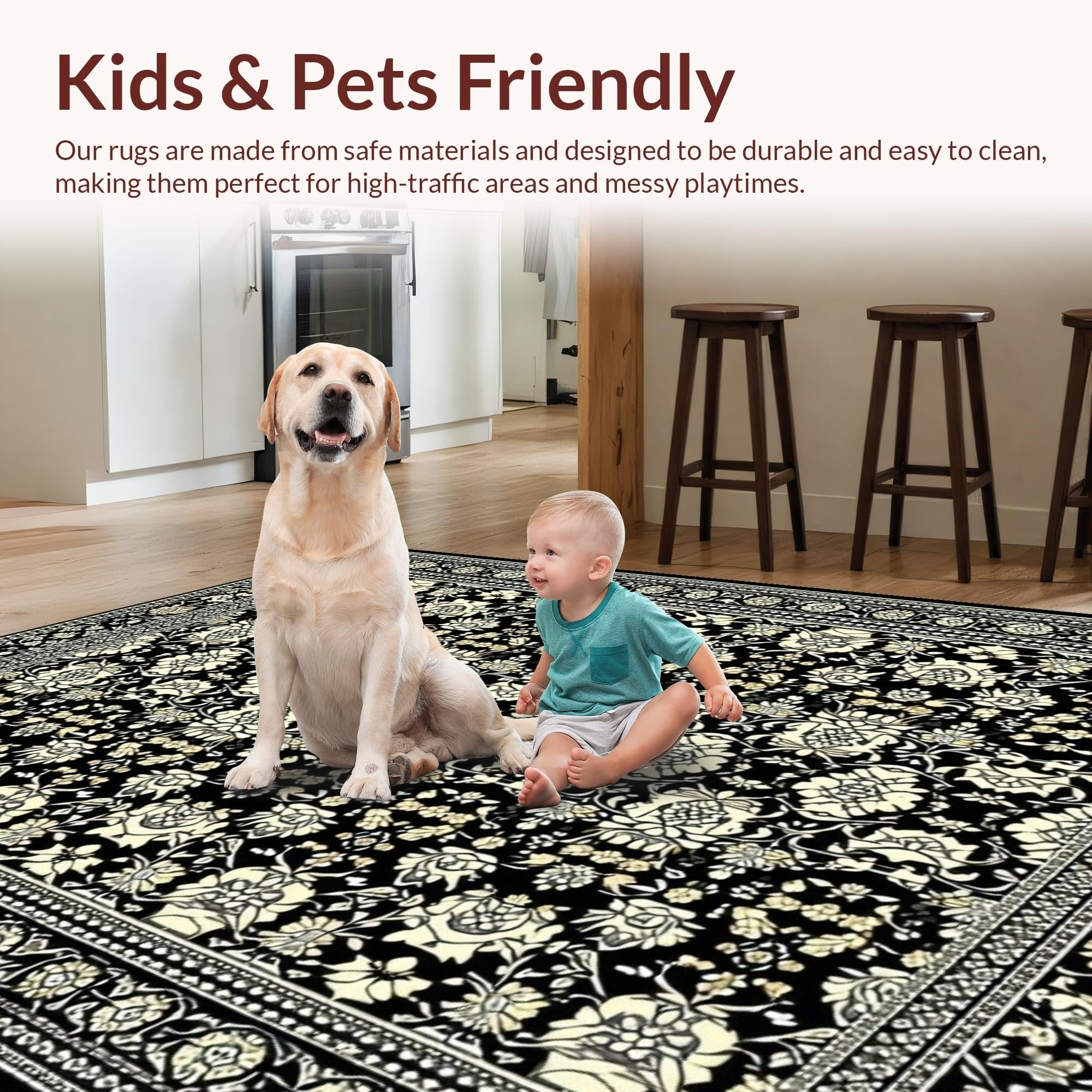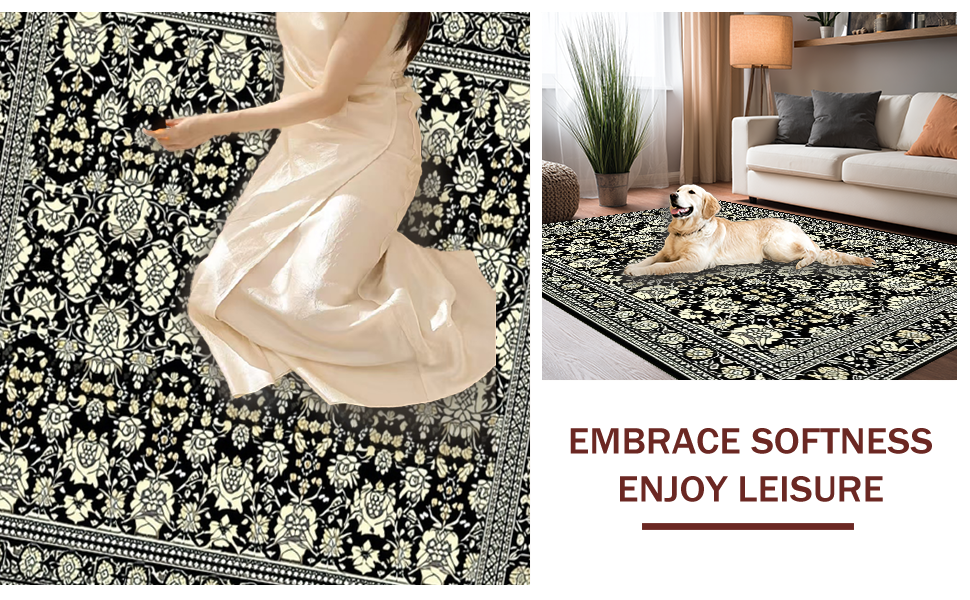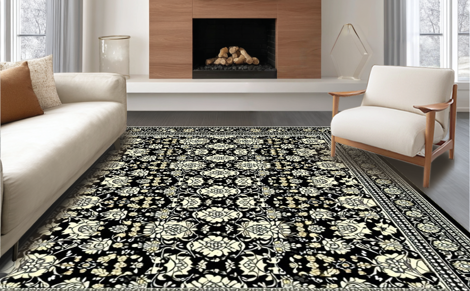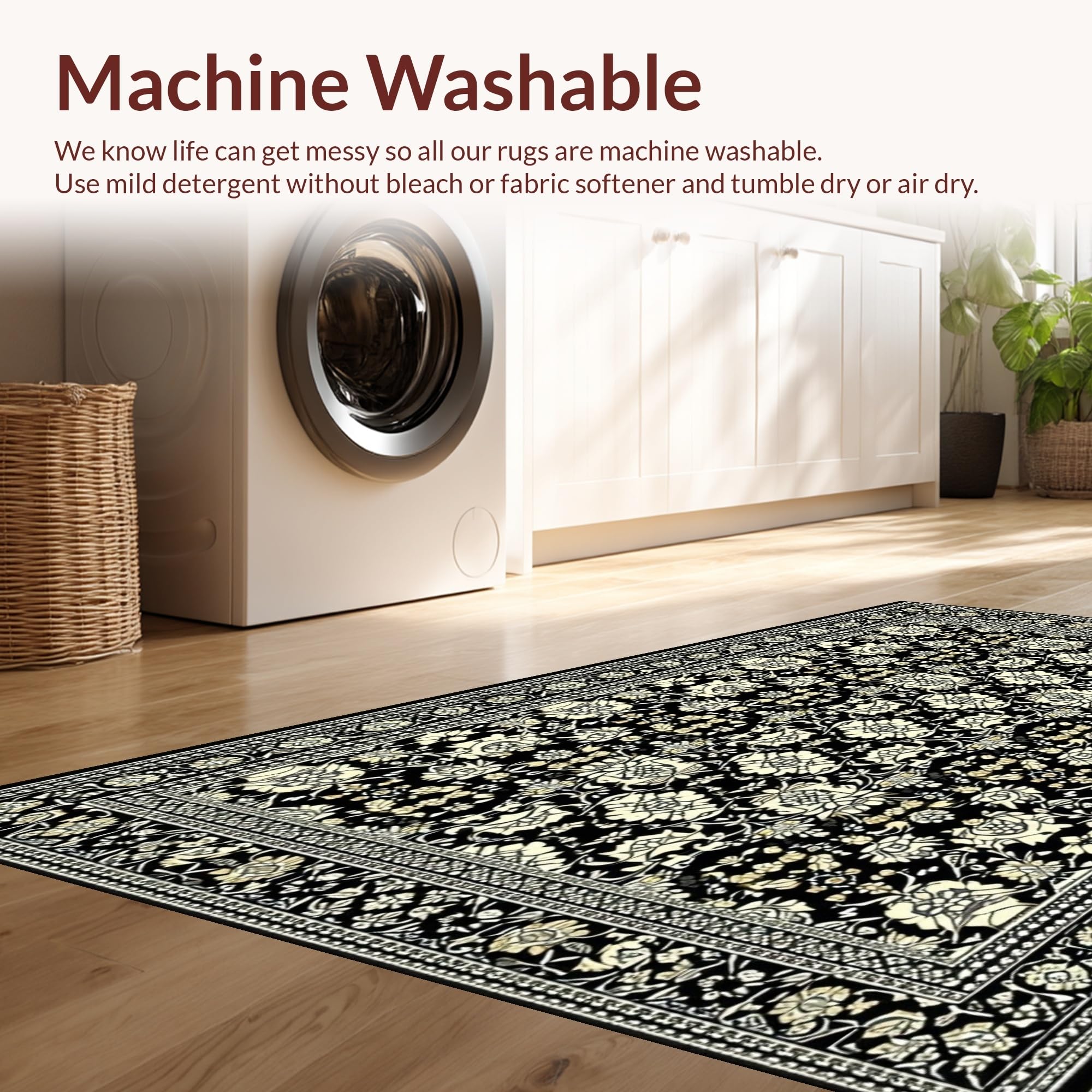 Ultra Soft Area Rug, Non Slip, Stain Resistant, Washable Area Rugs for Living Room, Bedroom, Elegant Black Floral Medley(Black) Overview: