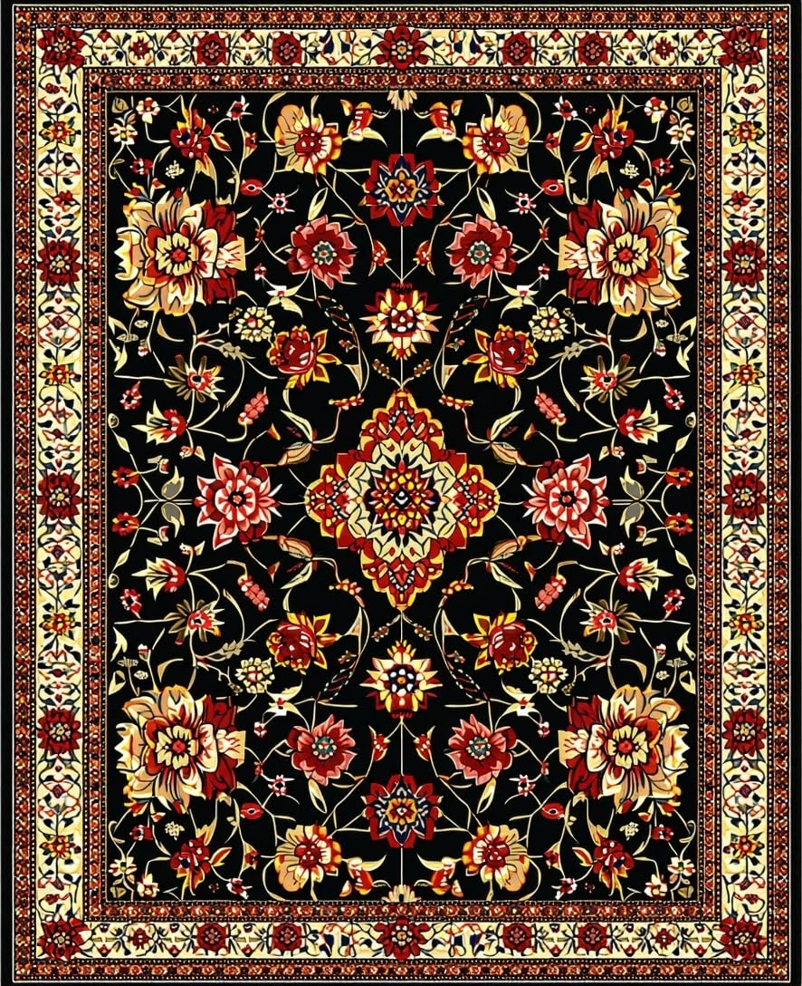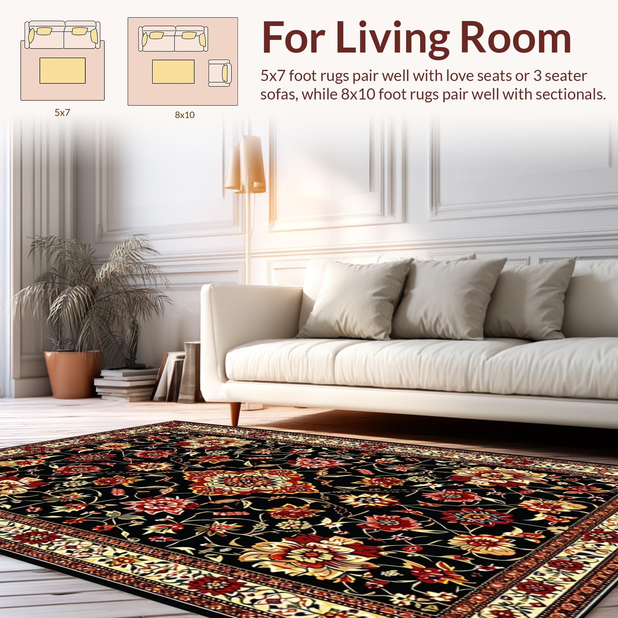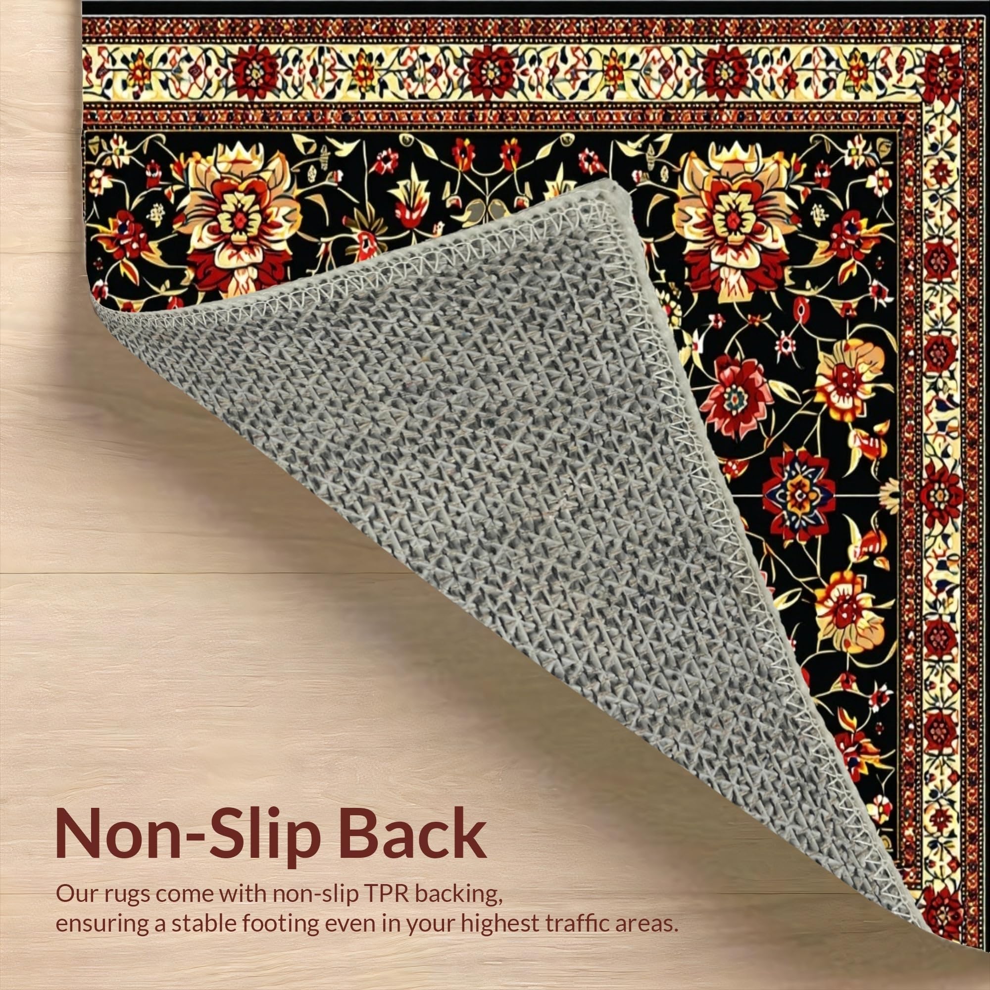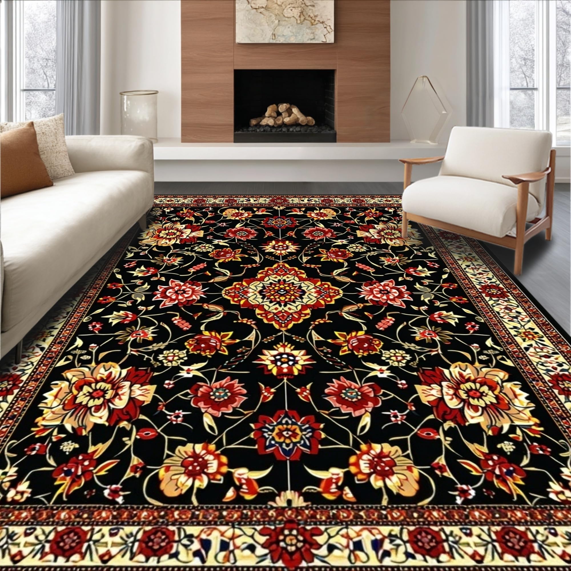 Ultra Soft Area Rug, Non Slip, Stain Resistant, Washable Area Rugs for Living Room, Bedroom, Elegant Black Floral Symmetry(Black) Overview: