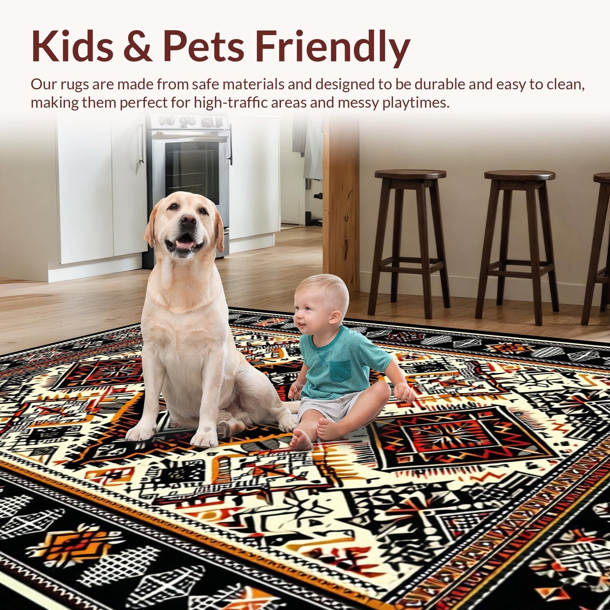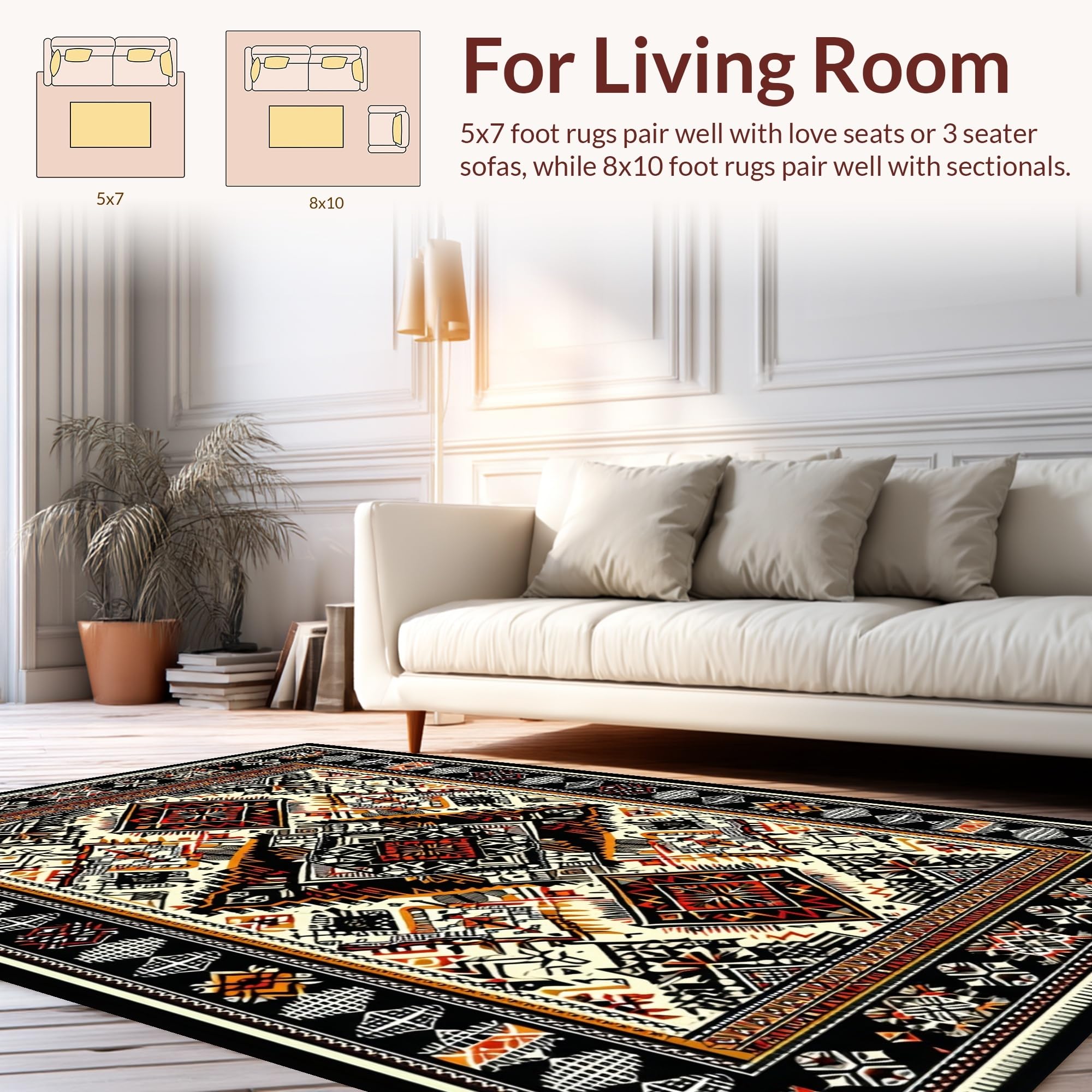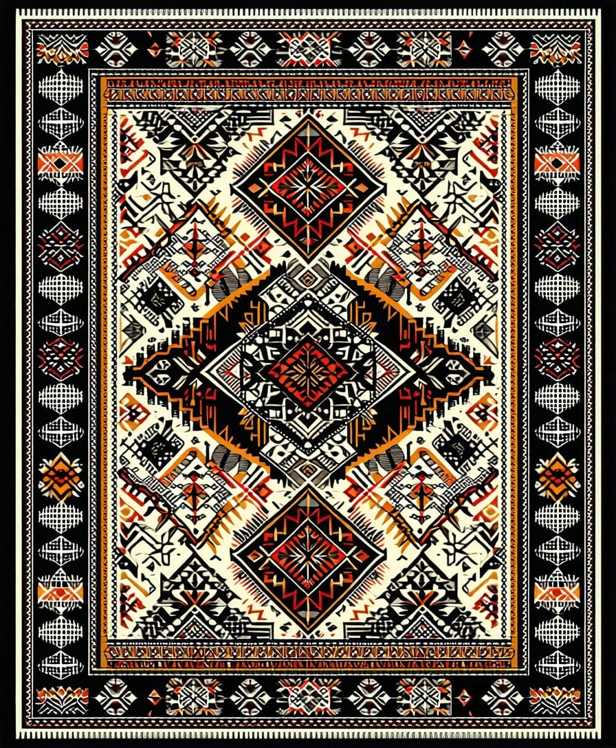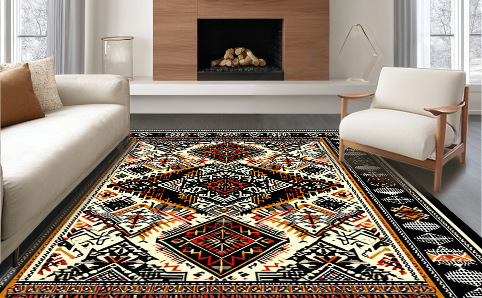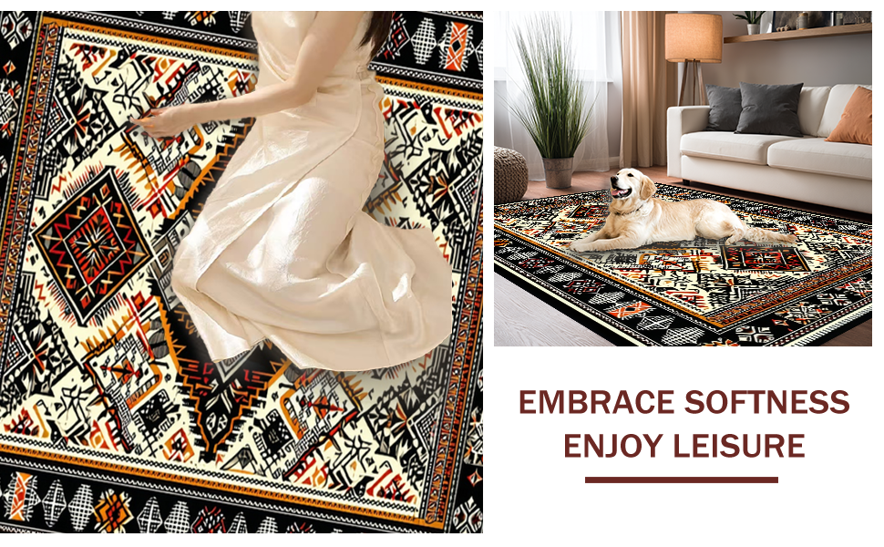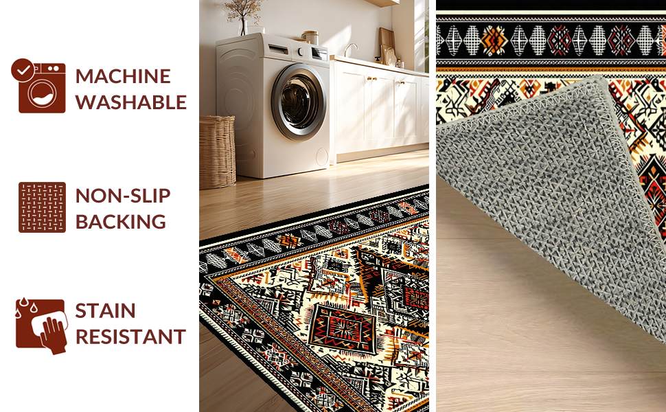 Ultra Soft Area Rug, Non Slip, Stain Resistant, Washable Area Rugs for Living Room, Bedroom, Elegant Black Geometric Motif(Black) Overview: