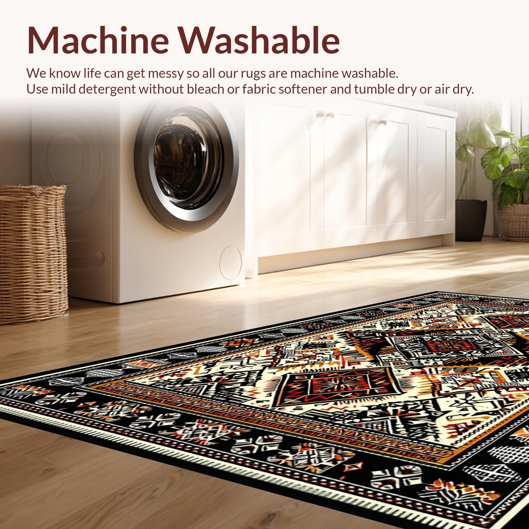 - Machine Washable: Our rugs can be easily thrown in the wash machine.
