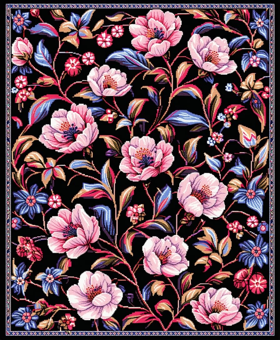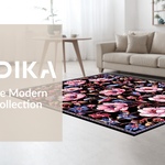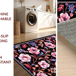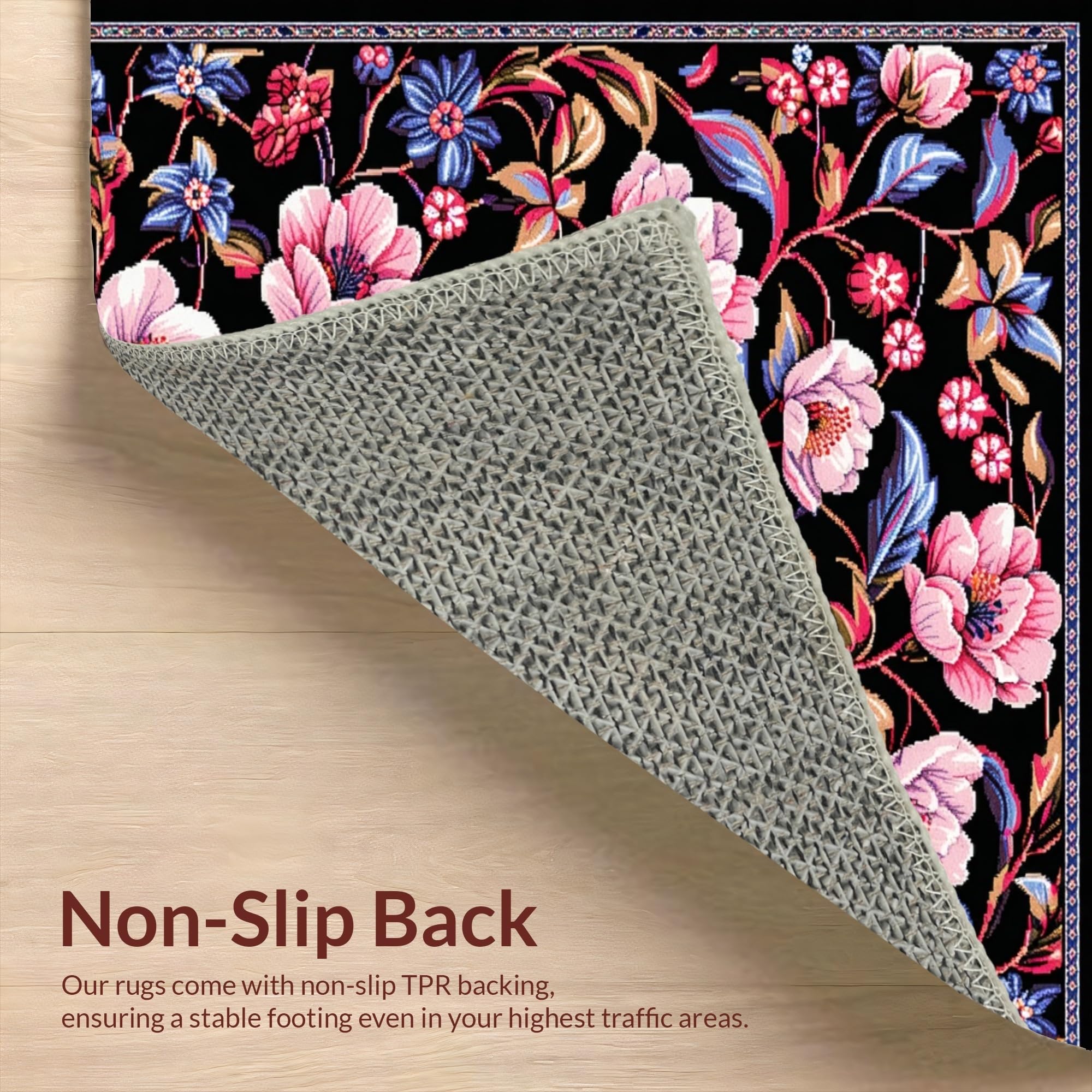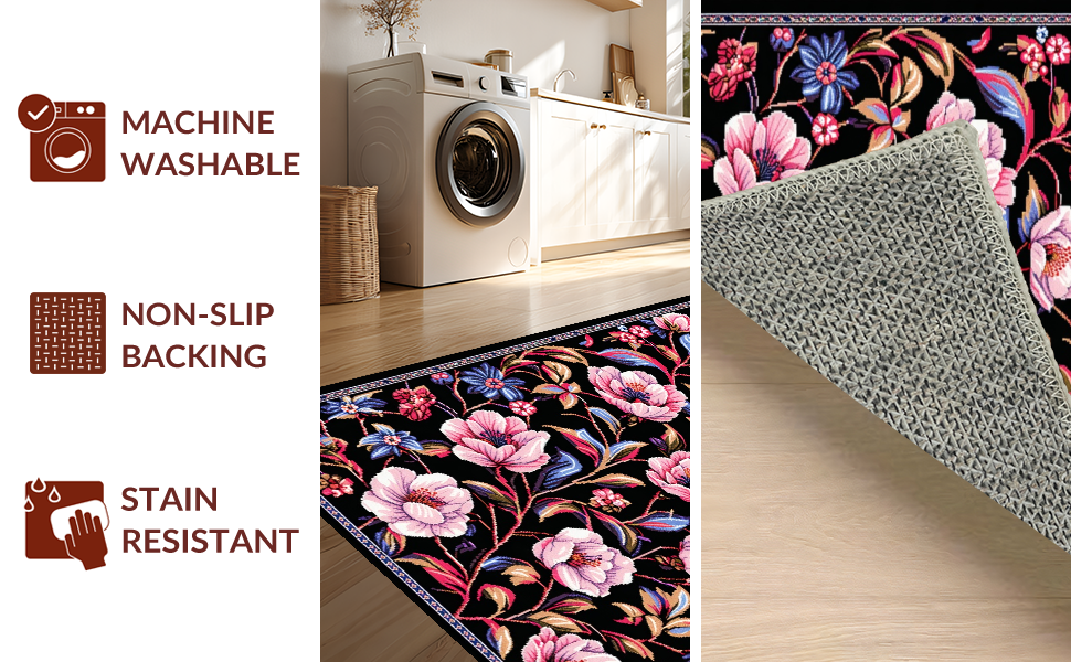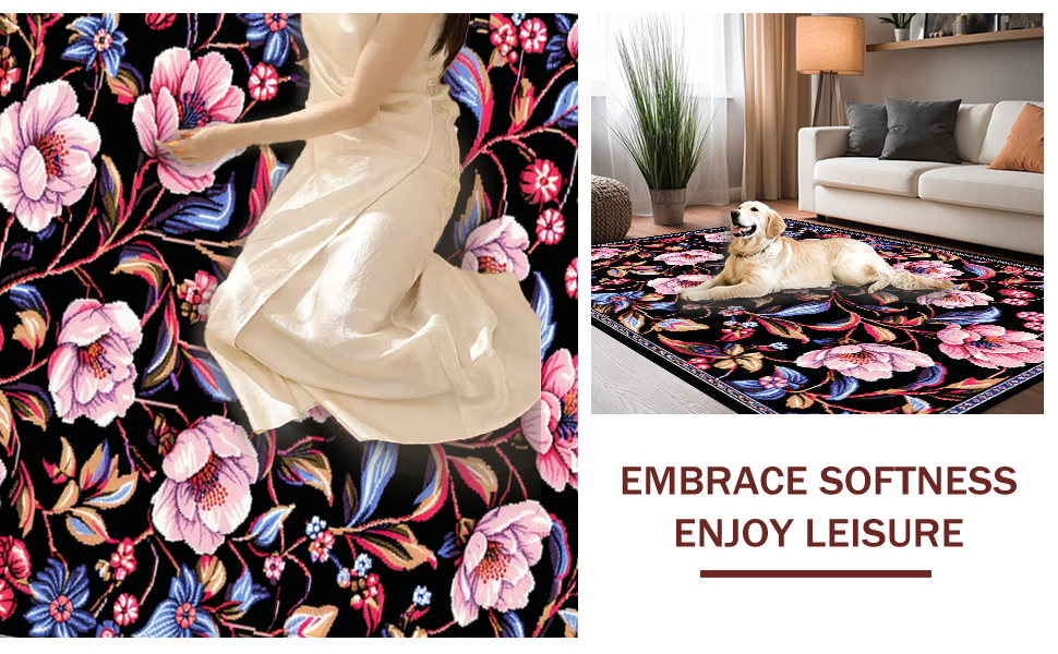 Ultra Soft Area Rug, Non Slip, Stain Resistant, Washable Area Rugs for Living Room, Bedroom, Elegant Black Pink Botanical Motif(Black) Overview: