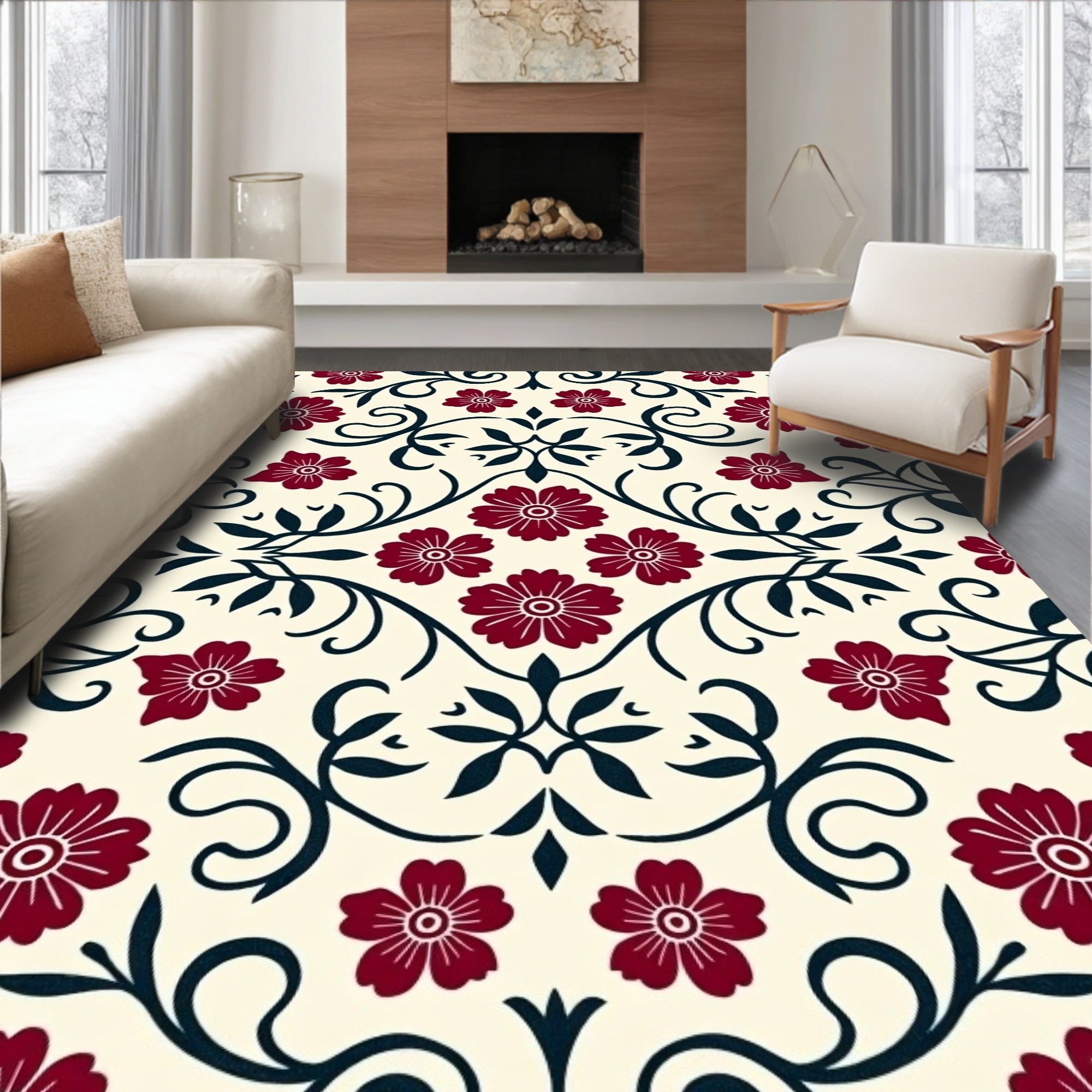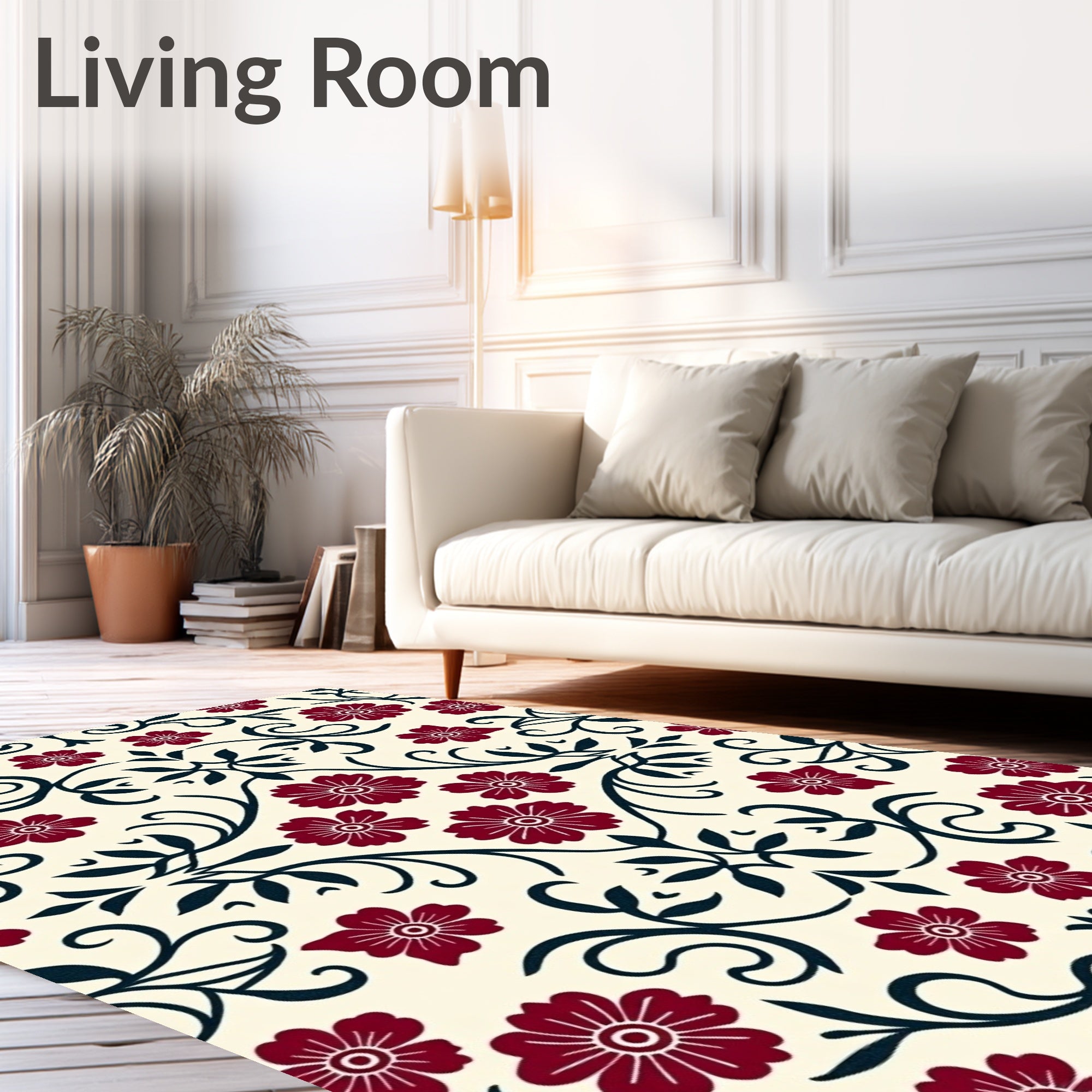 Ultra Soft Area Rug, Non Slip, Stain Resistant, Washable Area Rugs for Living Room, Bedroom, Elegant Blooming Vine Trellis(Ivory) Overview: