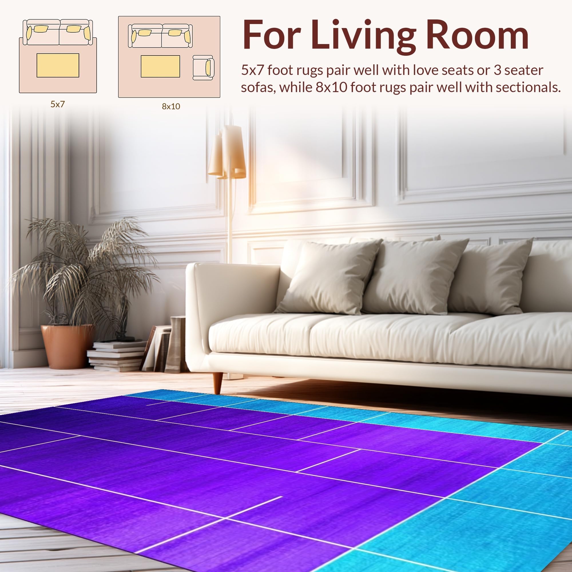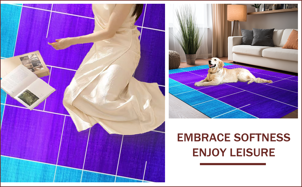 Ultra Soft Area Rug, Non Slip, Stain Resistant, Washable Area Rugs for Living Room, Bedroom, Elegant Blue and Purple Medallion(Purple) Overview: