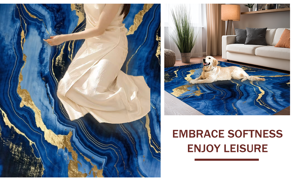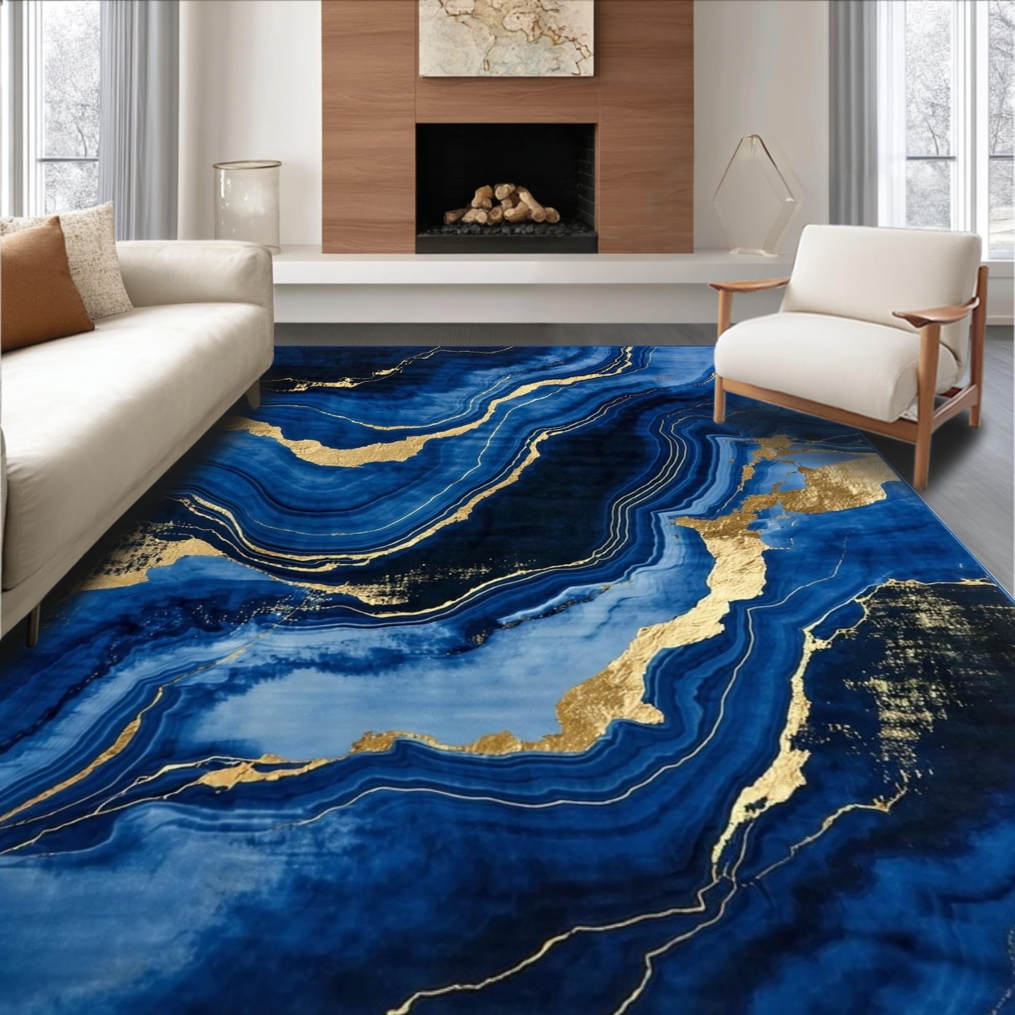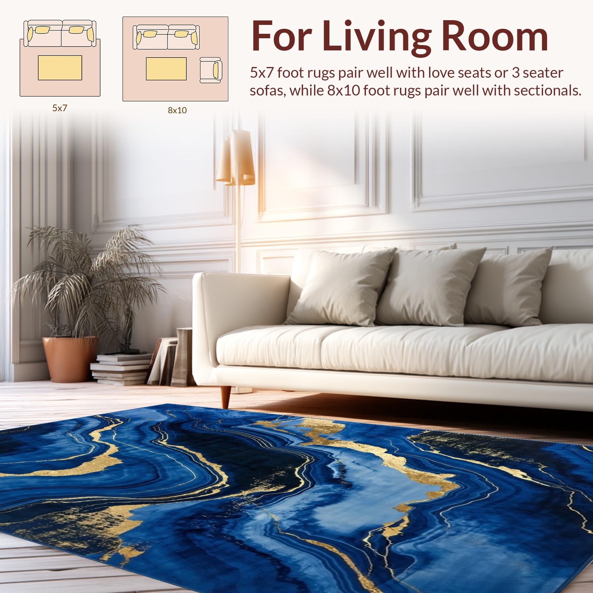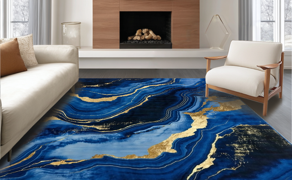 Ultra Soft Area Rug, Non Slip, Stain Resistant, Washable Area Rugs for Living Room, Bedroom, Elegant Blue Marble Aesthetic(Blue) Overview: