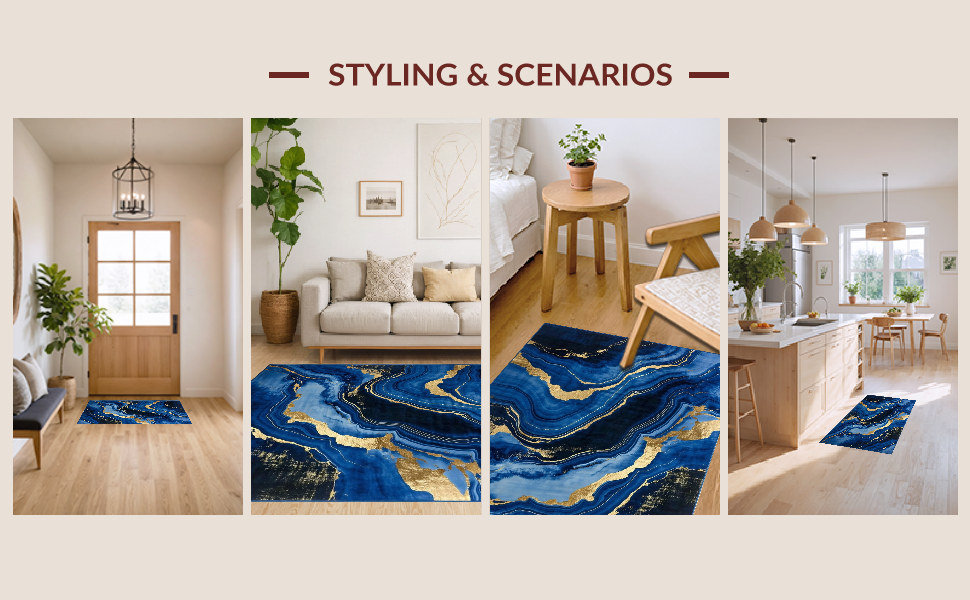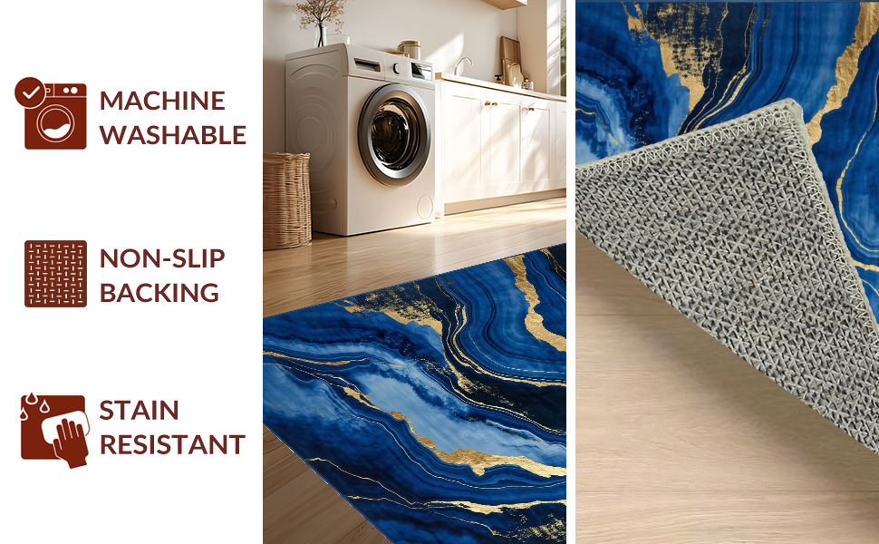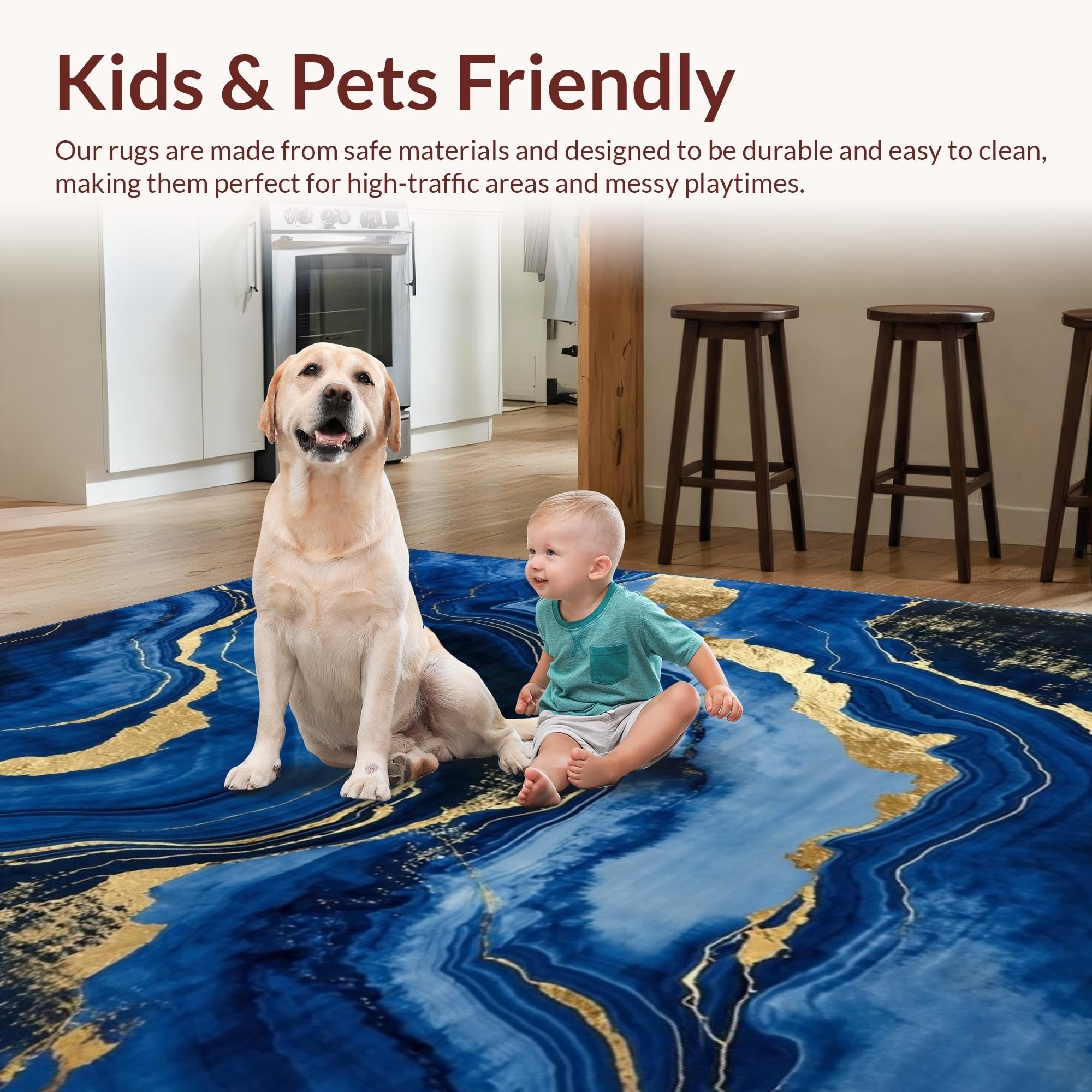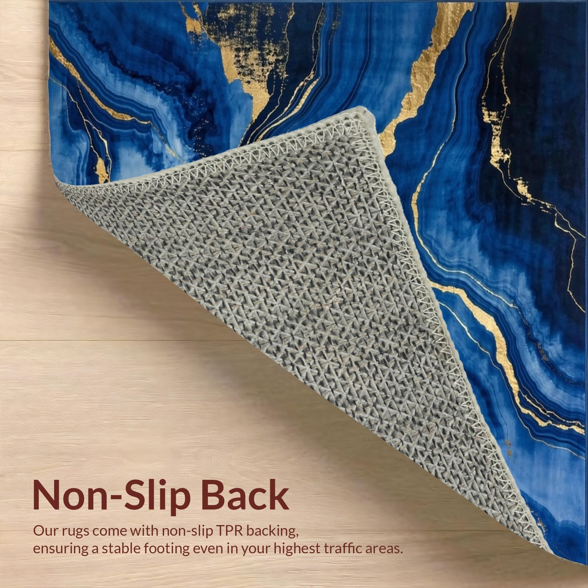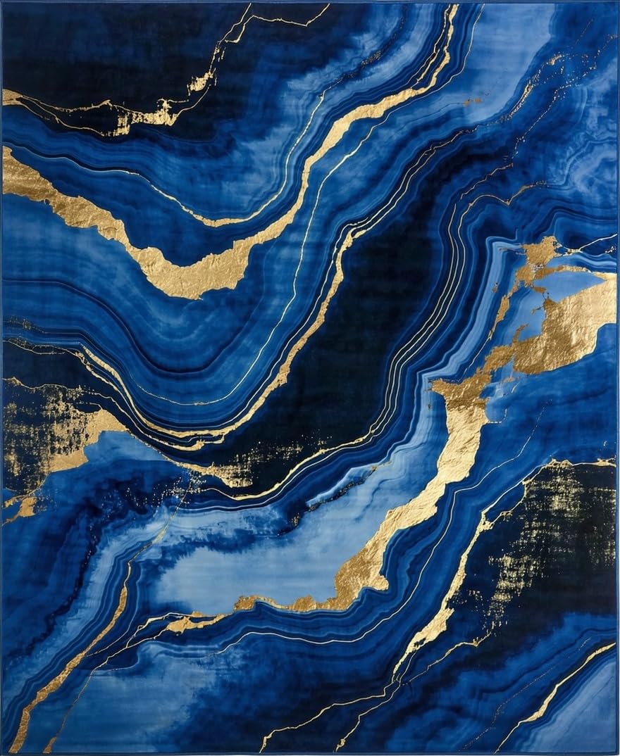 Ultra Soft Area Rug, Non Slip, Stain Resistant, Washable Area Rugs for Living Room, Bedroom, Elegant Blue Marble Aesthetic(Blue) Overview: