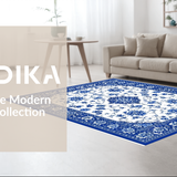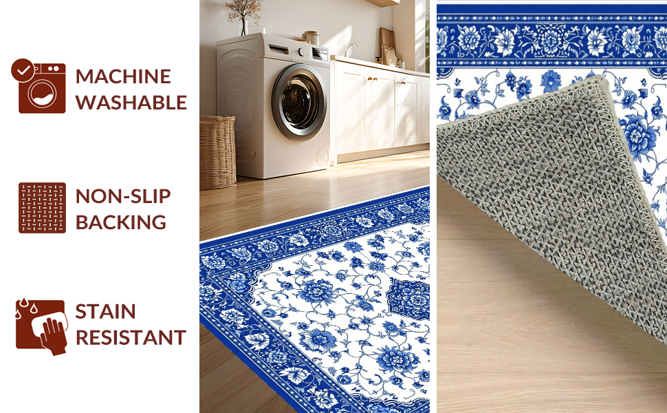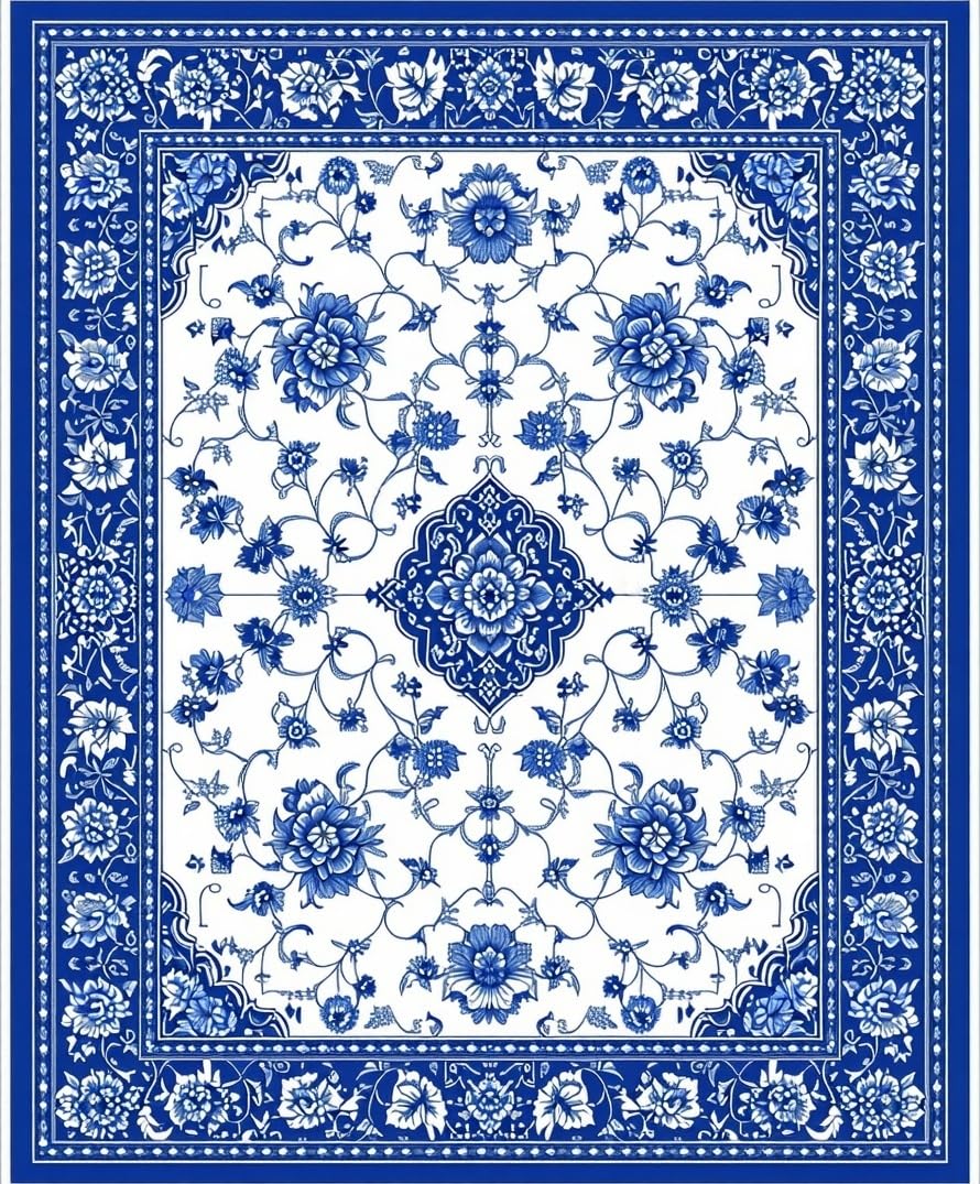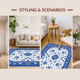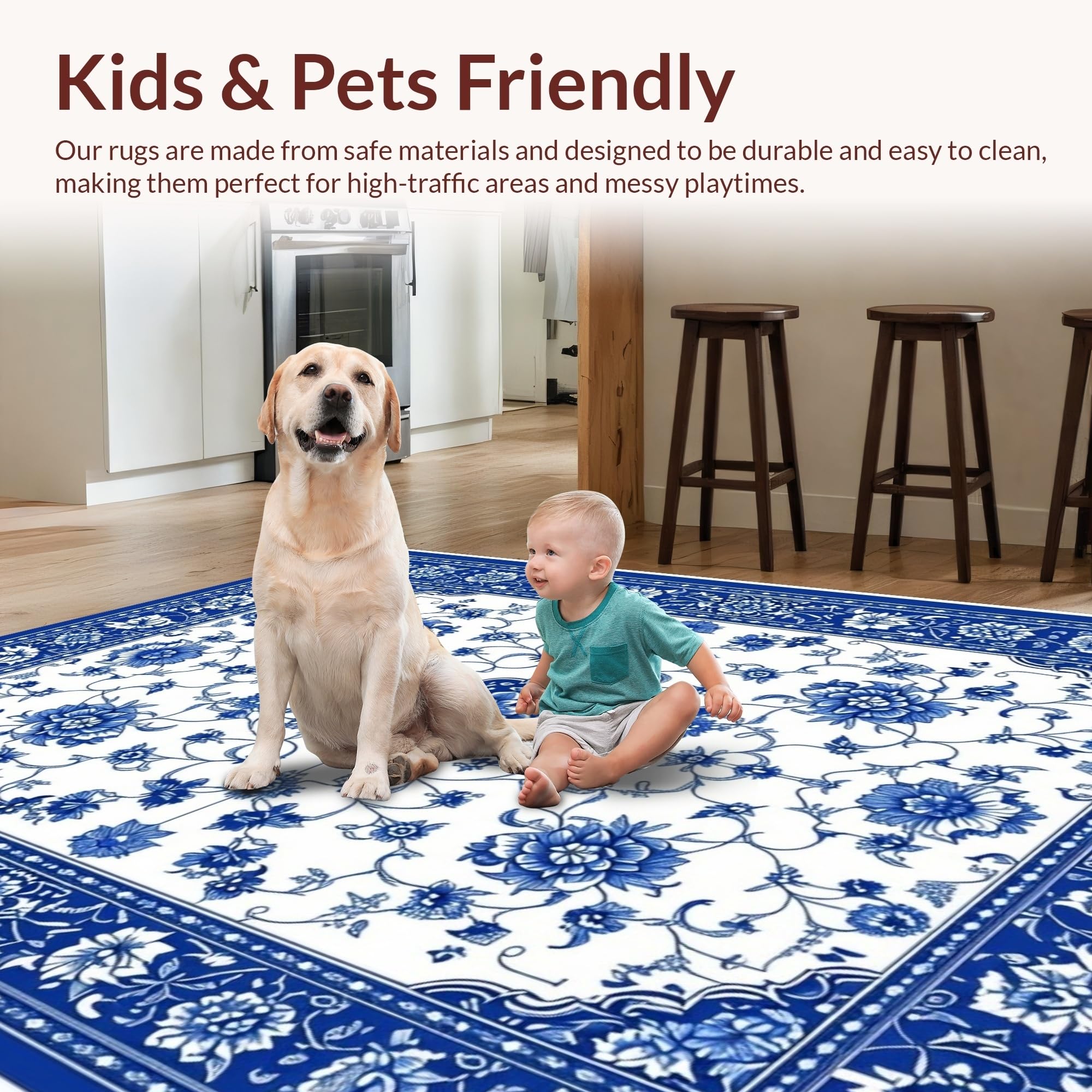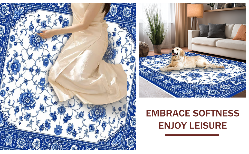 Ultra Soft Area Rug, Non Slip, Stain Resistant, Washable Area Rugs for Living Room, Bedroom, Elegant Blue Porcelain Floral Motif(Blue) Overview: