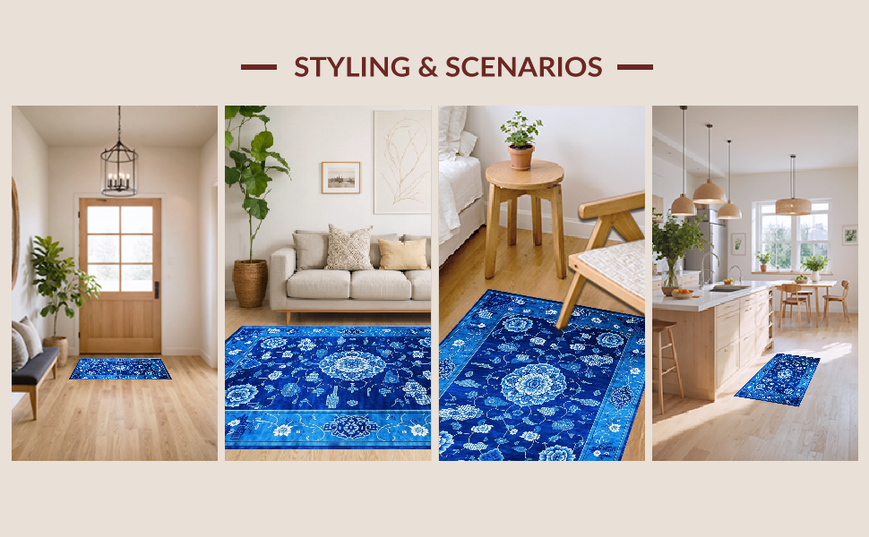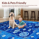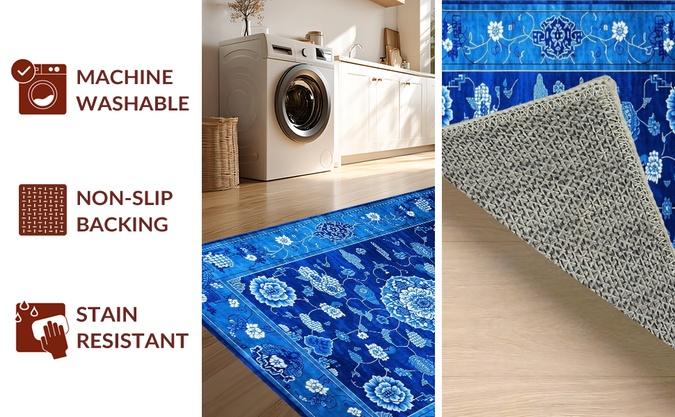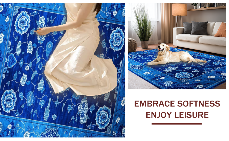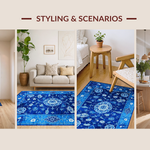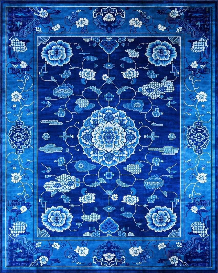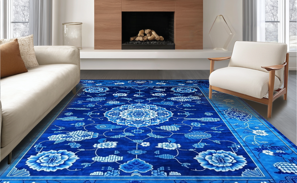 Ultra Soft Area Rug, Non Slip, Stain Resistant, Washable Area Rugs for Living Room, Bedroom, Elegant Blue Toned Chinoiserie Motif(Blue) Overview: