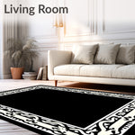 Ultra Soft Area Rug, Non Slip, Stain Resistant, Washable Area Rugs for Living Room, Bedroom, Elegant Border Collection With Sophisticated Edge(Black) Overview: