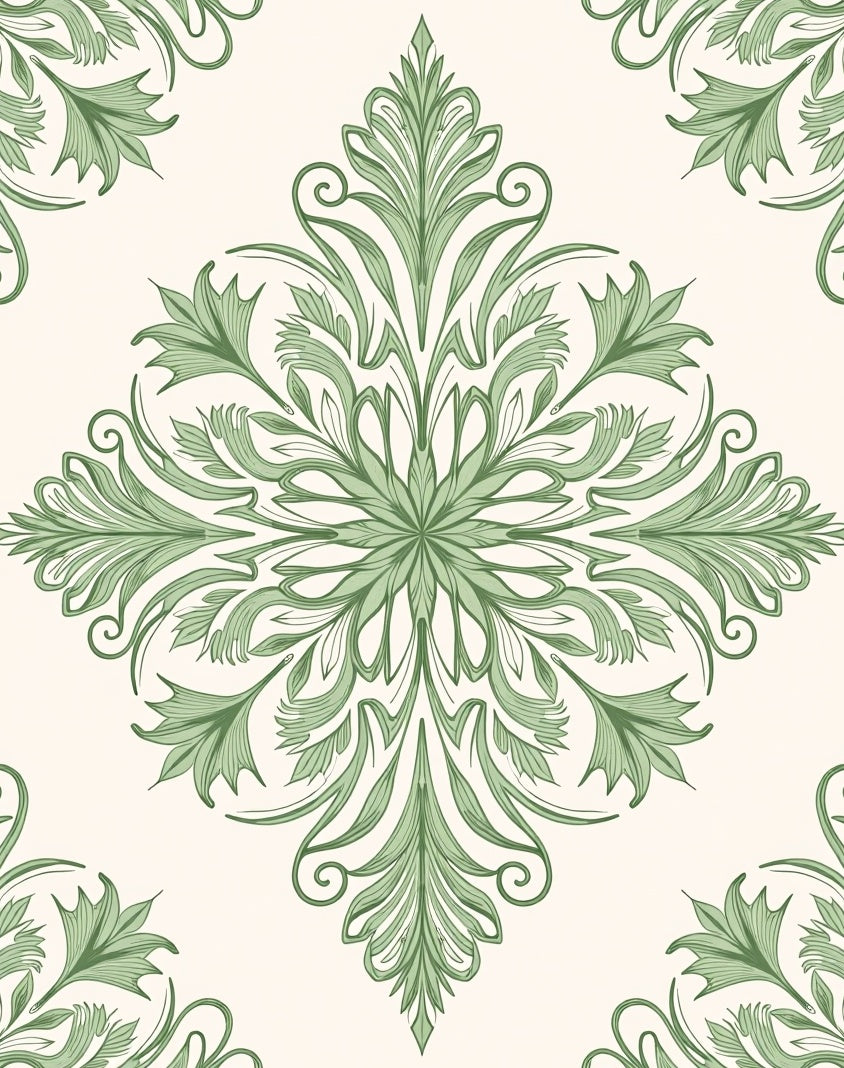 Elegant Botanical Damask Flourish Swirl Embroidery(Green)