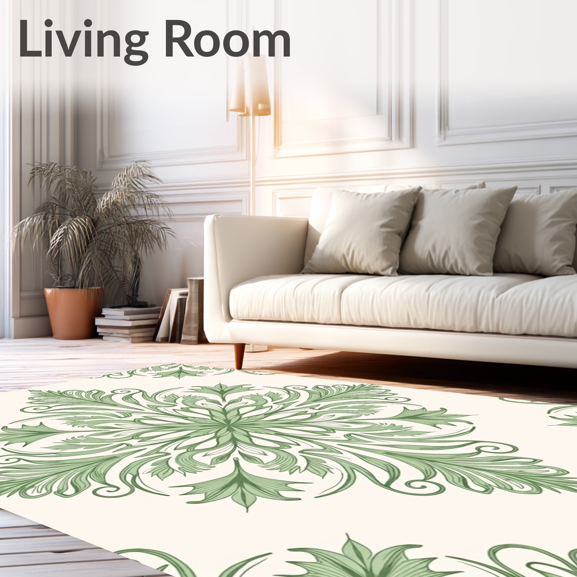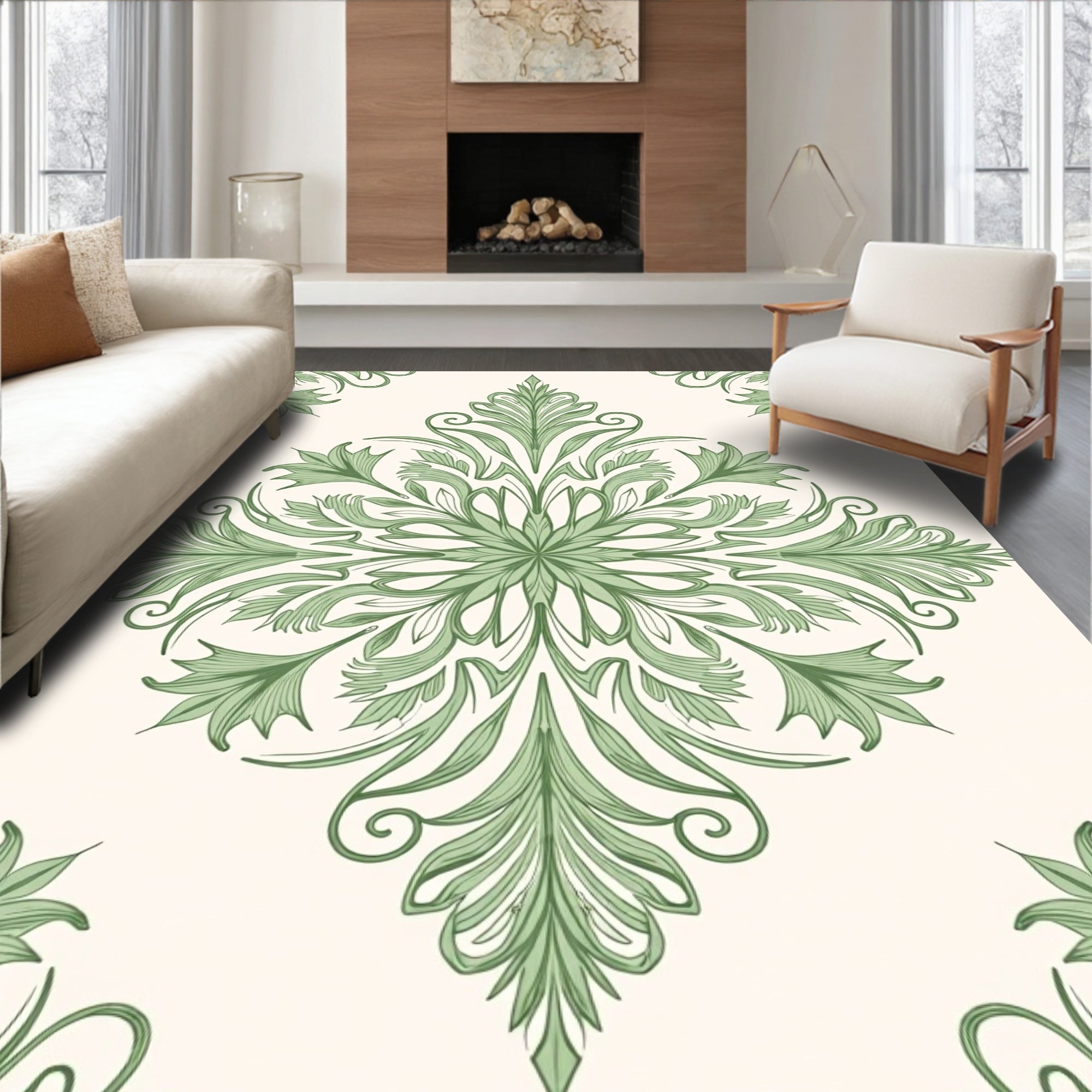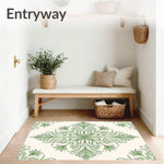 Ultra Soft Area Rug, Non Slip, Stain Resistant, Washable Area Rugs for Living Room, Bedroom, Elegant Botanical Damask Flourish Swirl Embroidery(Green) Overview: