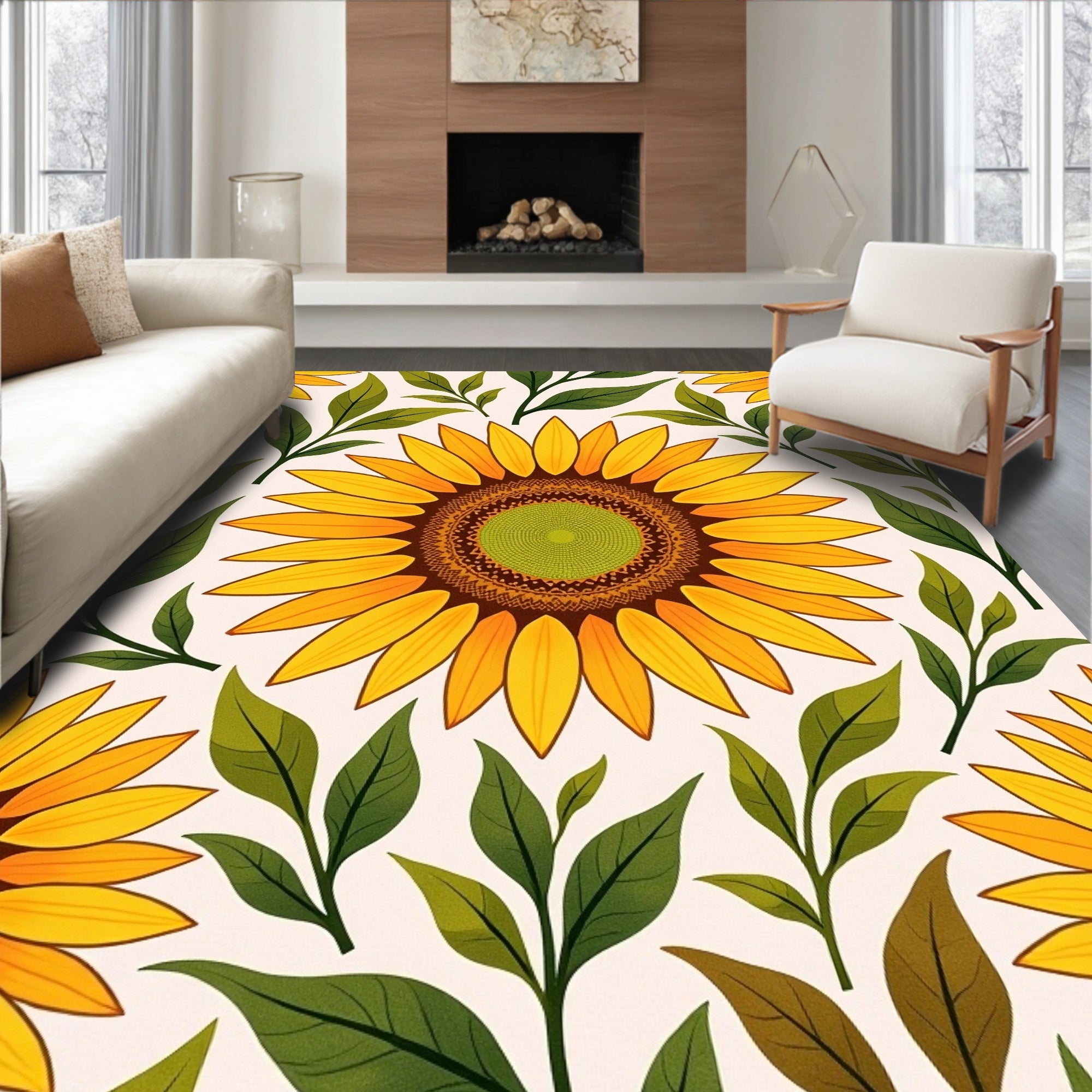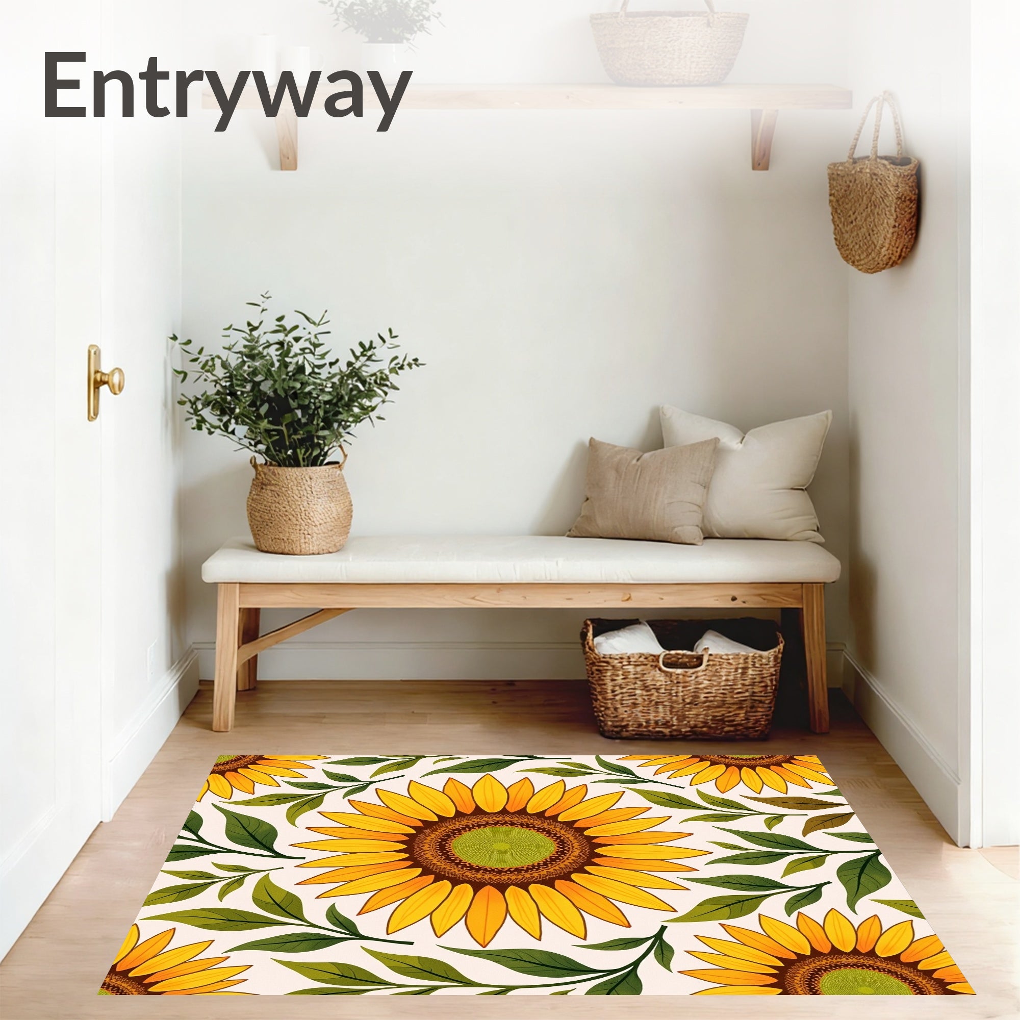 Ultra Soft Area Rug, Non Slip, Stain Resistant, Washable Area Rugs for Living Room, Bedroom, Elegant Botanical Garden Petal Arrangement(Yellow) Overview: