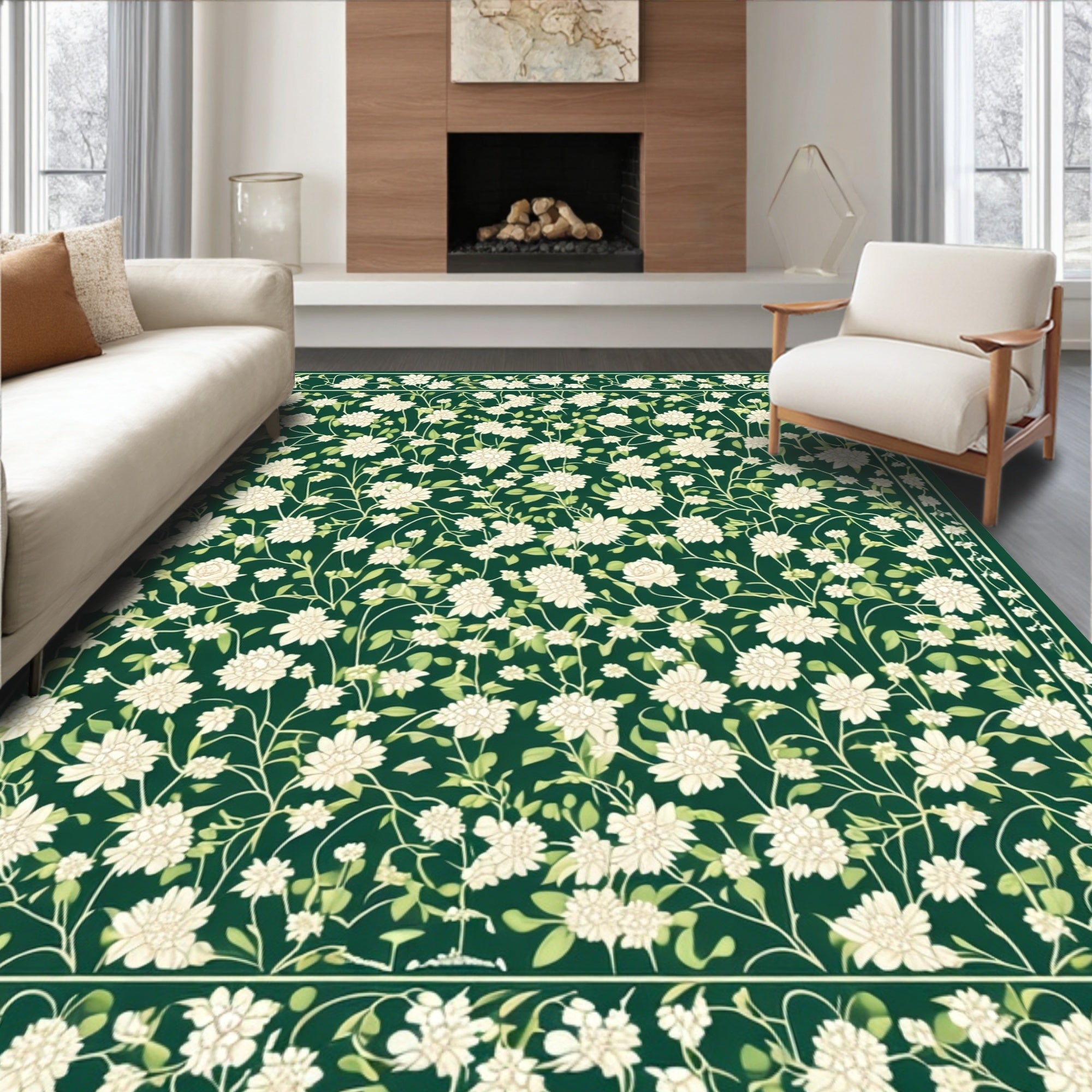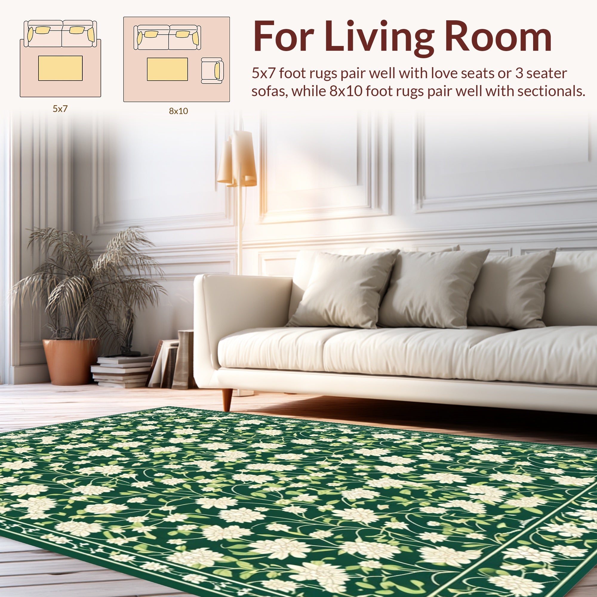 Flatwoven High Traffic Area Rug, Elegant Botanical Leaf Arrangement, Non Slip, Stain Resistant, Washable Area Rugs for Living Room, Bedroom (Green) Overview: