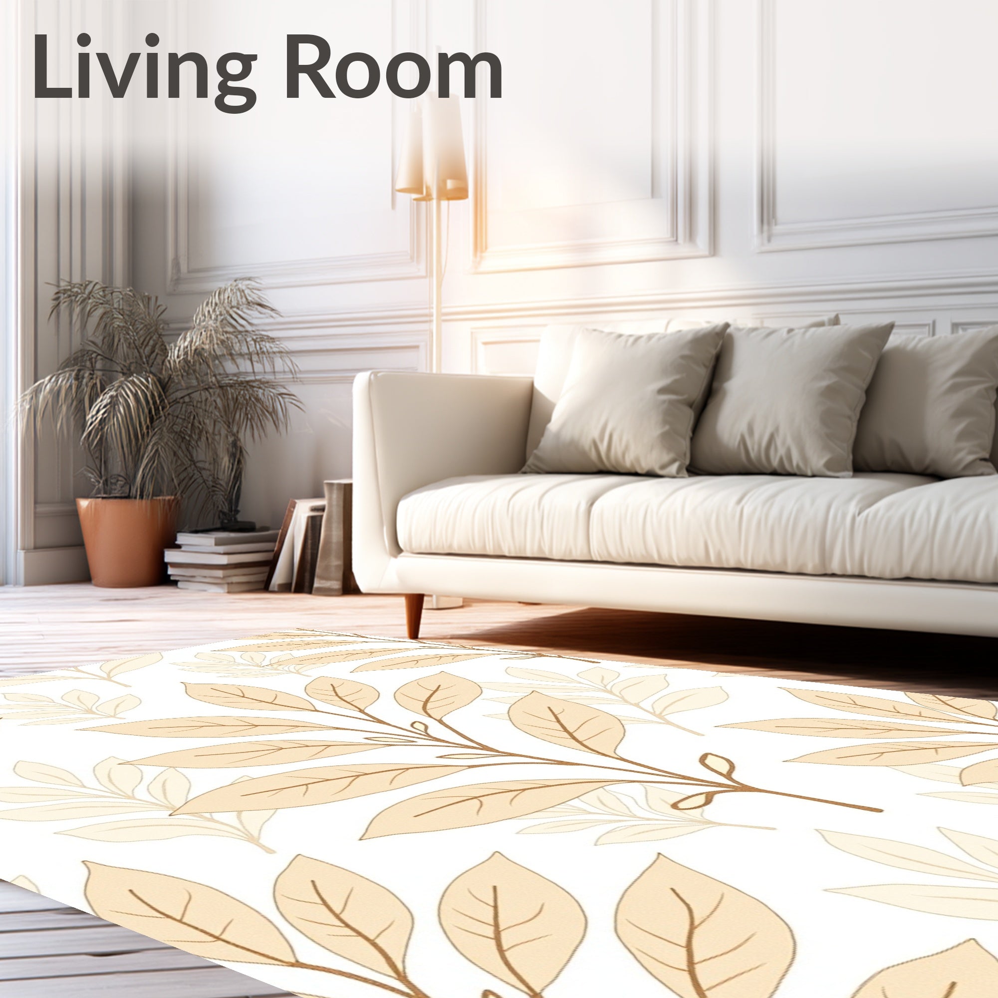 Ultra Soft Area Rug, Non Slip, Stain Resistant, Washable Area Rugs for Living Room, Bedroom, Elegant Botanical Leaf Symphony(Beige) Overview: