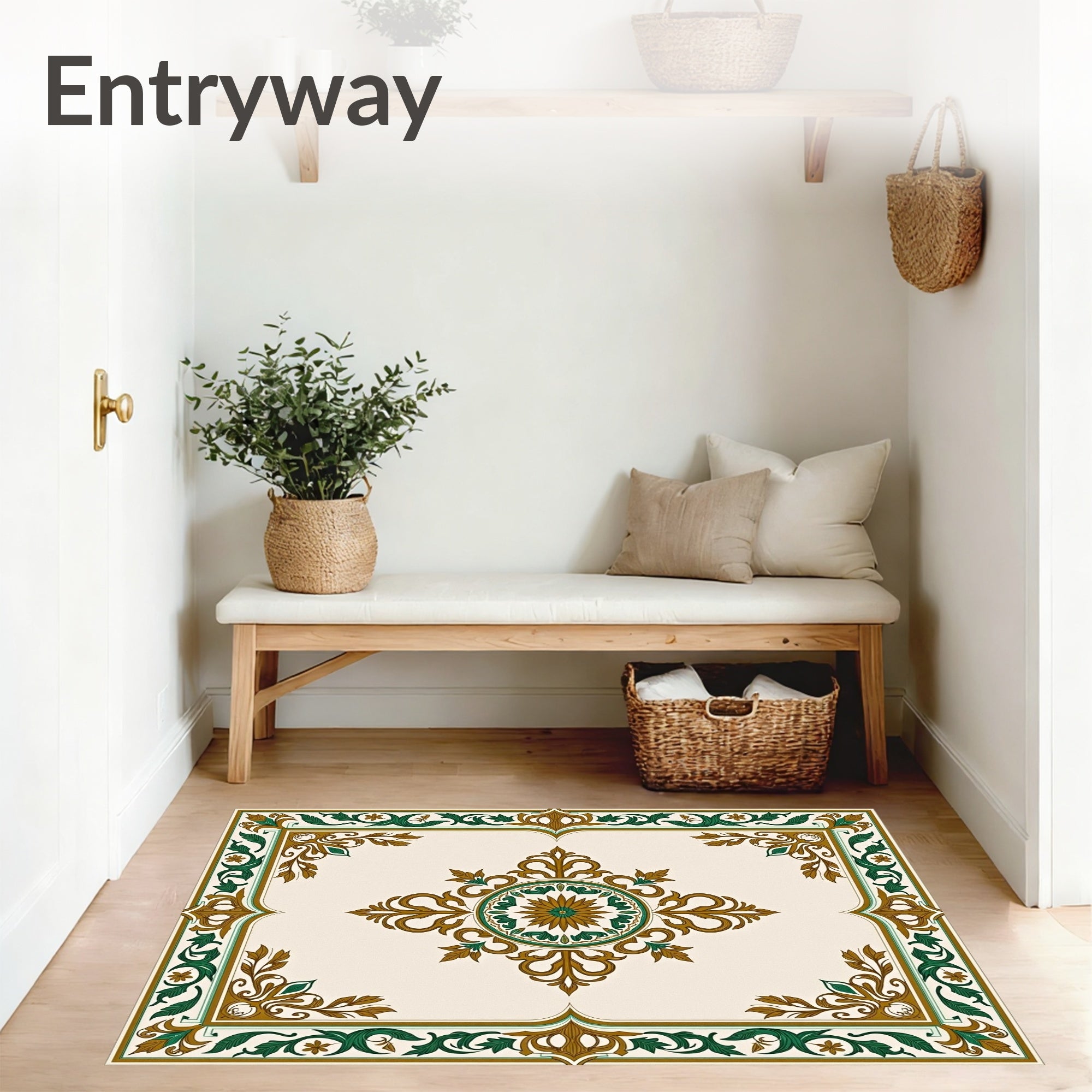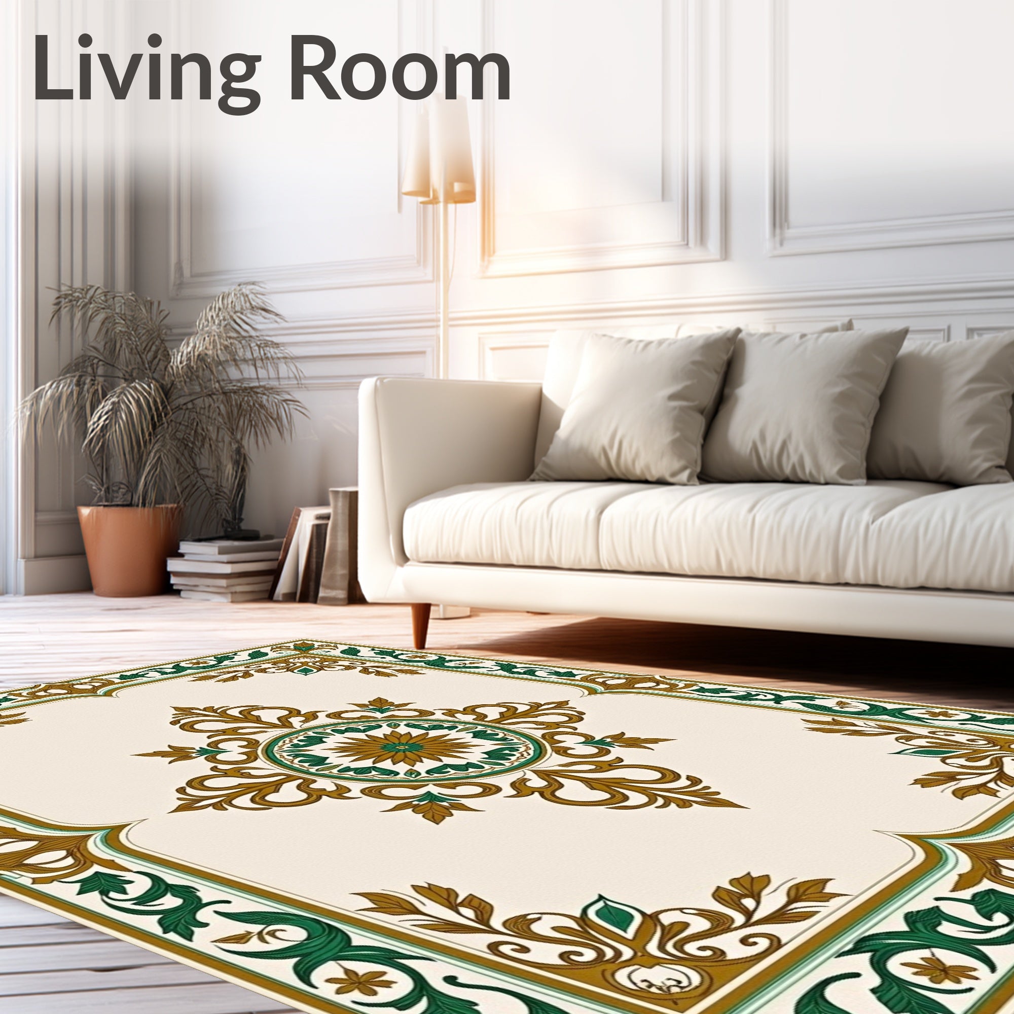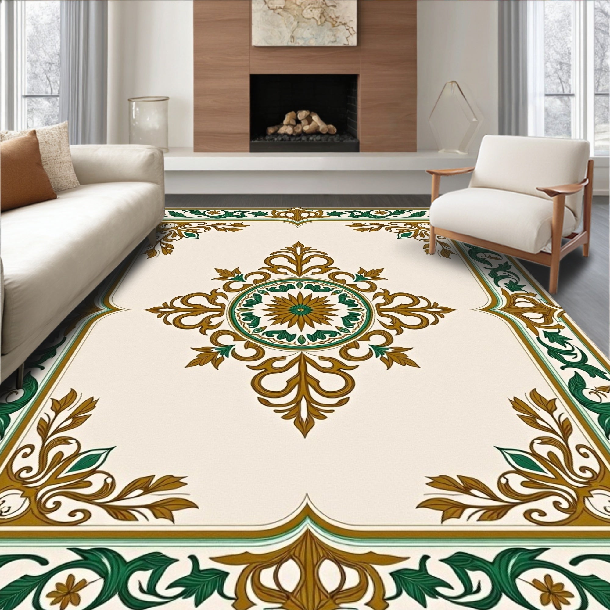 Ultra Soft Area Rug, Non Slip, Stain Resistant, Washable Area Rugs for Living Room, Bedroom, Elegant Botanical Vine Tapestry Medallion Classic Heritage(Gold) Overview: