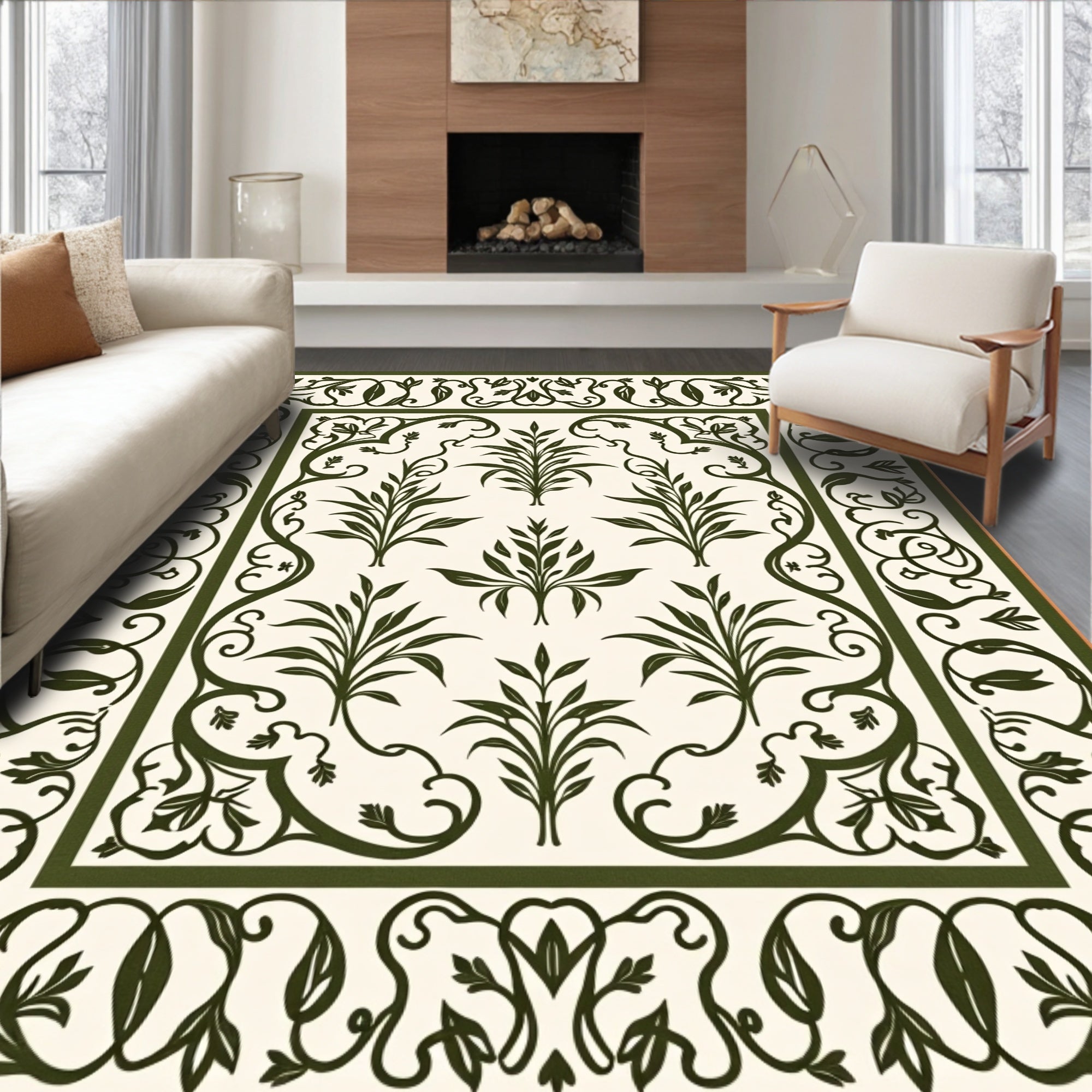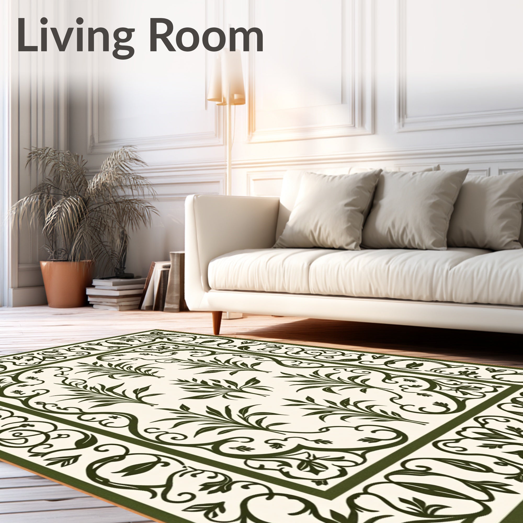 Ultra Soft Area Rug, Non Slip, Stain Resistant, Washable Area Rugs for Living Room, Bedroom, Elegant Botanical Vine Trellis Pathway Accent(Green) Overview: