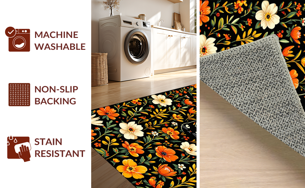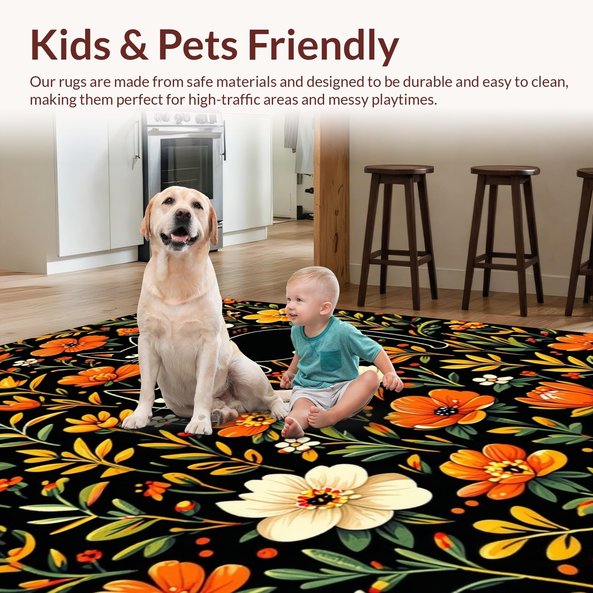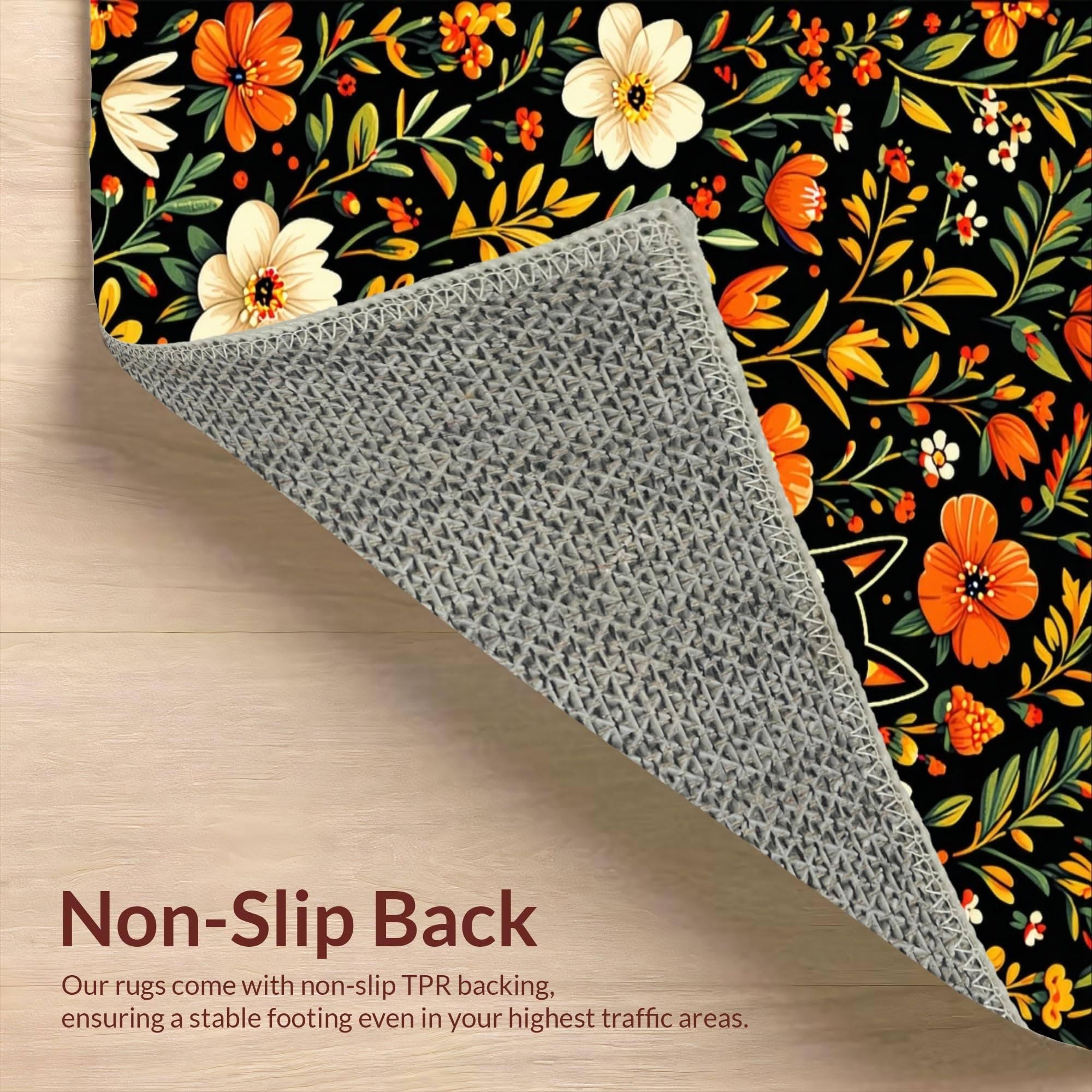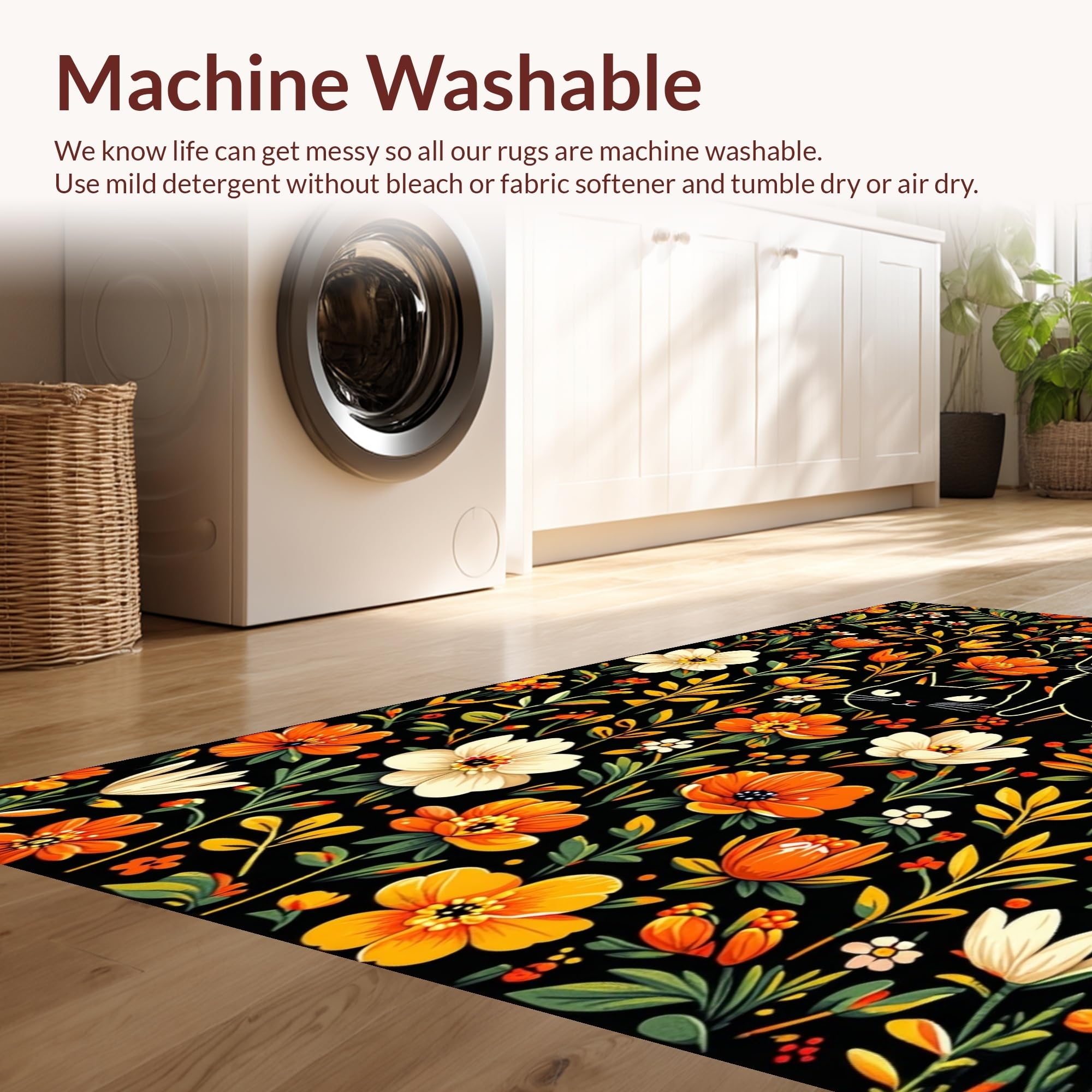 Ultra Soft Area Rug, Non Slip, Stain Resistant, Washable Area Rugs for Living Room, Bedroom, Elegant Cat and Floral Fusion(Black) Overview: