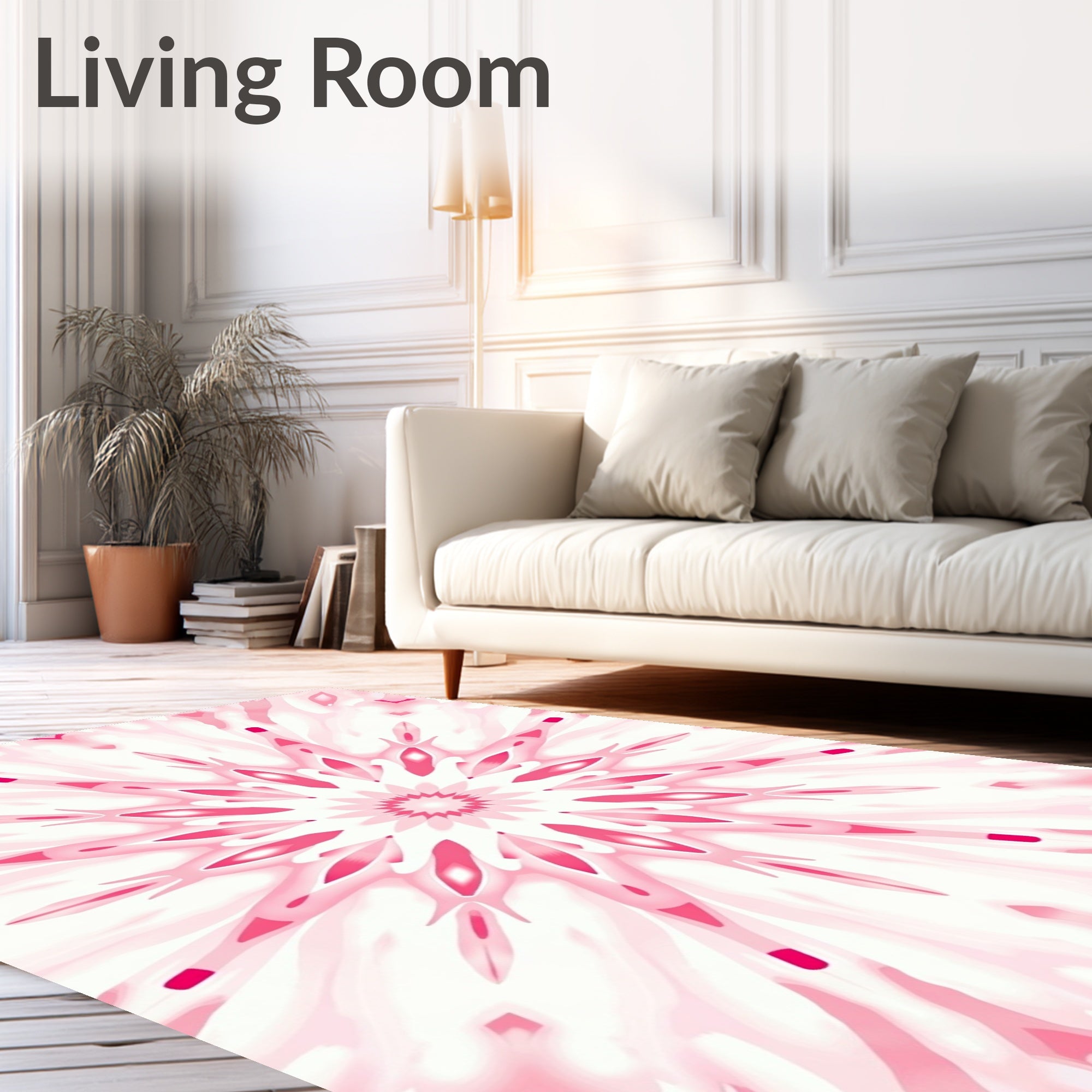 Ultra Soft Area Rug, Non Slip, Stain Resistant, Washable Area Rugs for Living Room, Bedroom, Elegant Celestial Starburst Radiant Ethereal Mist(Pink) Overview: