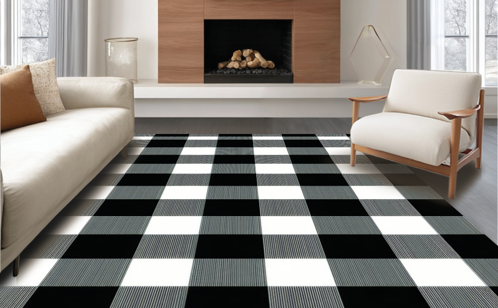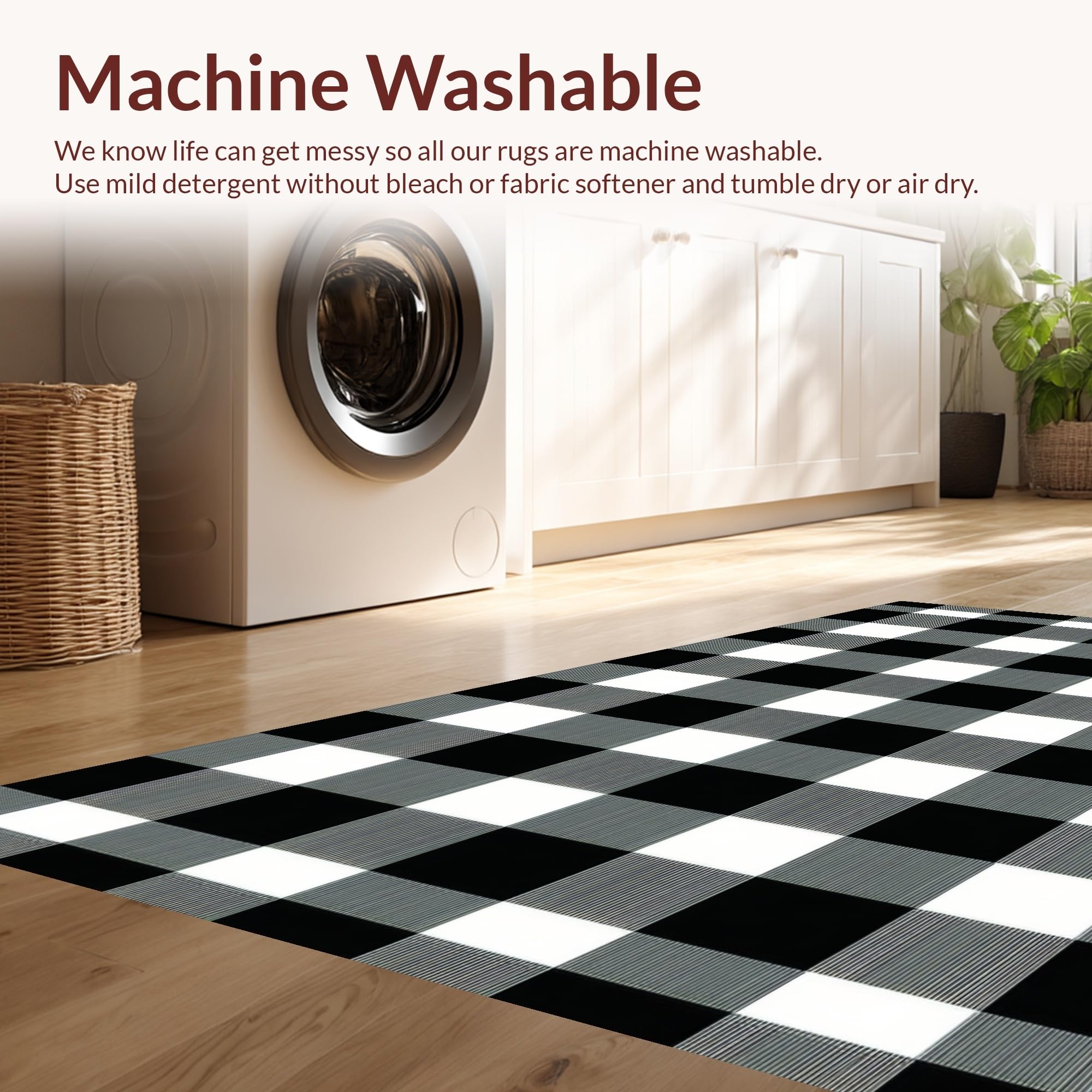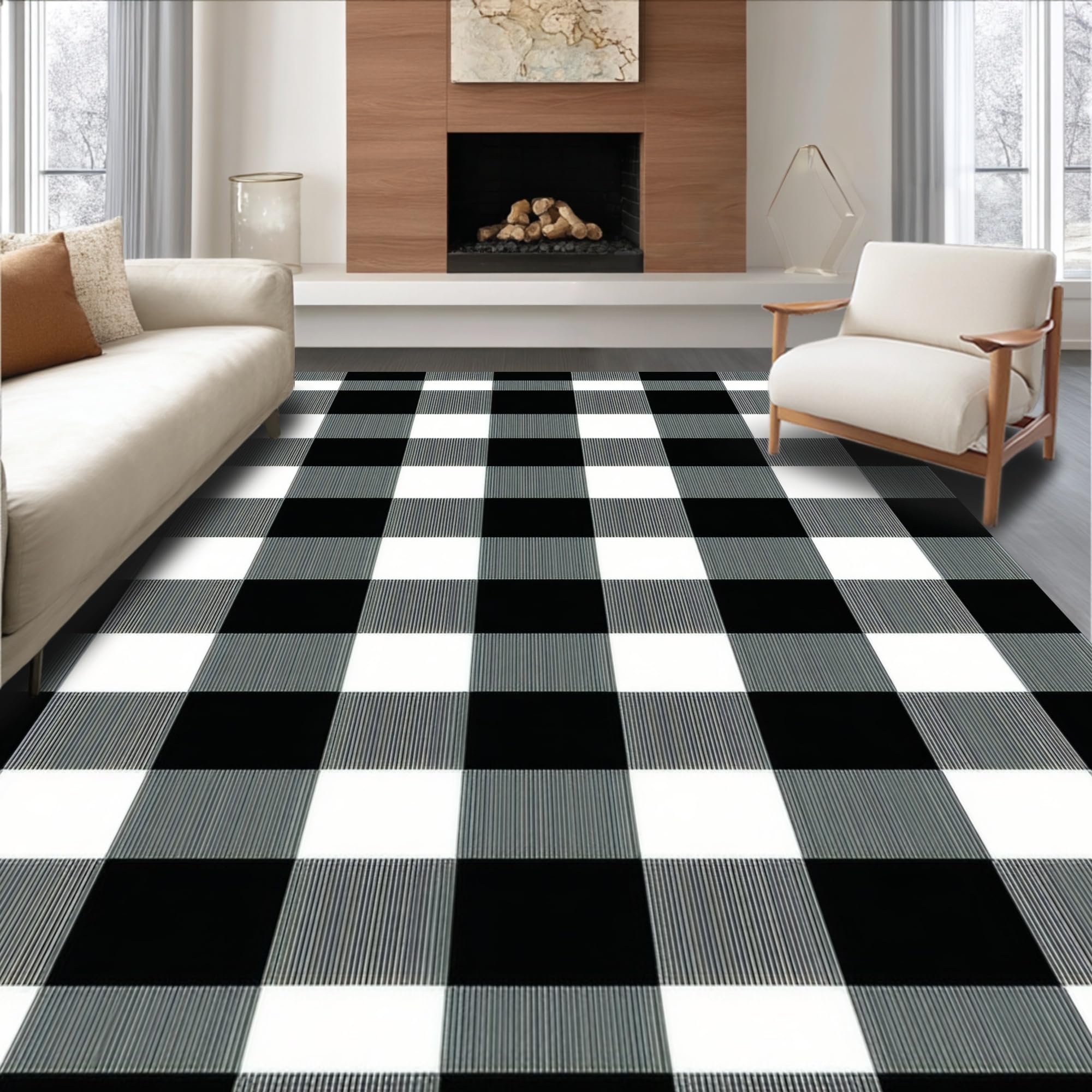 Ultra Soft Area Rug, Non Slip, Stain Resistant, Washable Area Rugs for Living Room, Bedroom, Elegant Checkered Textile Fusion(Black) Overview: