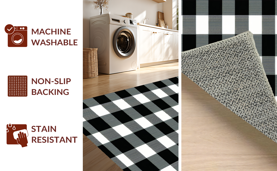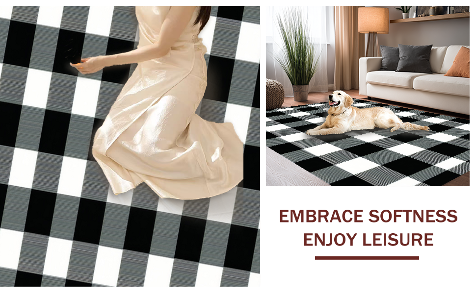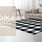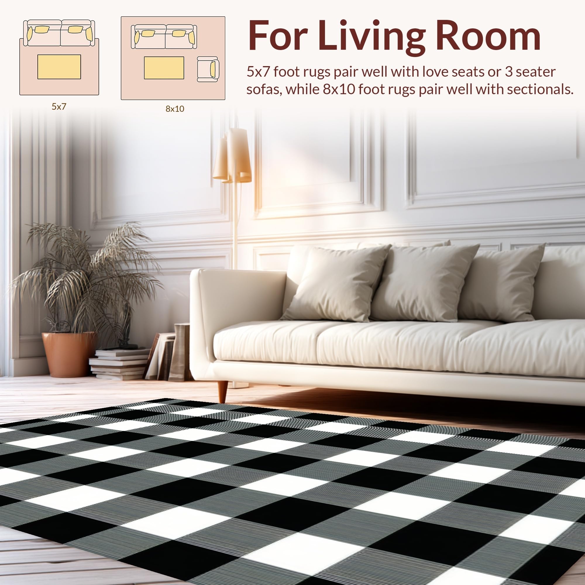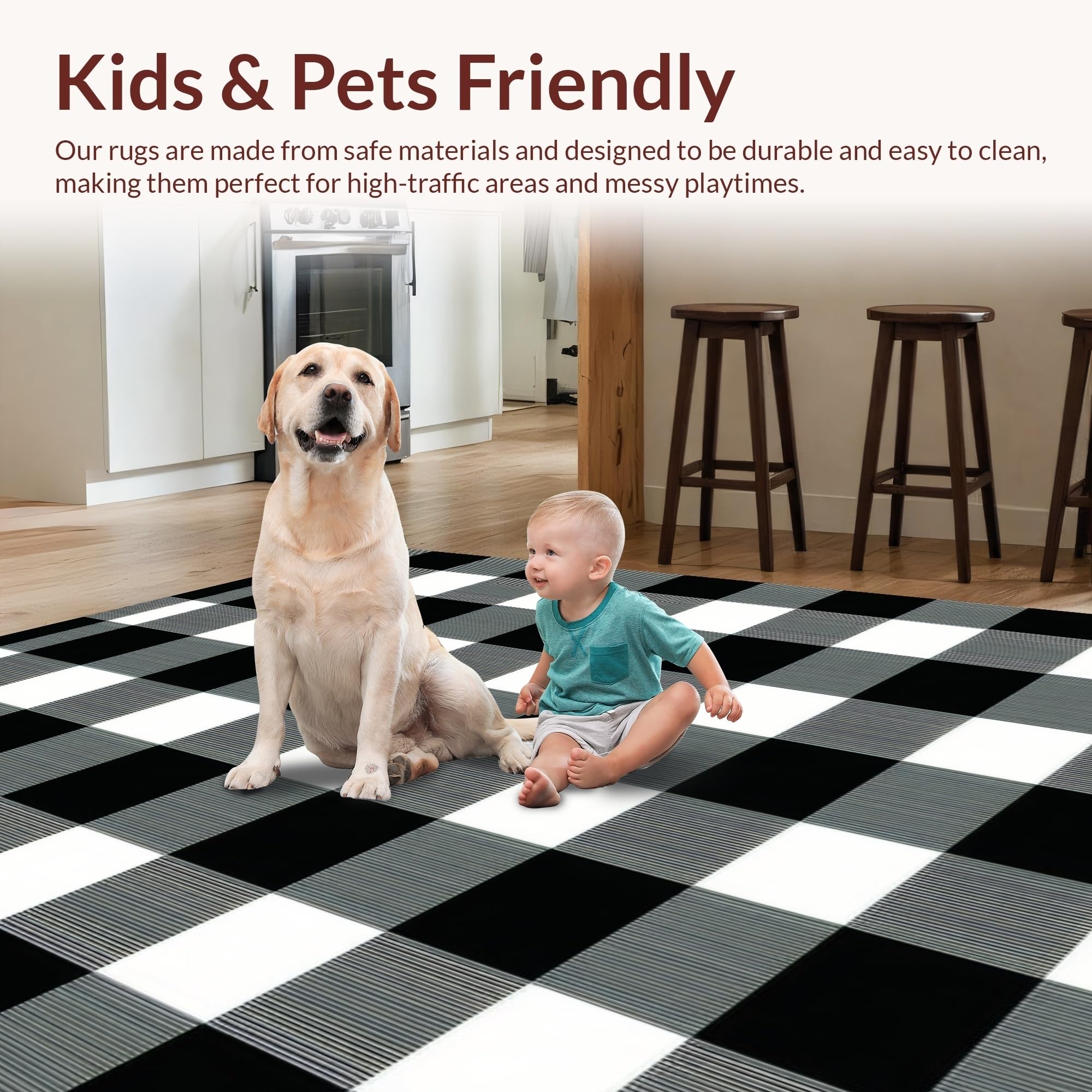 Ultra Soft Area Rug, Non Slip, Stain Resistant, Washable Area Rugs for Living Room, Bedroom, Elegant Checkered Textile Fusion(Black) Overview: