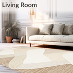 Ultra Soft Area Rug, Non Slip, Stain Resistant, Washable Area Rugs for Living Room, Bedroom, Elegant Circular Area With Subtle Chevron Waves And Neutral Beige Hues(Beige) Overview: