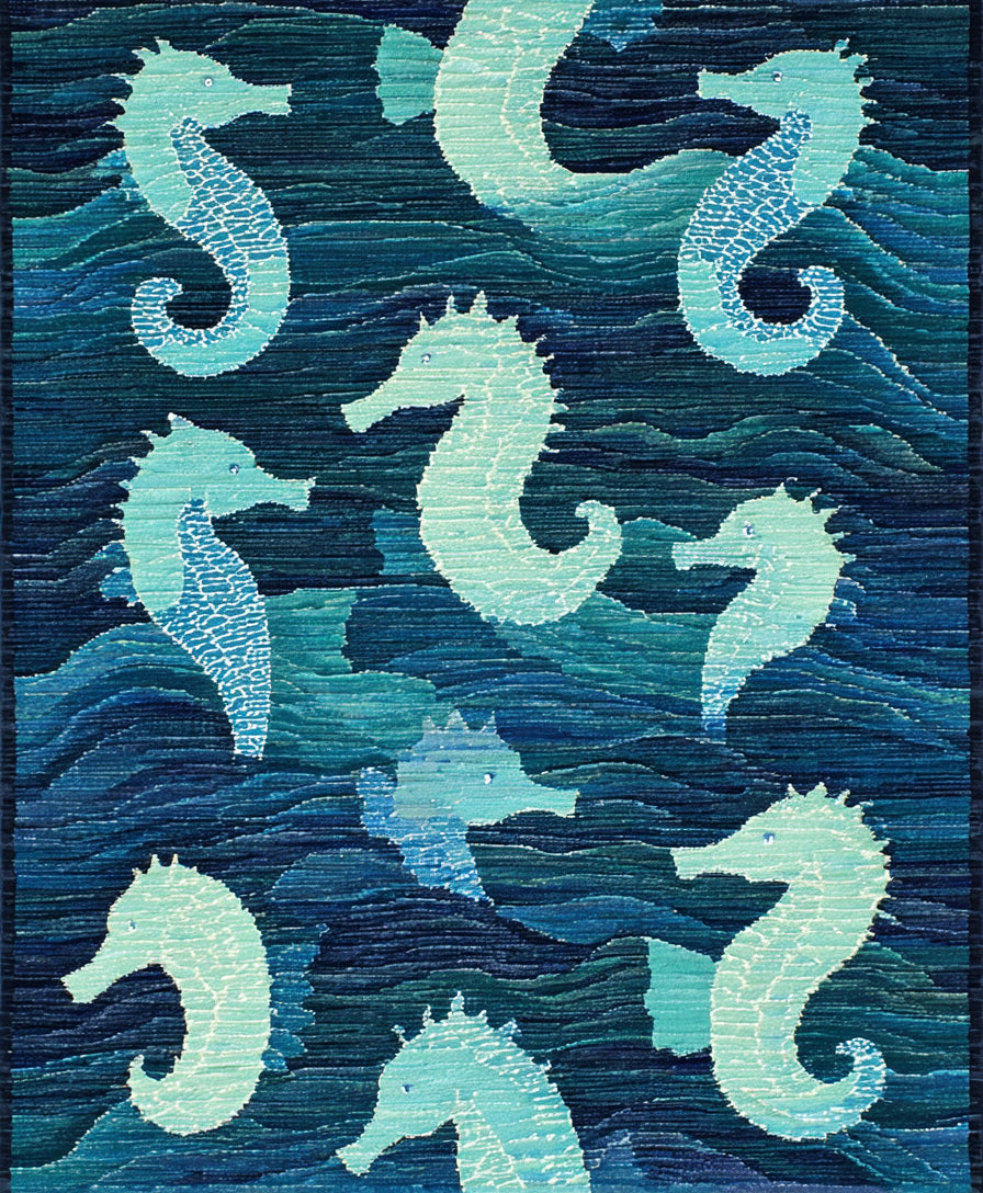 Flatwoven High Traffic Area Rug, Elegant Seahorse with Gradient and Symmetrical Wave, Non Slip, Stain Resistant, Washable Area Rugs for Living Room, Bedroom (Blue) Overview: