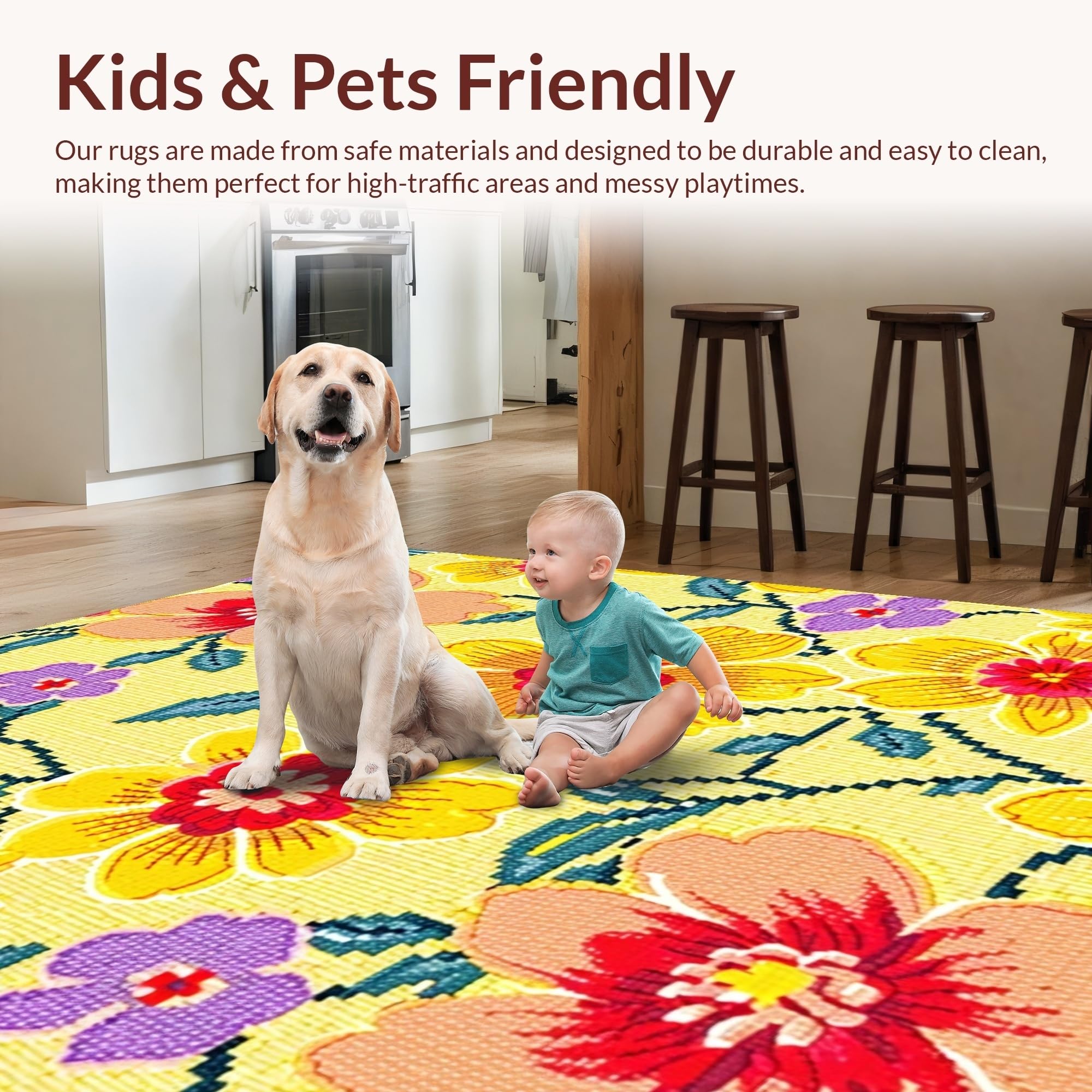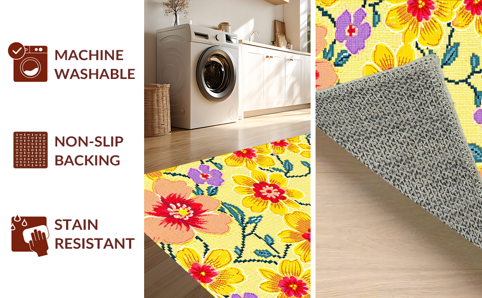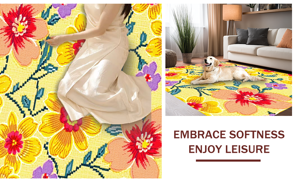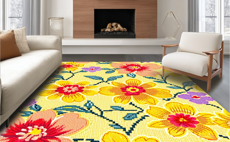Ultra Soft Area Rug, Non Slip, Stain Resistant, Washable Area Rugs for Living Room, Bedroom, Elegant Colorful Nature Inspired Welcome(Yellow) Overview: