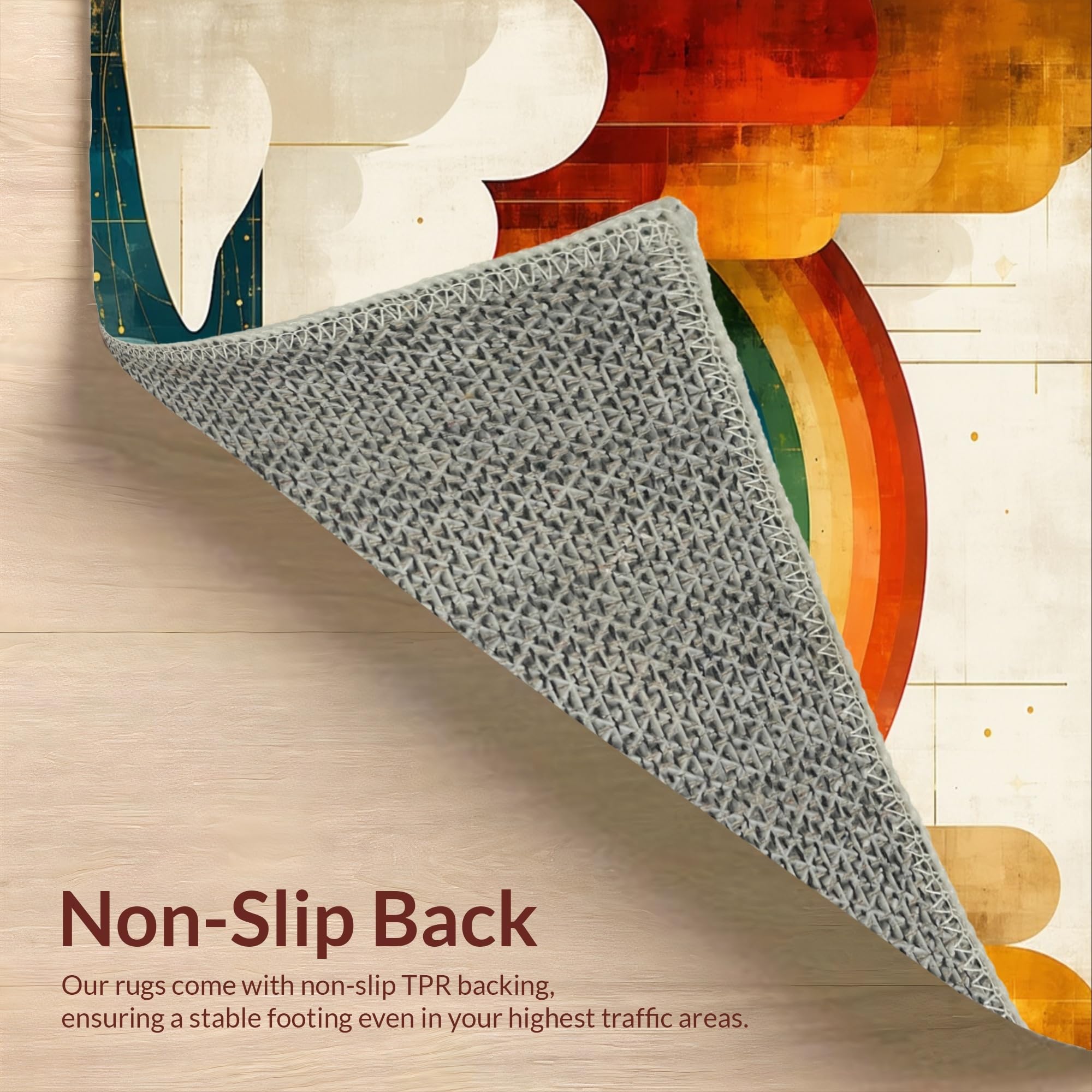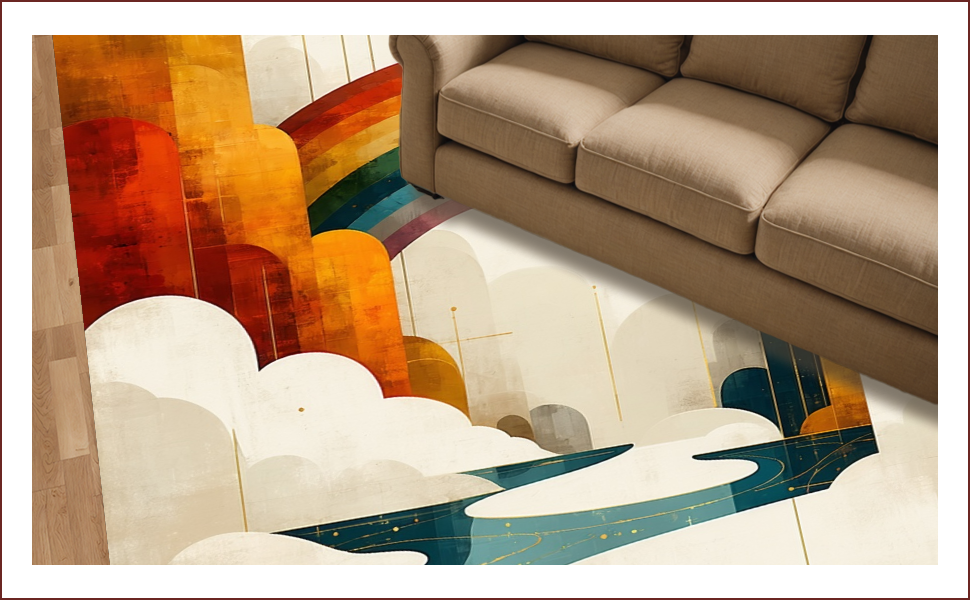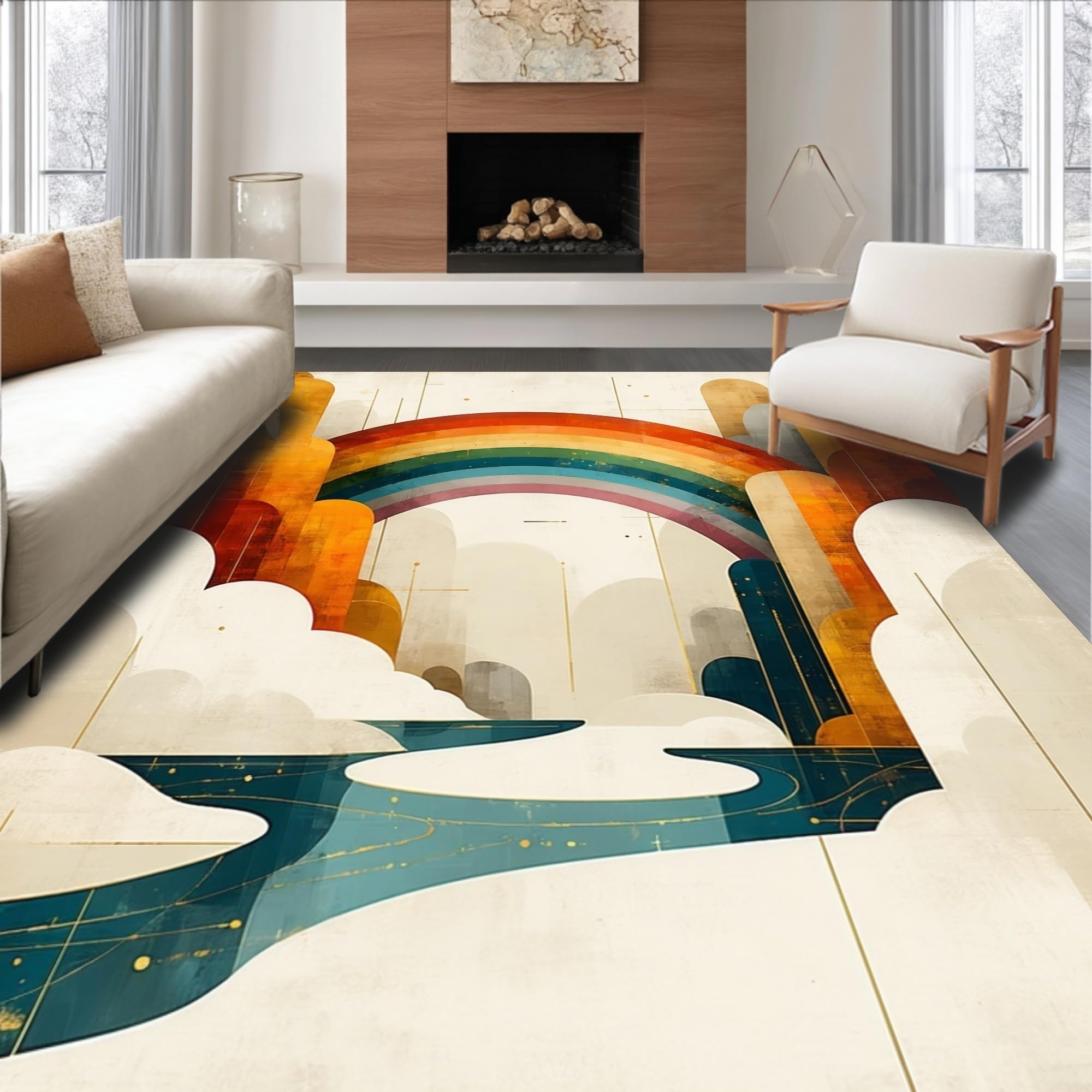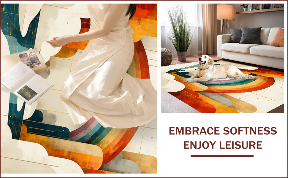 Ultra Soft Area Rug, Non Slip, Stain Resistant, Washable Area Rugs for Living Room, Bedroom, Elegant Contemporary Rainbow Design(Orange) Overview: