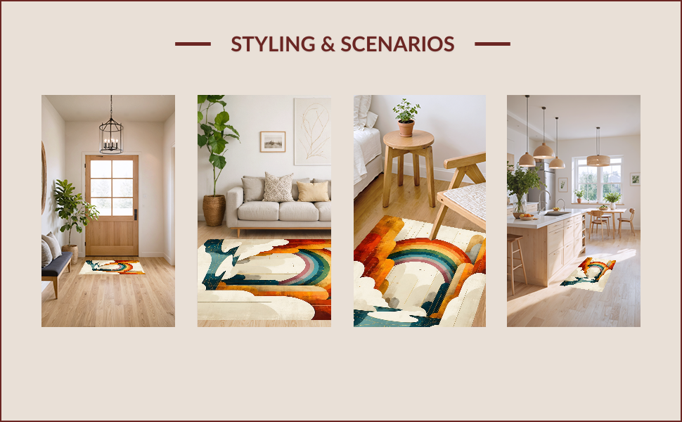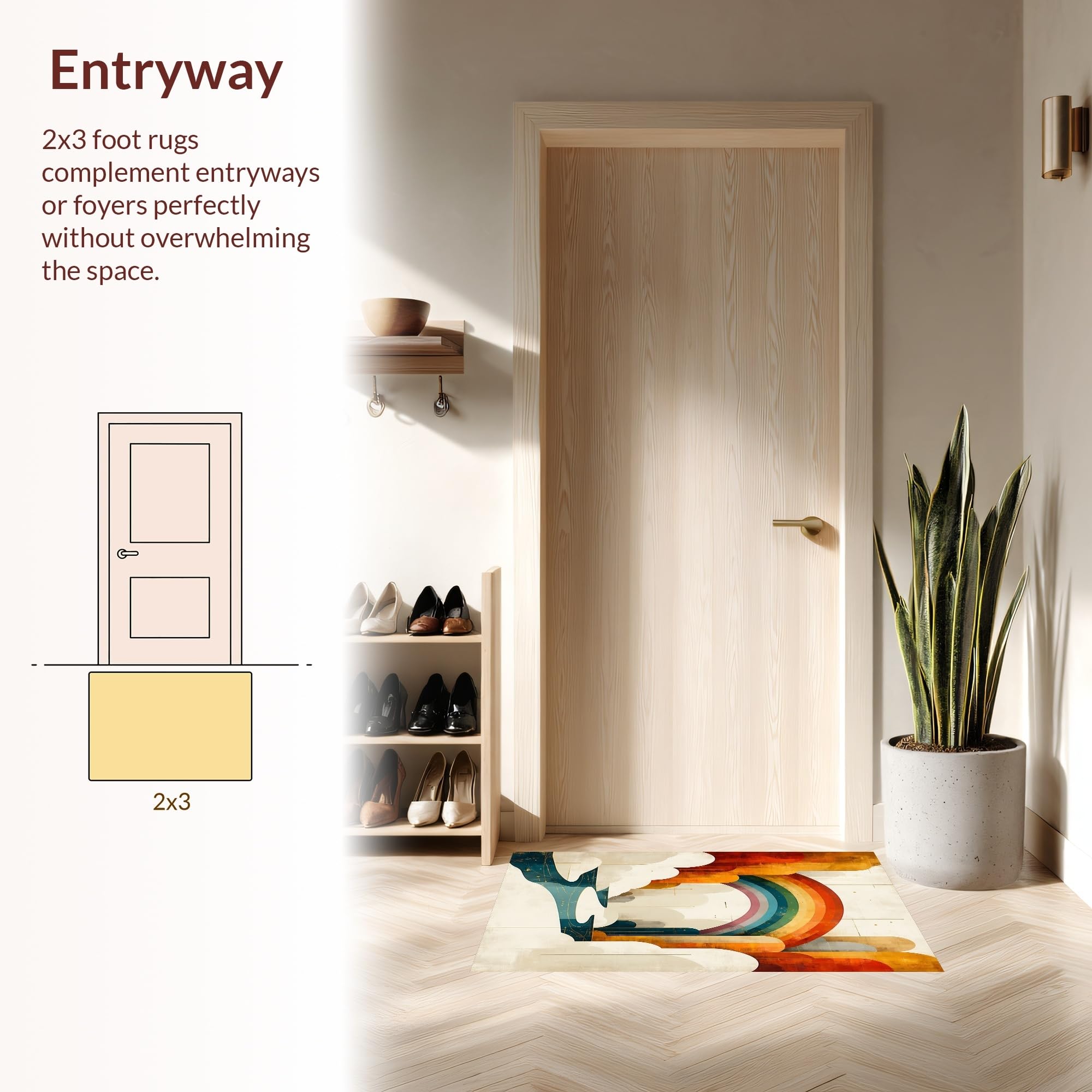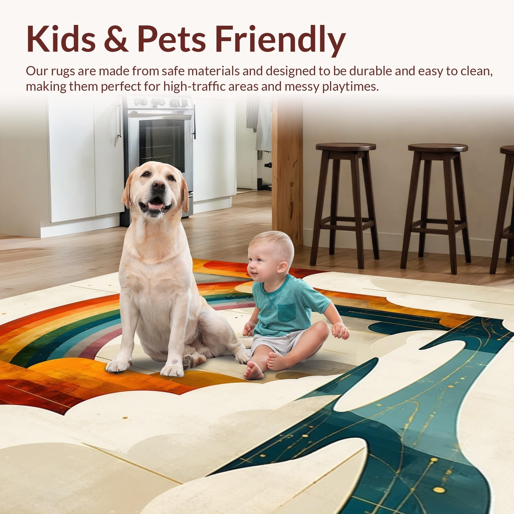 Ultra Soft Area Rug, Non Slip, Stain Resistant, Washable Area Rugs for Living Room, Bedroom, Elegant Contemporary Rainbow Design(Orange) Overview: