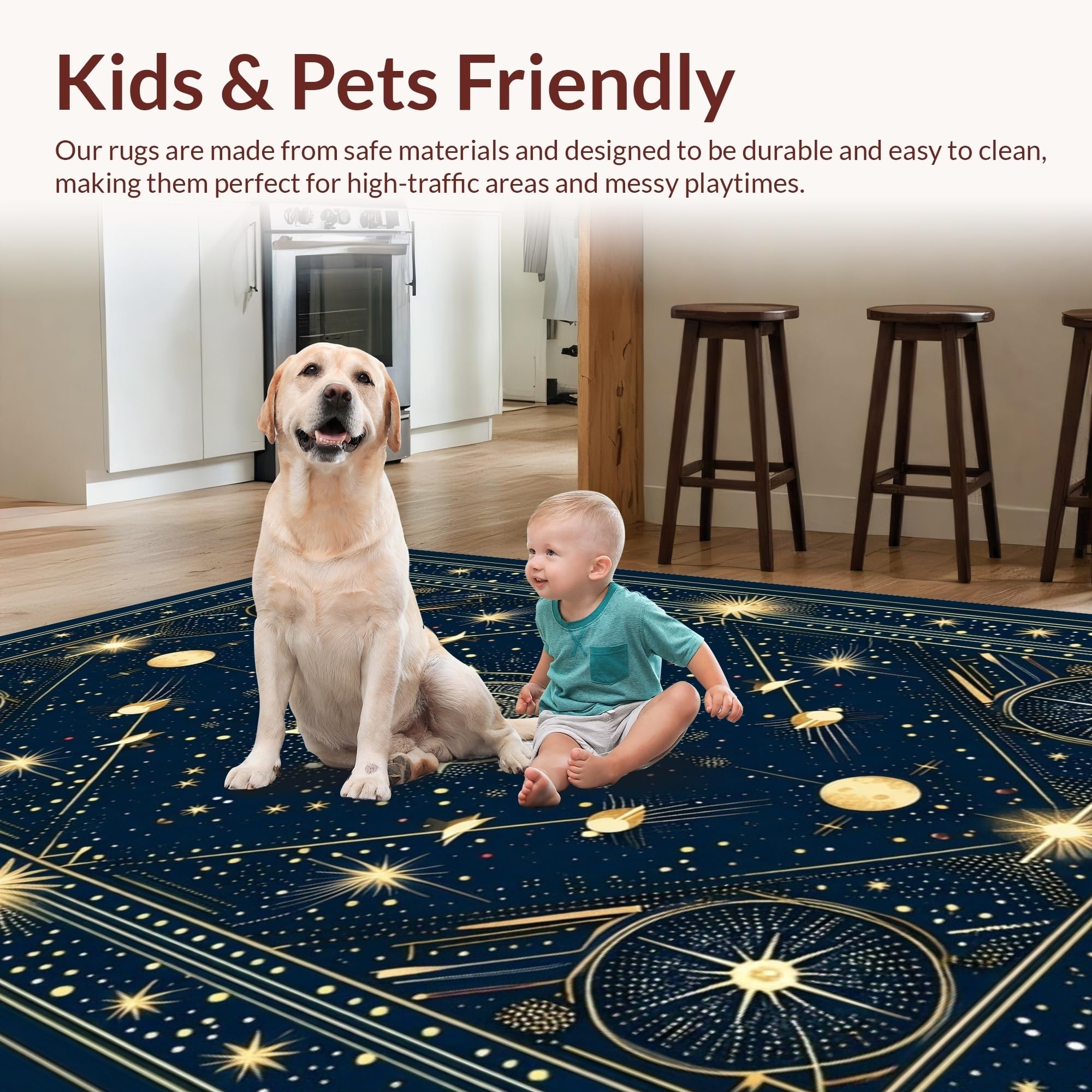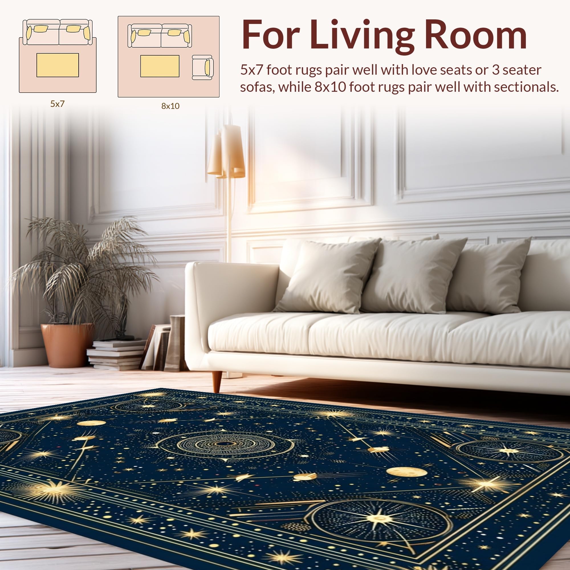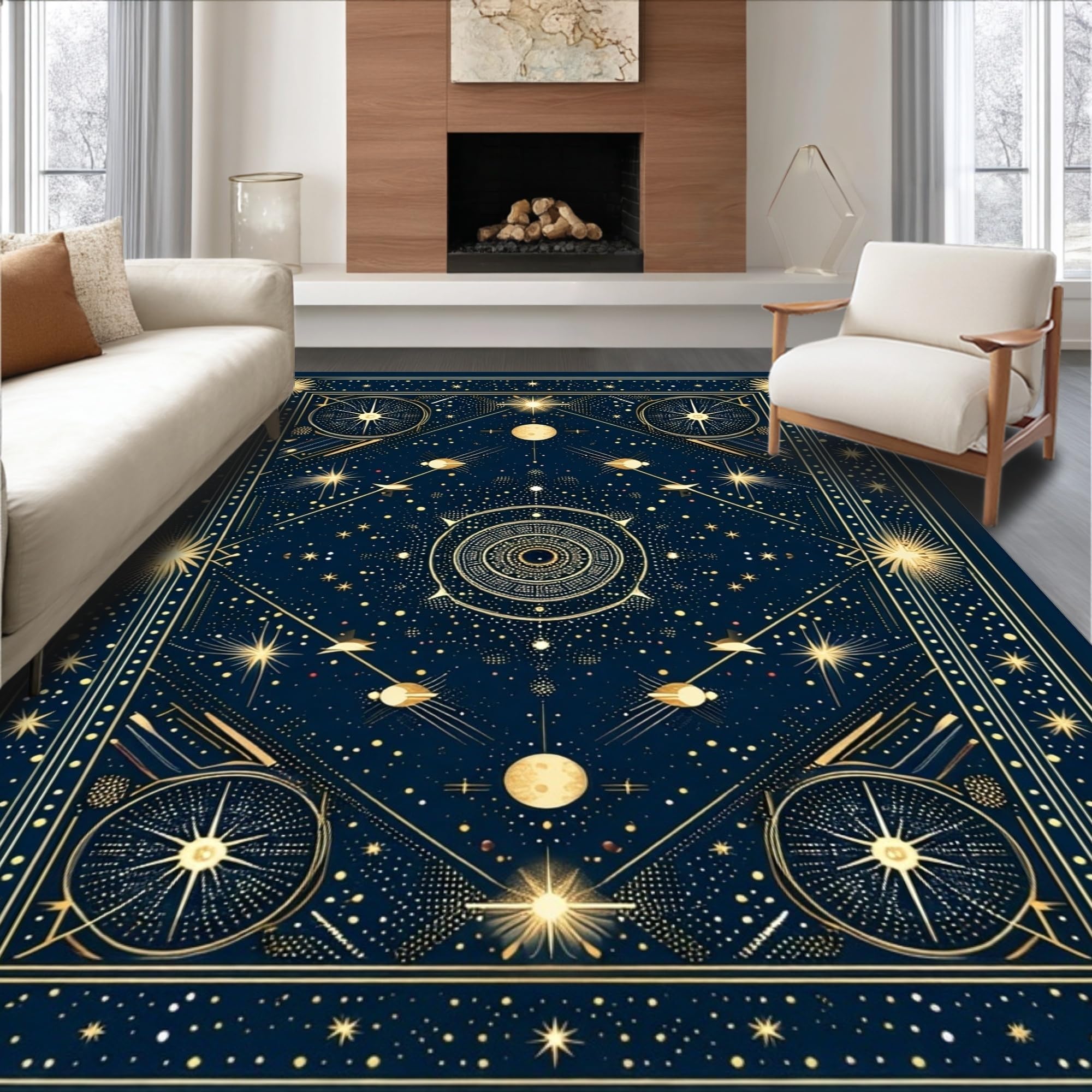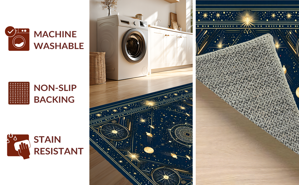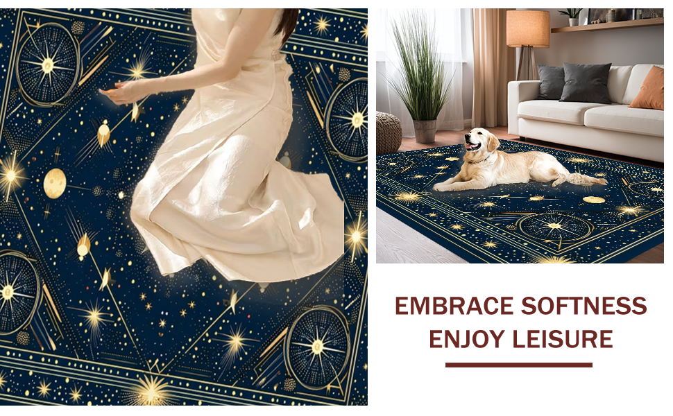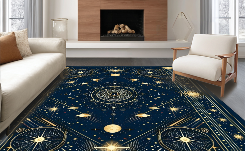 Ultra Soft Area Rug, Non Slip, Stain Resistant, Washable Area Rugs for Living Room, Bedroom, Elegant Crescent Moon Aesthetic(Blue) Overview: