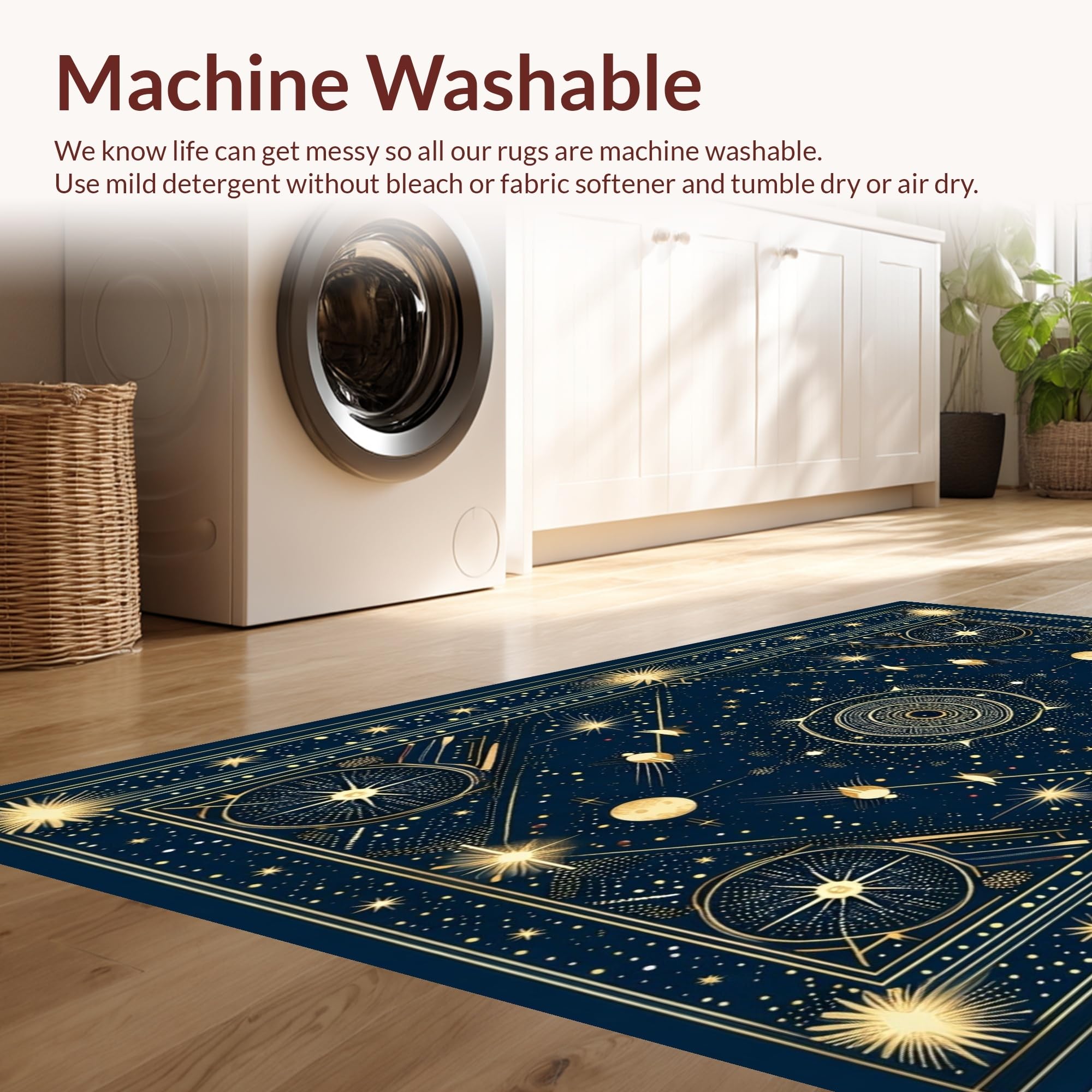 - Machine Washable: Our rugs can be easily thrown in the wash machine.