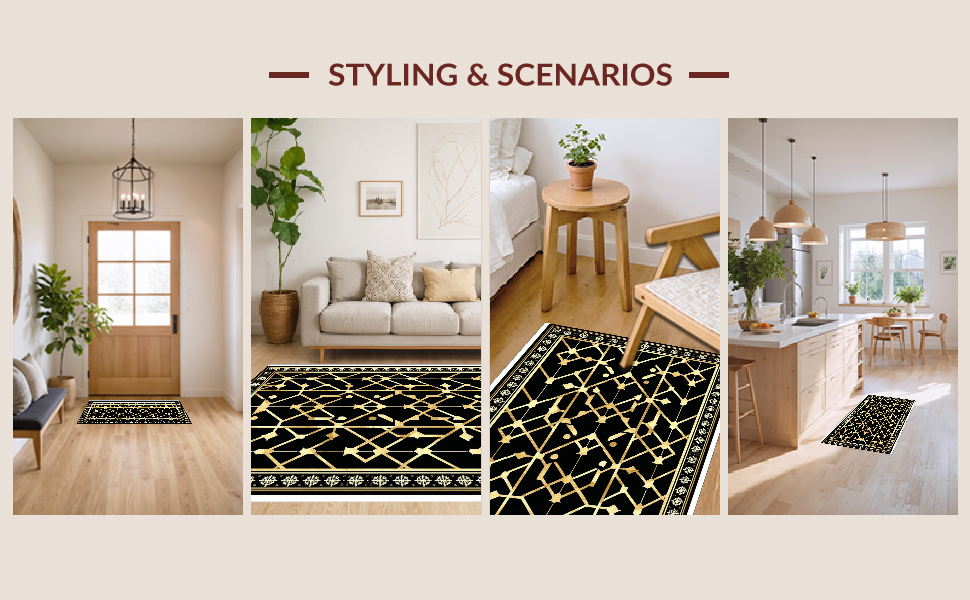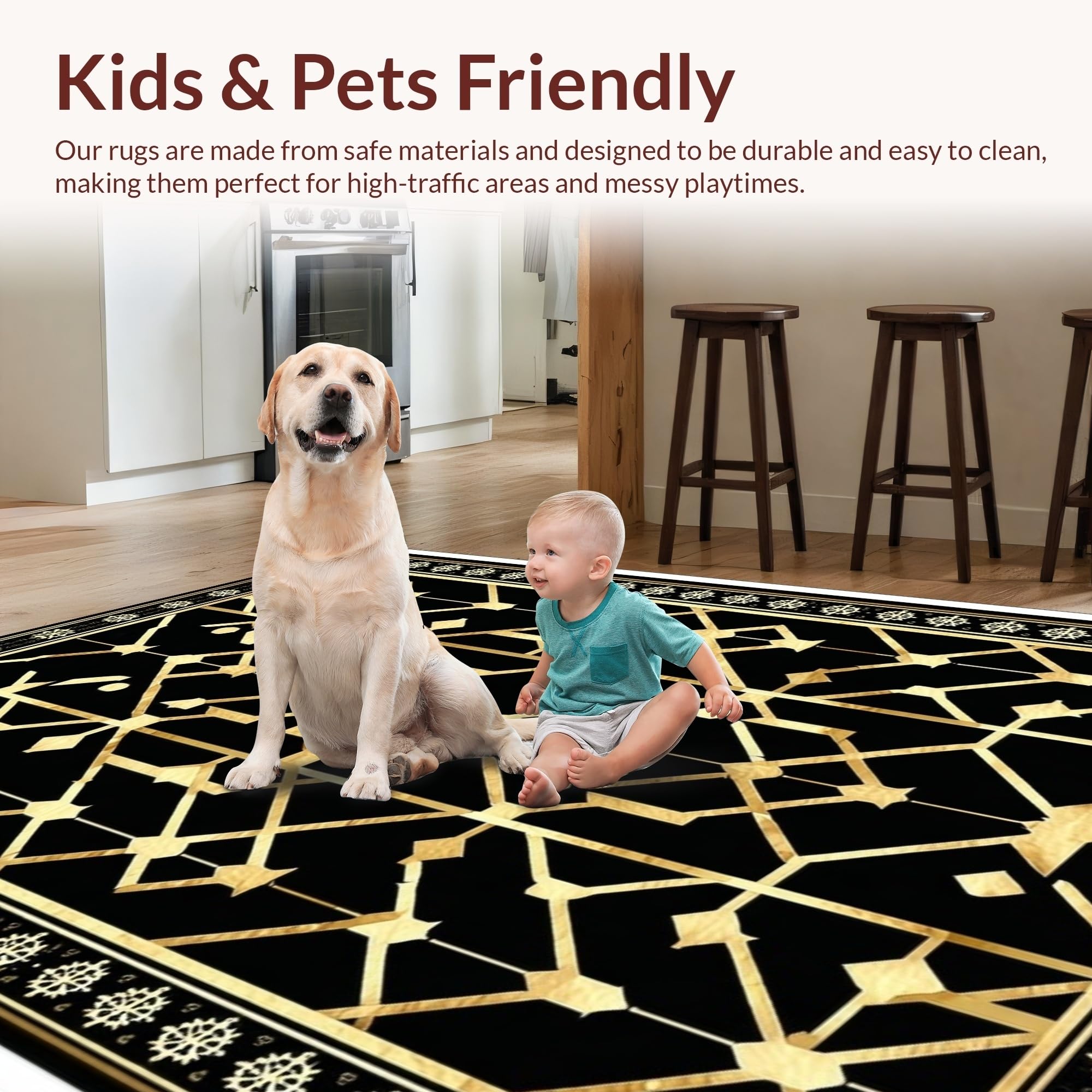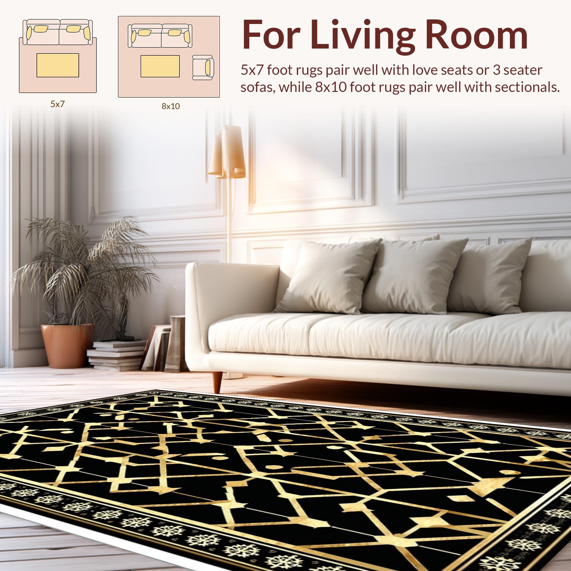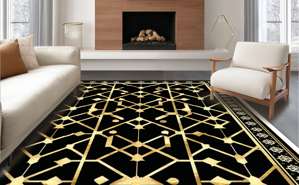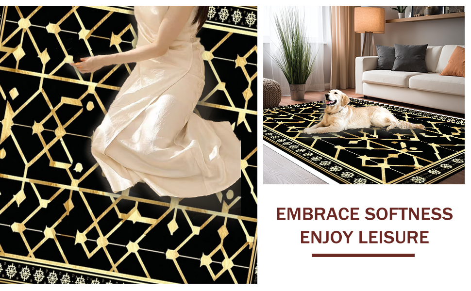Ultra Soft Area Rug, Non Slip, Stain Resistant, Washable Area Rugs for Living Room, Bedroom, Elegant Crisscross Shell Ornamentation(Black) Overview: