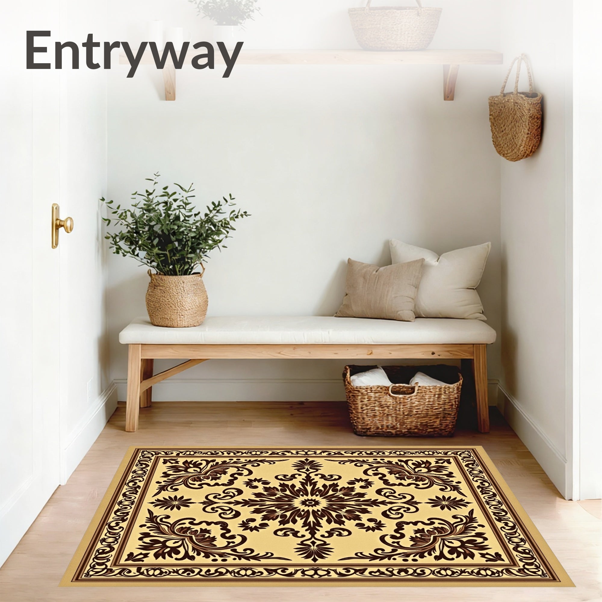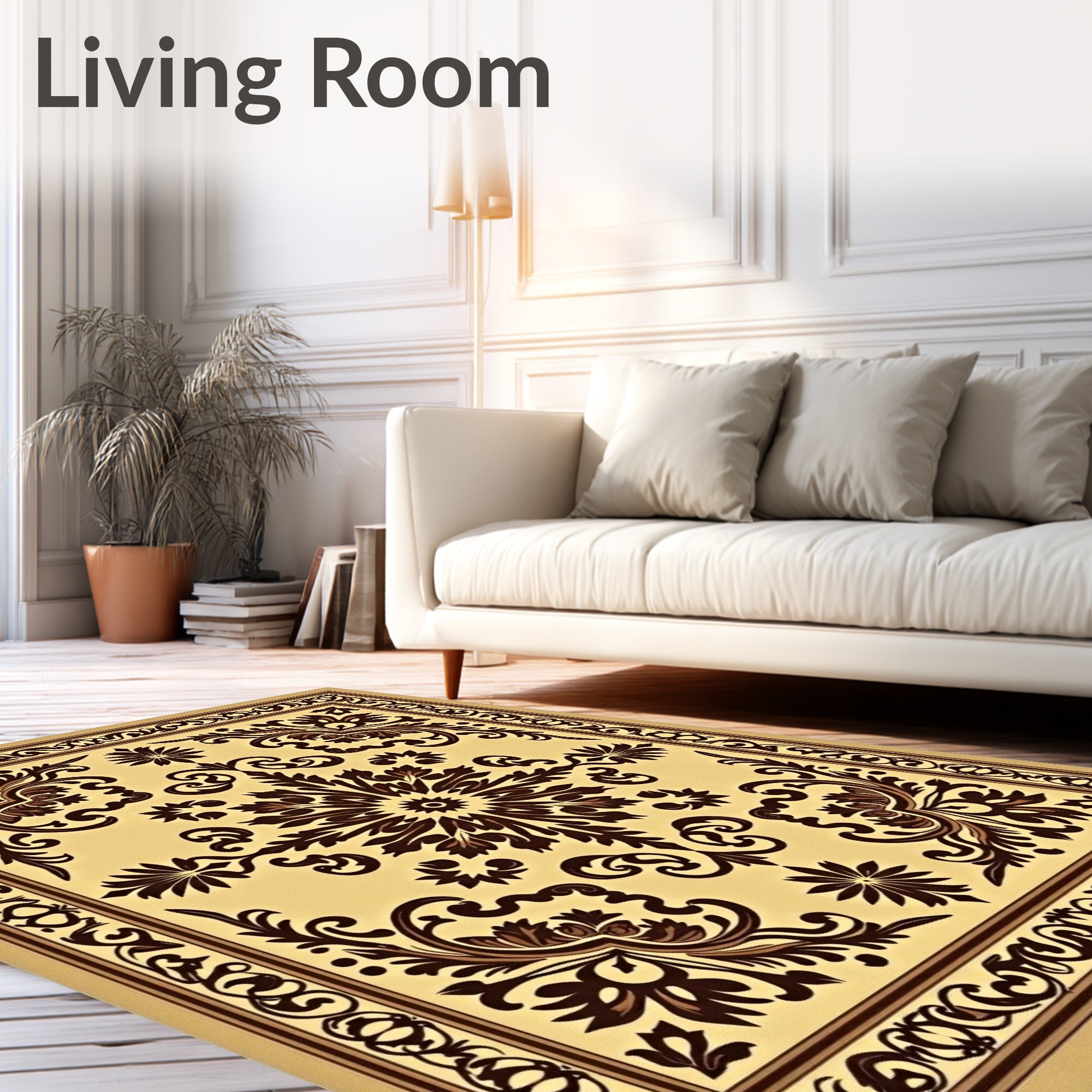 Flatwoven High Traffic Area Rug, Elegant Damask Floral Lattice Timeless Tapestry Covering, Non Slip, Stain Resistant, Washable Area Rugs for Living Room, Bedroom (Beige) Overview: