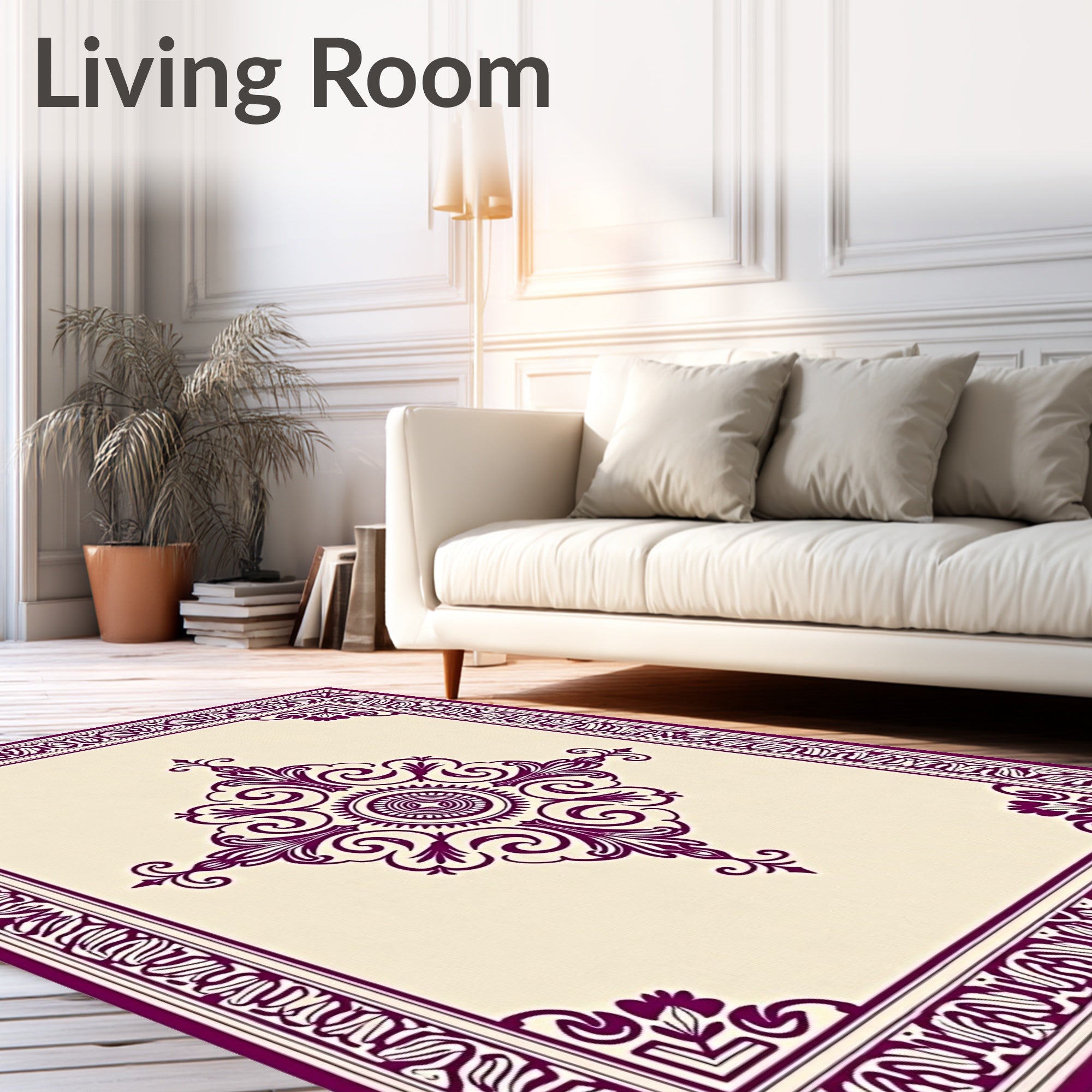 Ultra Soft Area Rug, Non Slip, Stain Resistant, Washable Area Rugs for Living Room, Bedroom, Elegant Damask Heritage Artisan Crafted(Beige) Overview: