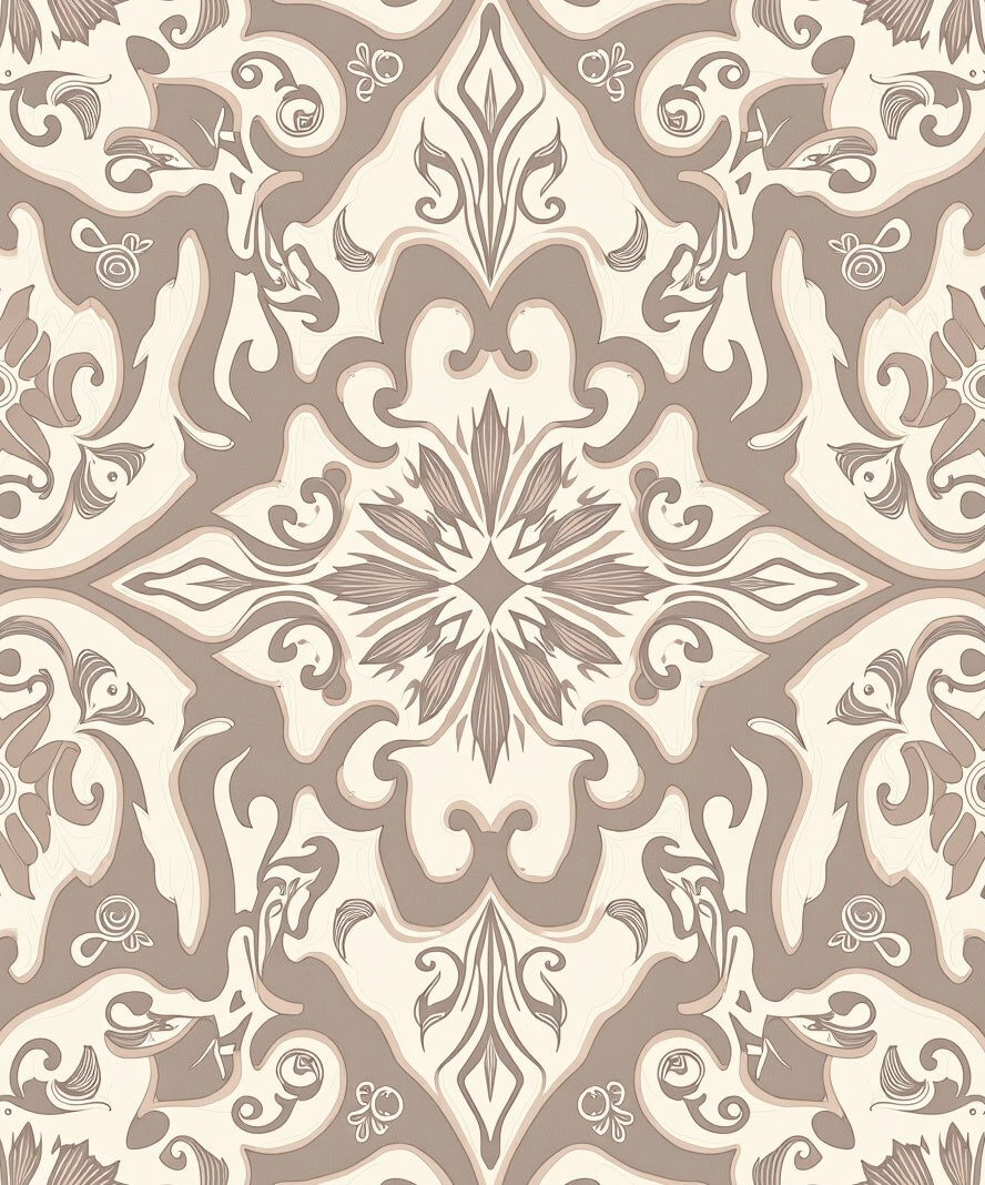 Elegant Damask Swirl Botanical Ornate Luxury Heirloom Collection(Beige)