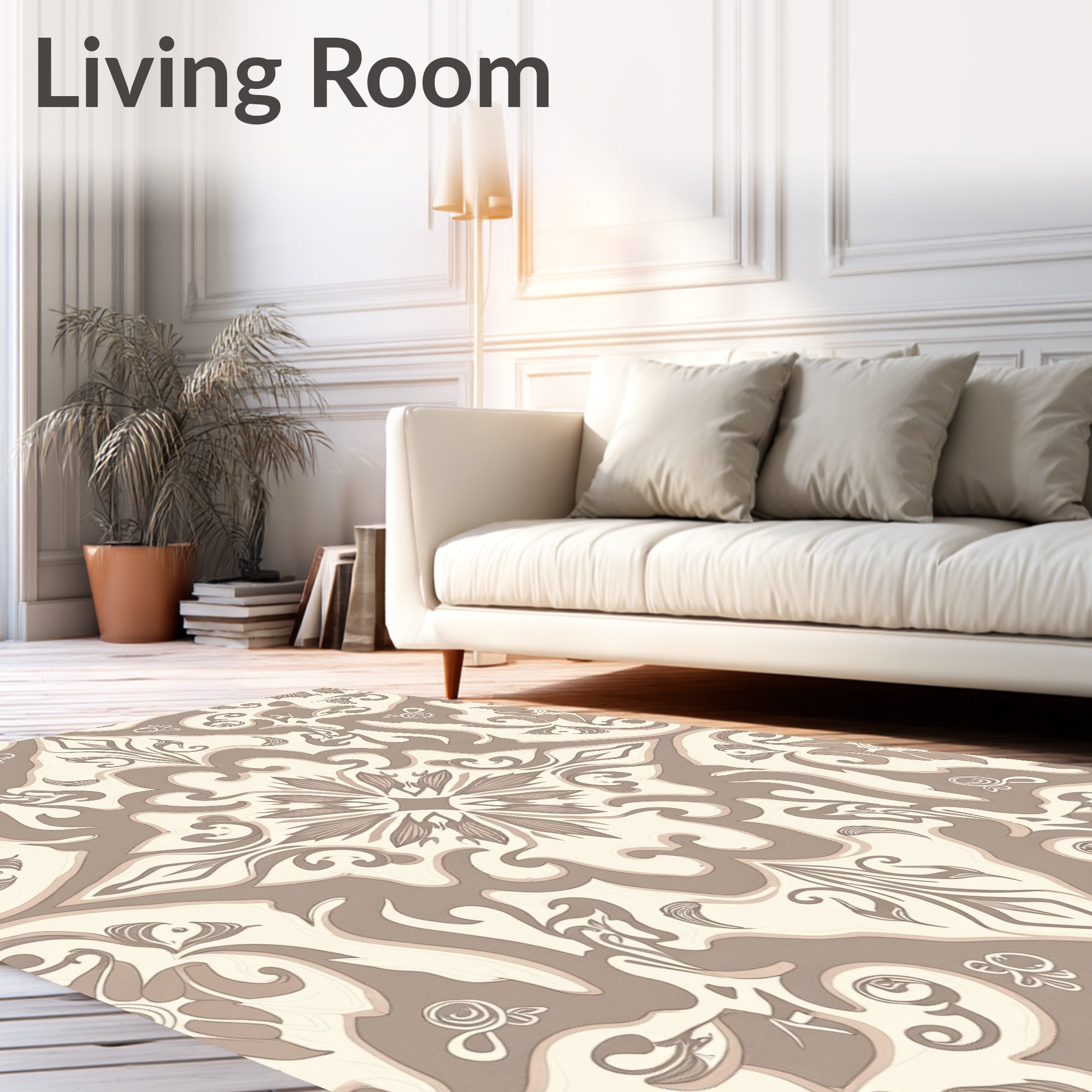 Ultra Soft Area Rug, Non Slip, Stain Resistant, Washable Area Rugs for Living Room, Bedroom, Elegant Damask Swirl Botanical Ornate Luxury Heirloom Collection(Beige) Overview:
