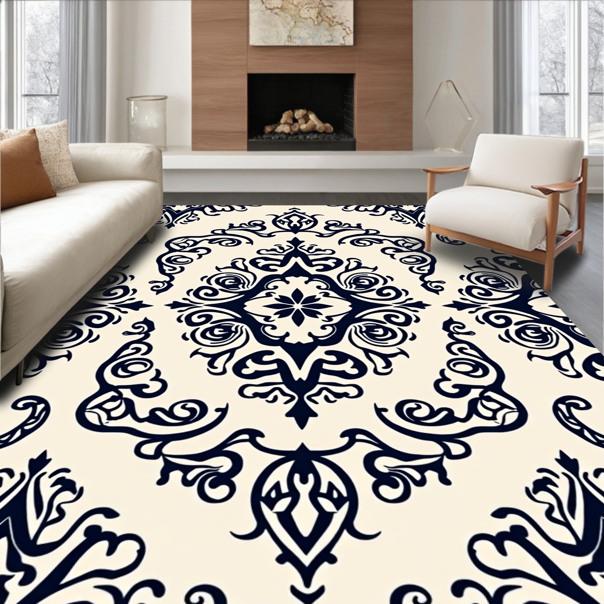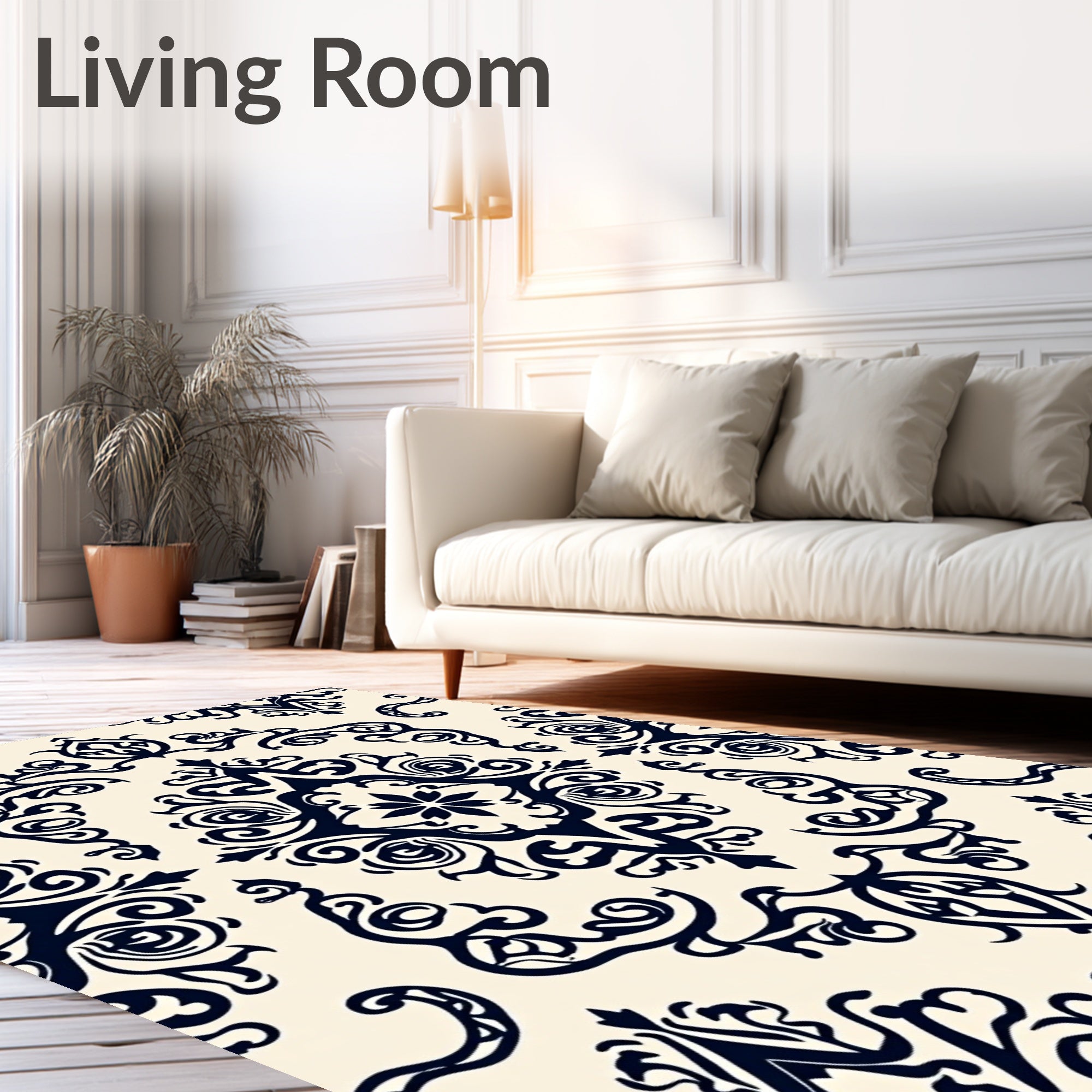 Ultra Soft Area Rug, Non Slip, Stain Resistant, Washable Area Rugs for Living Room, Bedroom, Elegant Damask Swirl Paisley Curvilinear Artisan(Black) Overview: