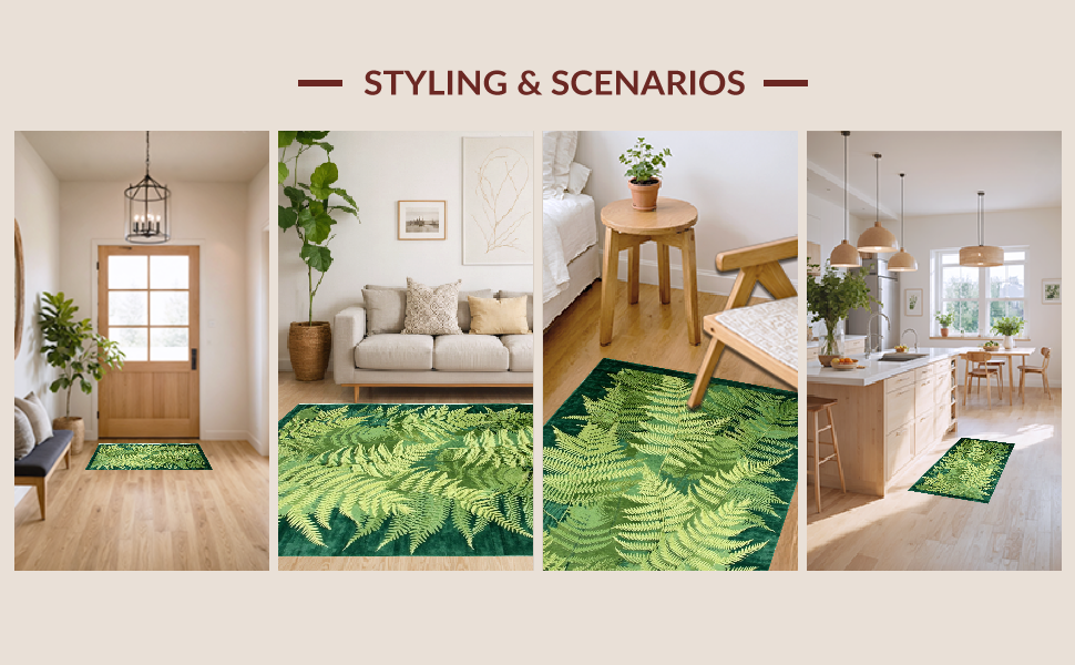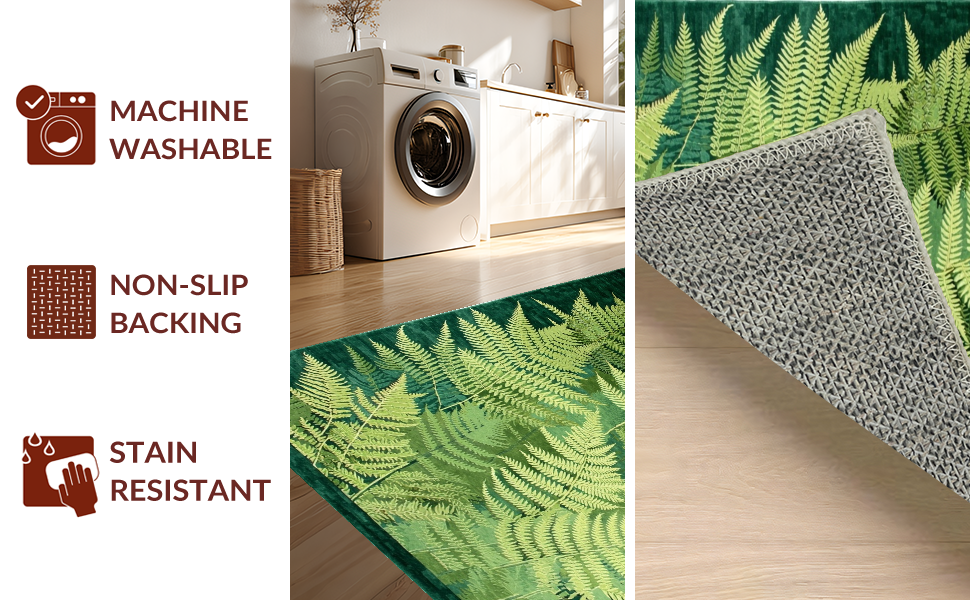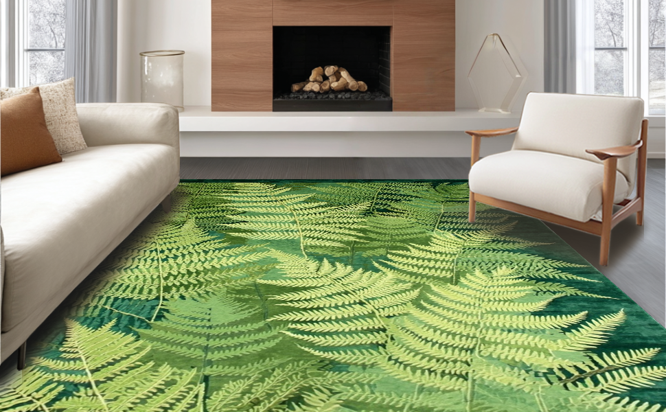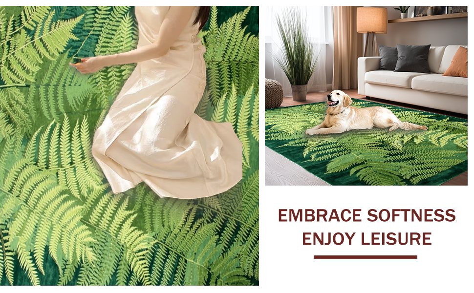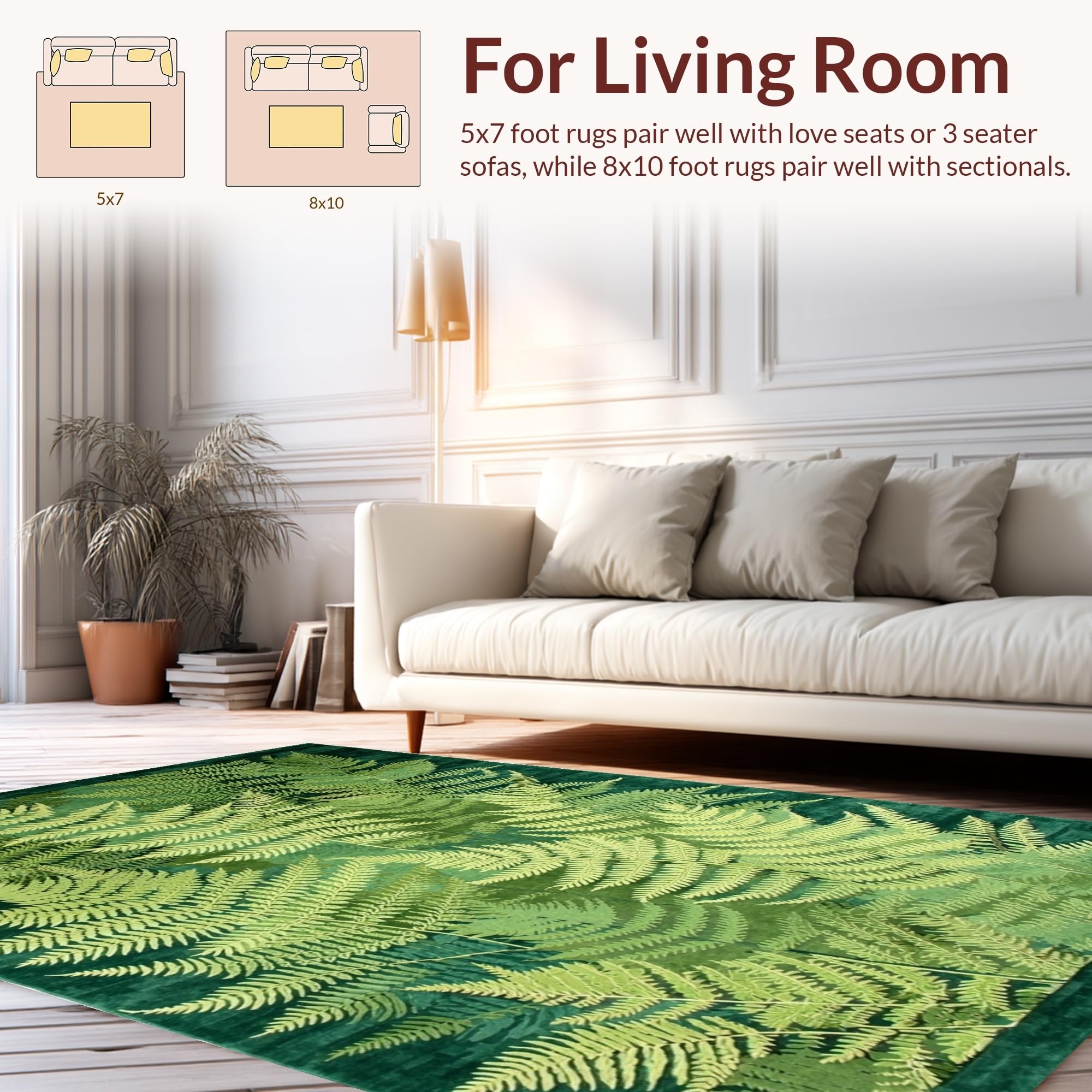 Ultra Soft Area Rug, Non Slip, Stain Resistant, Washable Area Rugs for Living Room, Bedroom, Elegant Deep Fern Textured Aesthetic(Green) Overview: