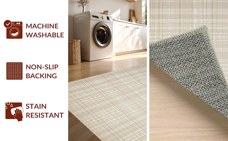 Ultra Soft Area Rug, Non Slip, Stain Resistant, Washable Area Rugs for Living Room, Bedroom, Elegant Diamond Checkered Aesthetic(Beige) Overview: