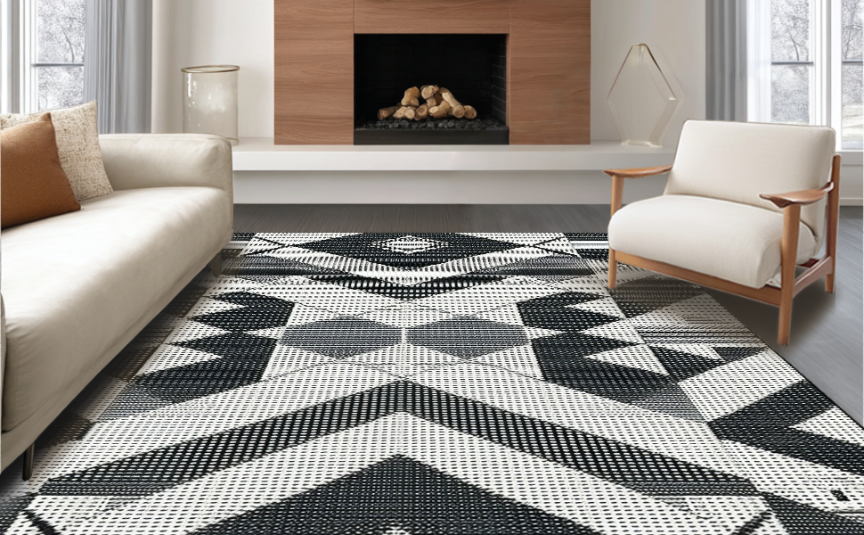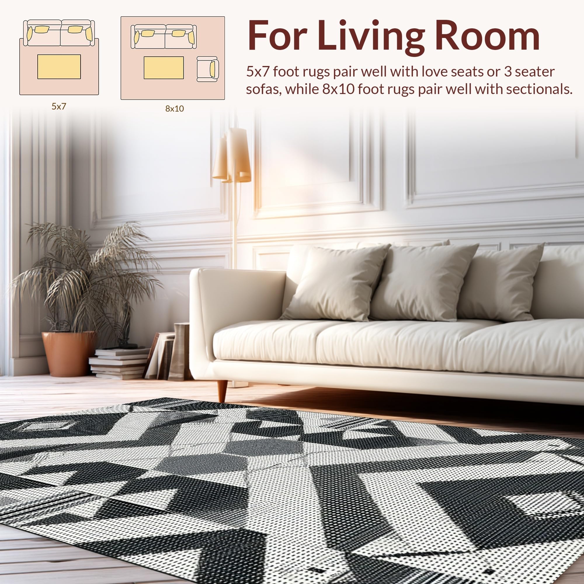 Ultra Soft Area Rug, Non Slip, Stain Resistant, Washable Area Rugs for Living Room, Bedroom, Elegant Diamond Patterned Aesthetic(Black) Overview: