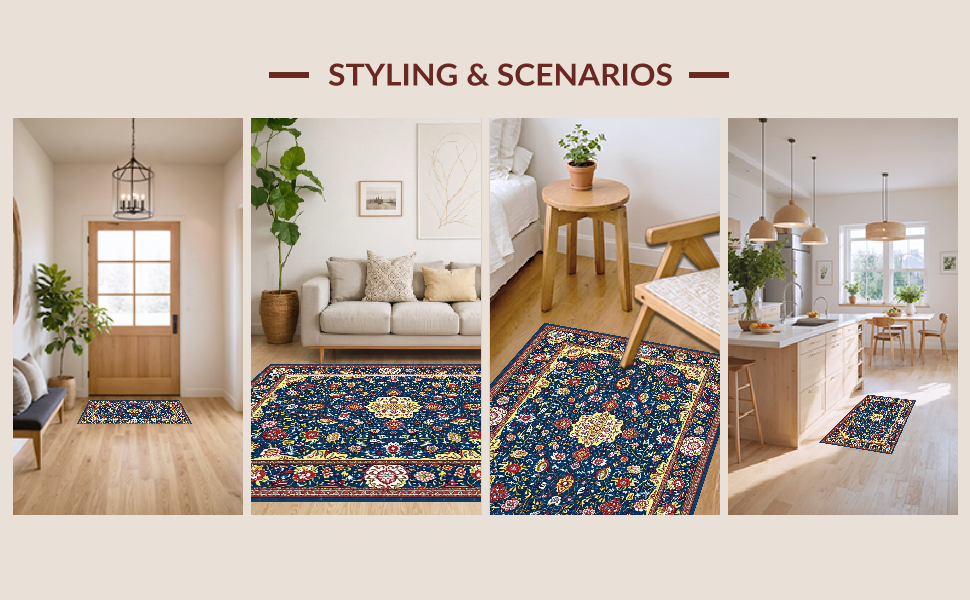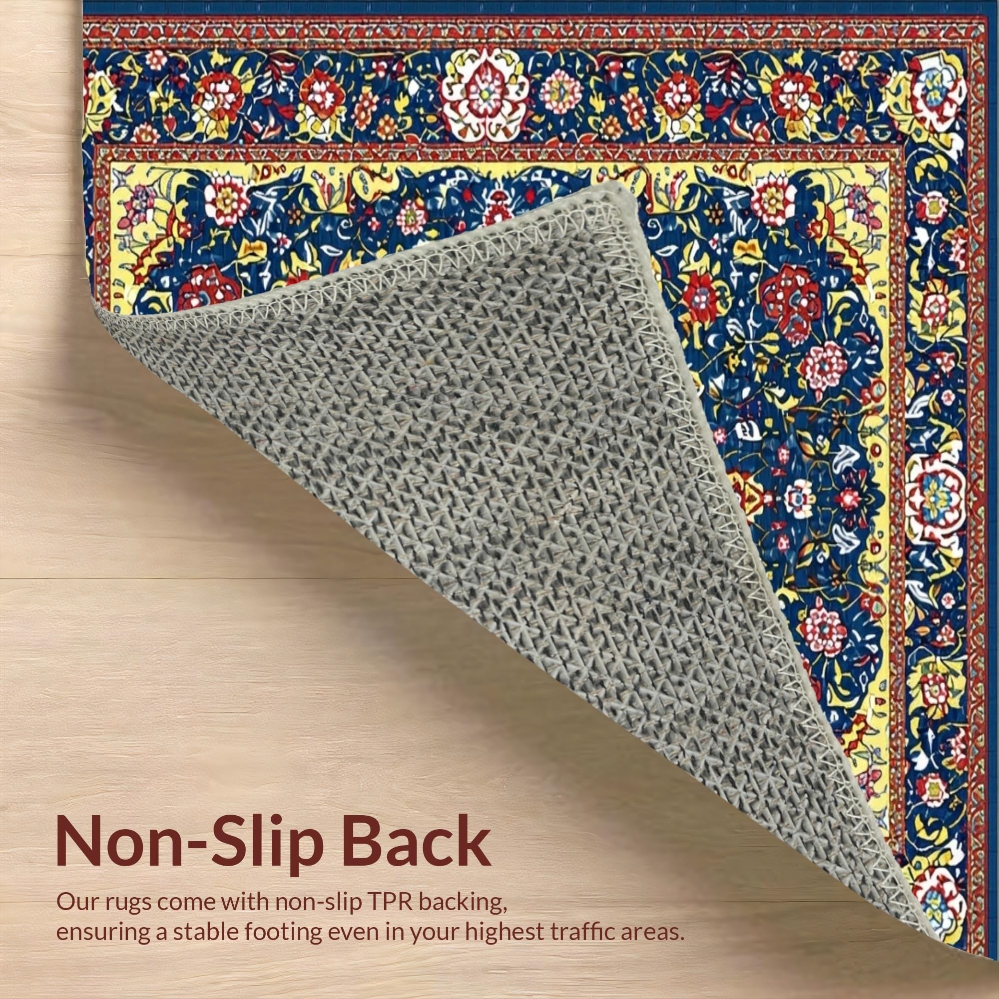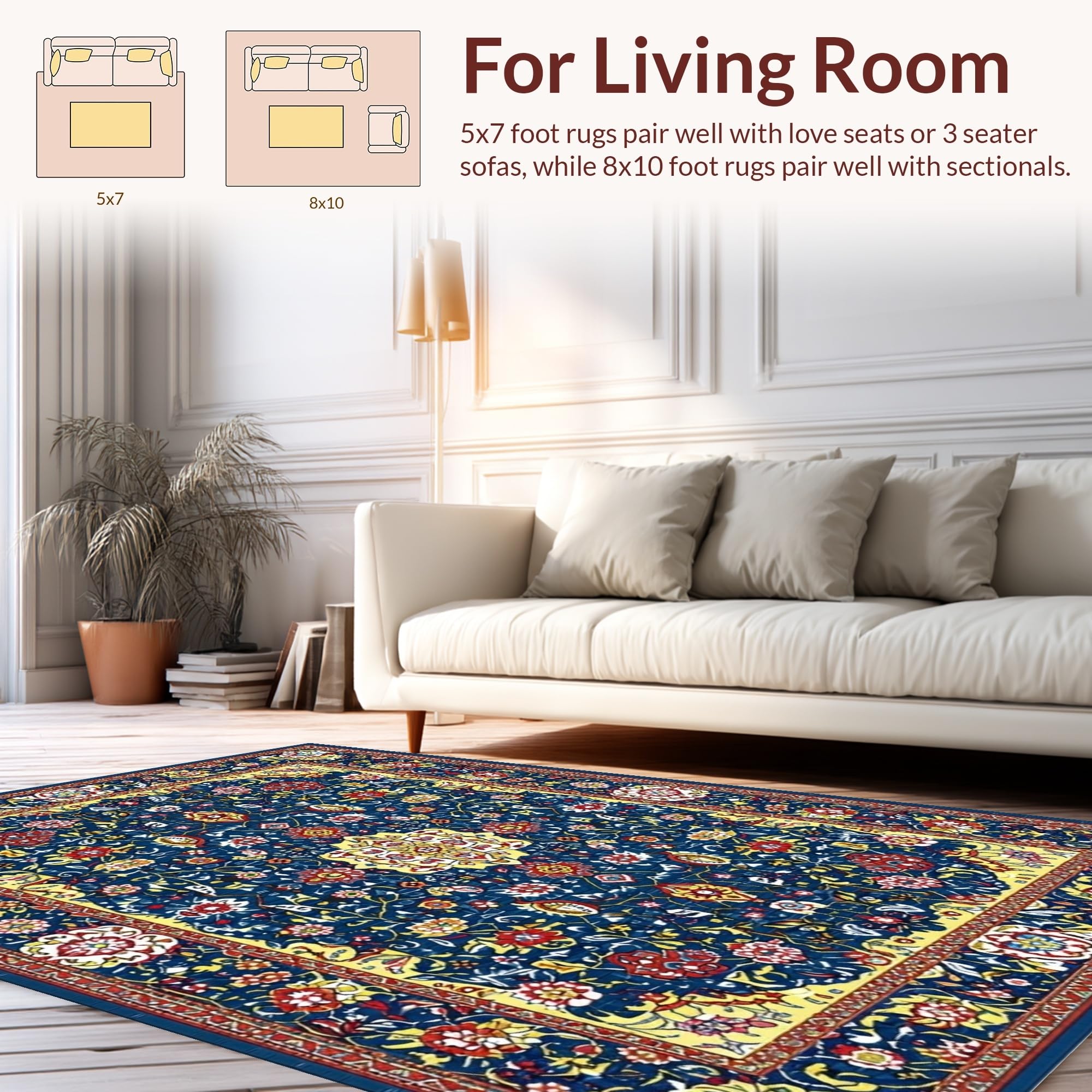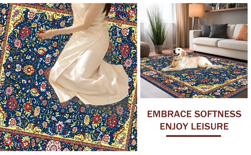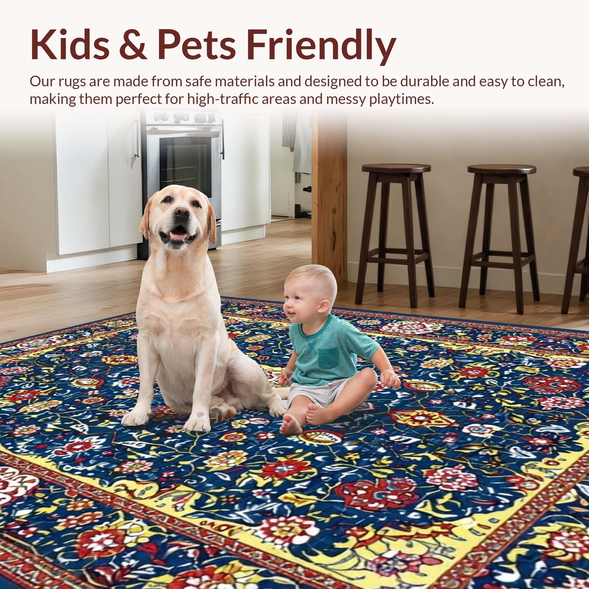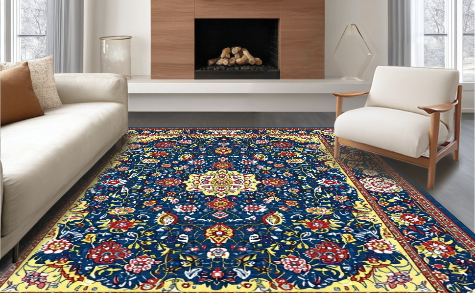 Ultra Soft Area Rug, Non Slip, Stain Resistant, Washable Area Rugs for Living Room, Bedroom, Elegant Distressed Artful Pattern(Blue) Overview: