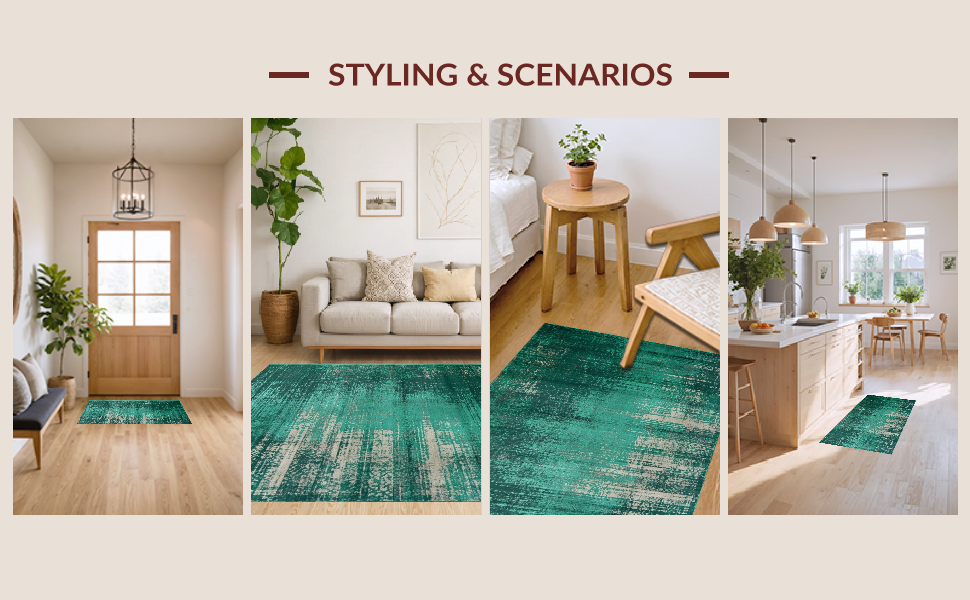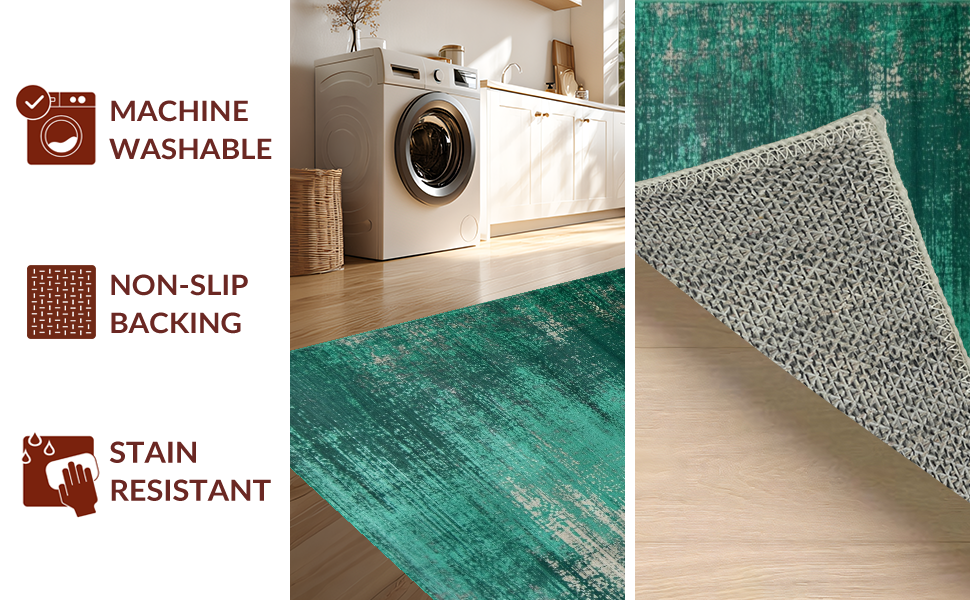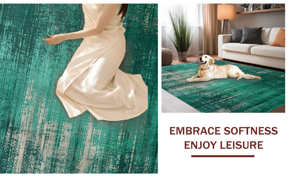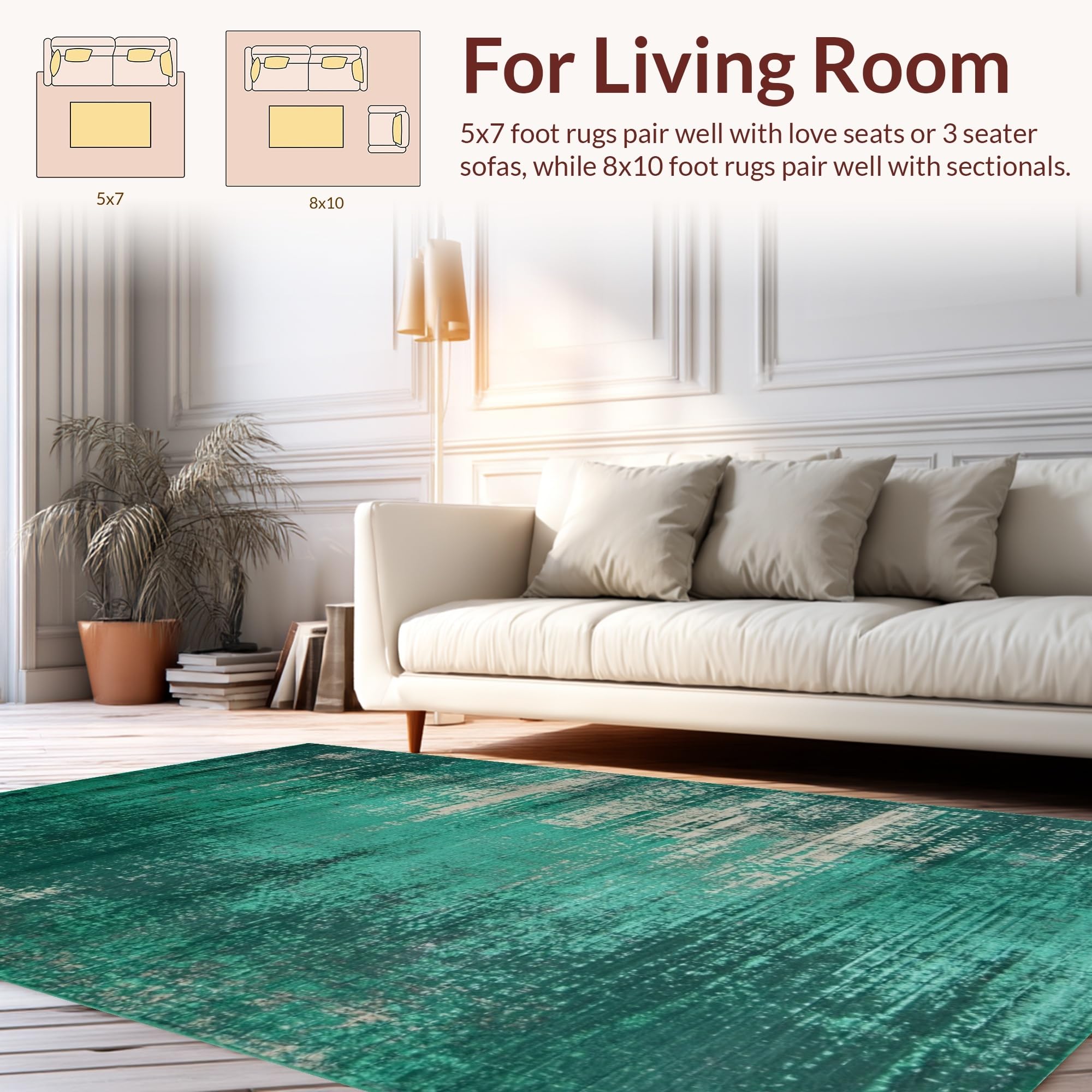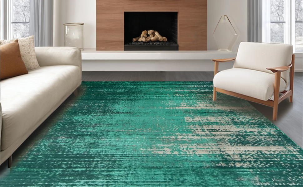 Ultra Soft Area Rug, Non Slip, Stain Resistant, Washable Area Rugs for Living Room, Bedroom, Elegant Distressed Artistic Design(Green) Overview:
