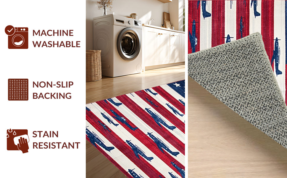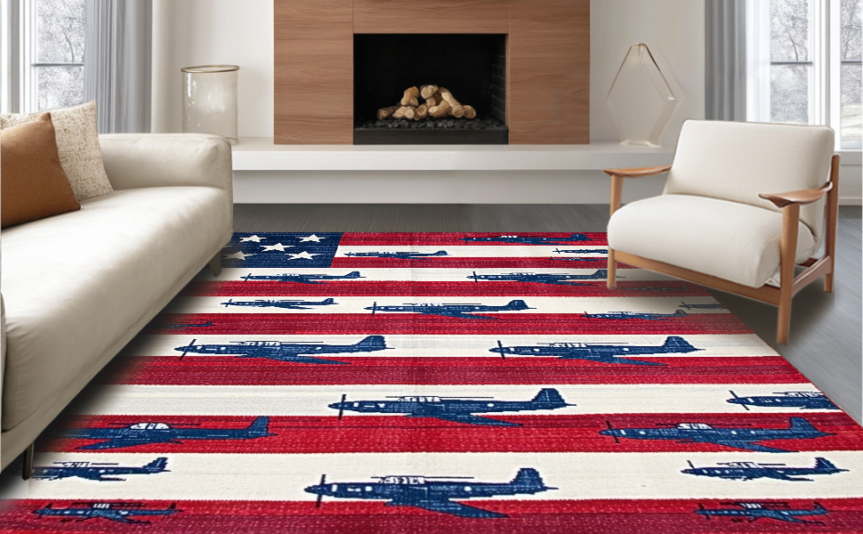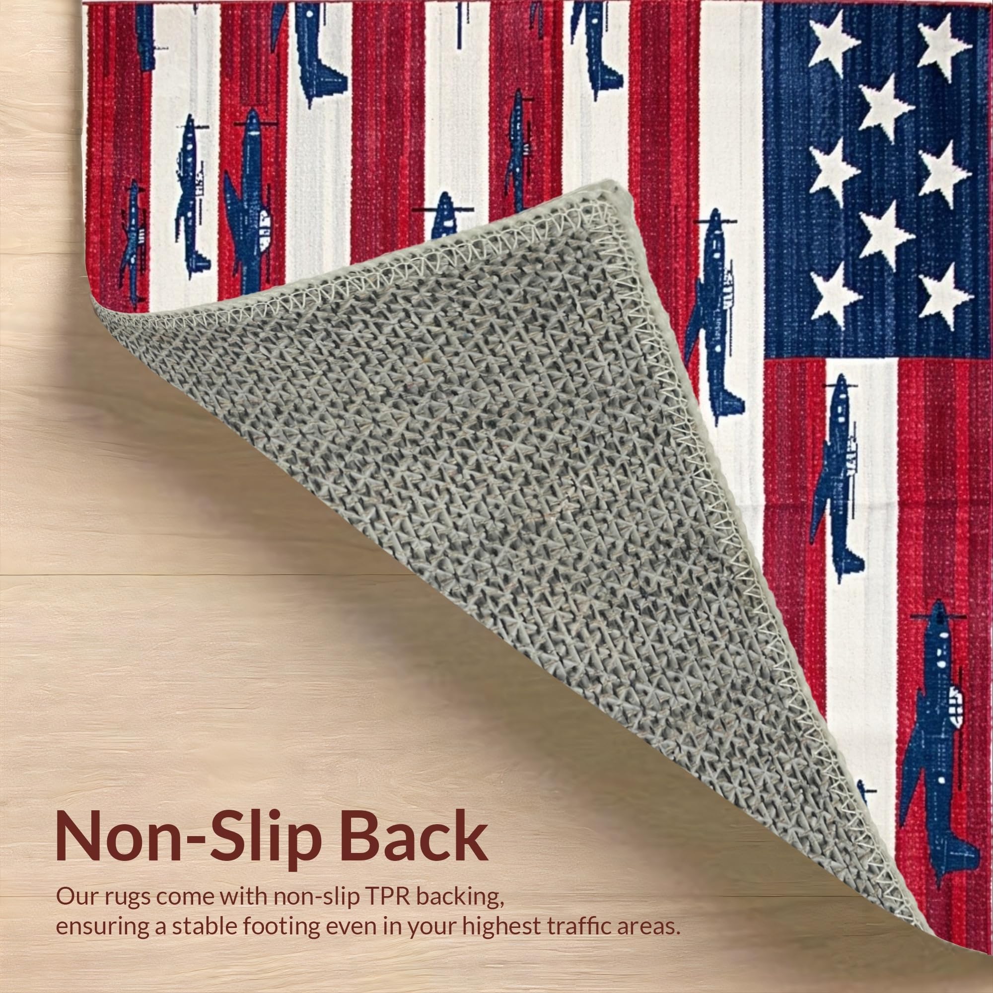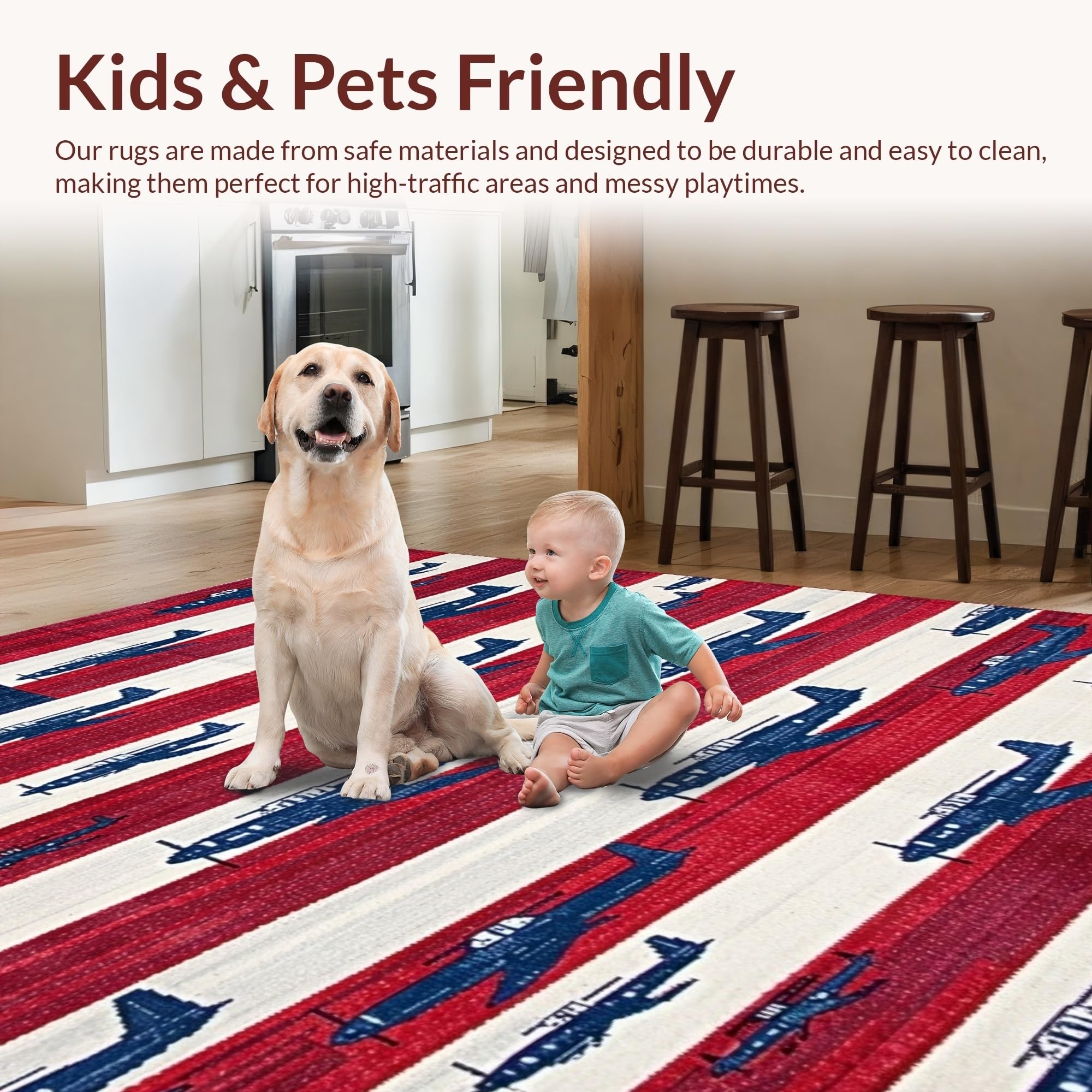 Ultra Soft Area Rug, Non Slip, Stain Resistant, Washable Area Rugs for Living Room, Bedroom, Elegant Distressed Aviation Pattern(Red) Overview: