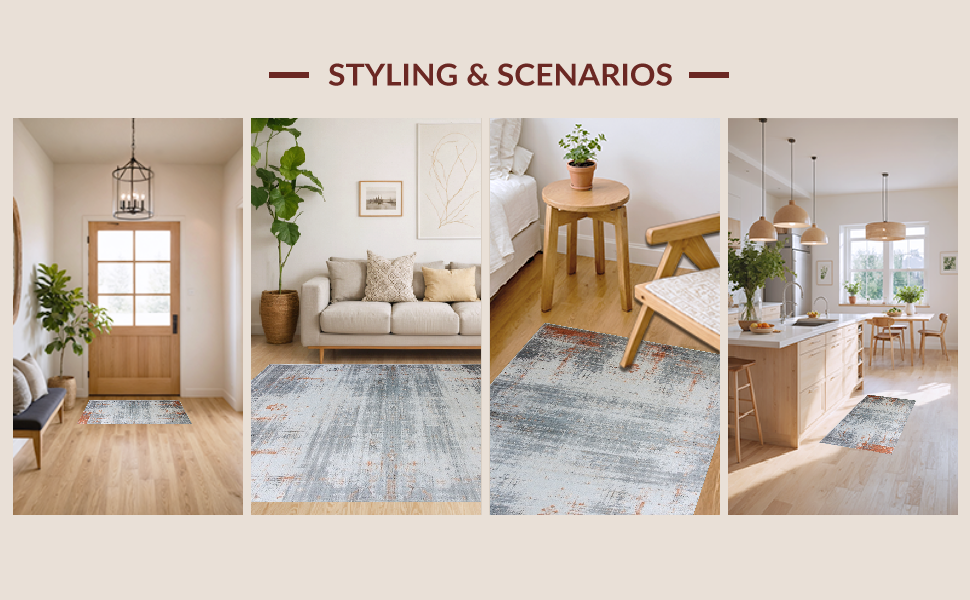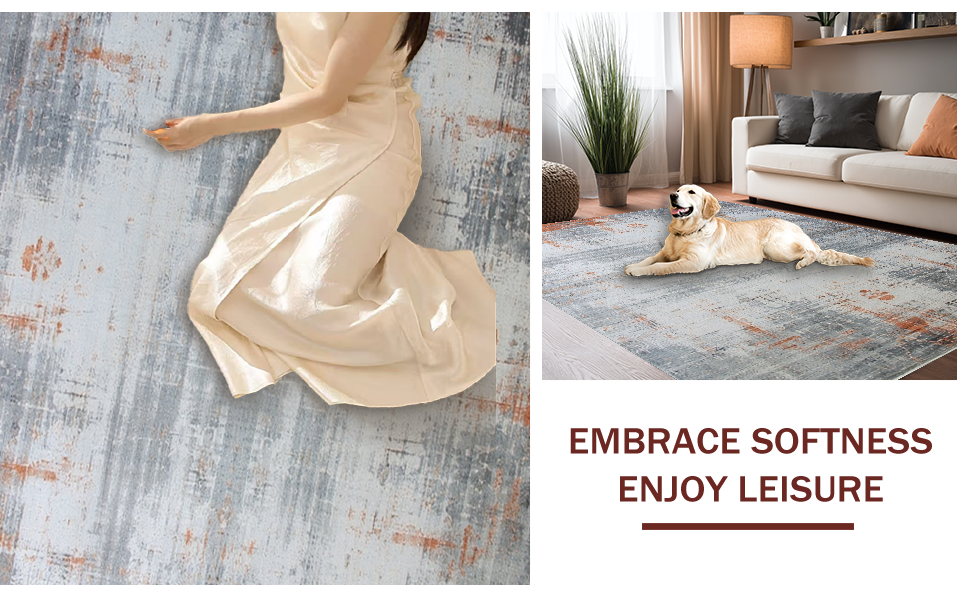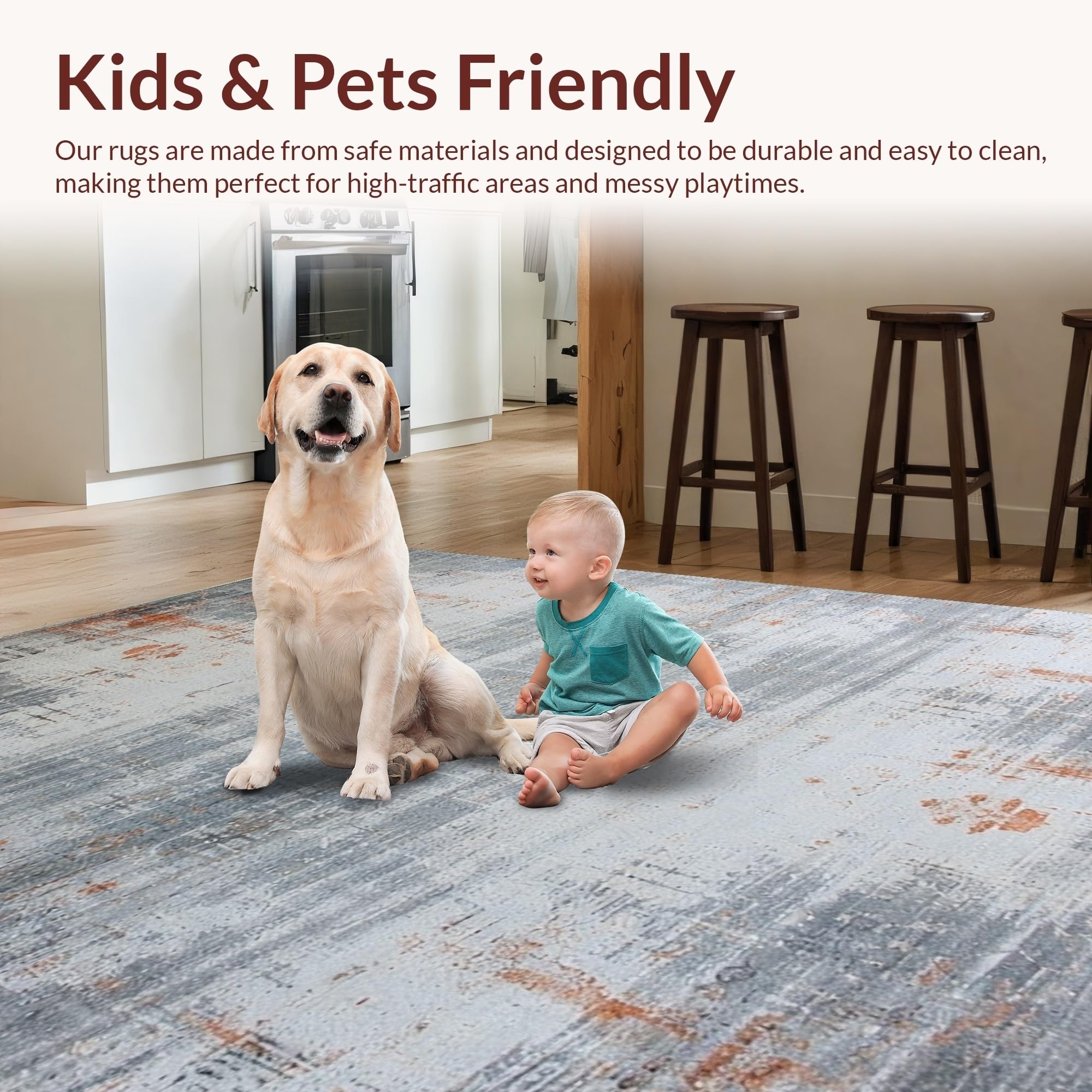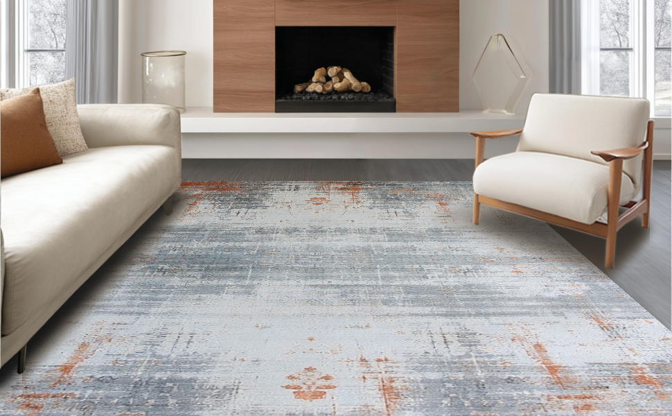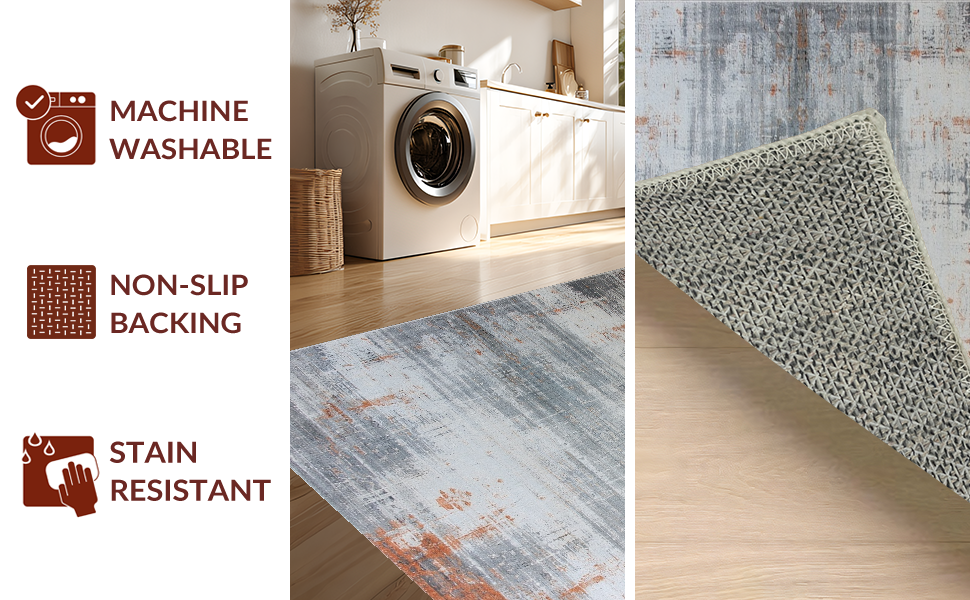 Ultra Soft Area Rug, Non Slip, Stain Resistant, Washable Area Rugs for Living Room, Bedroom, Elegant Distressed Gray Aesthetic(Gray) Overview: