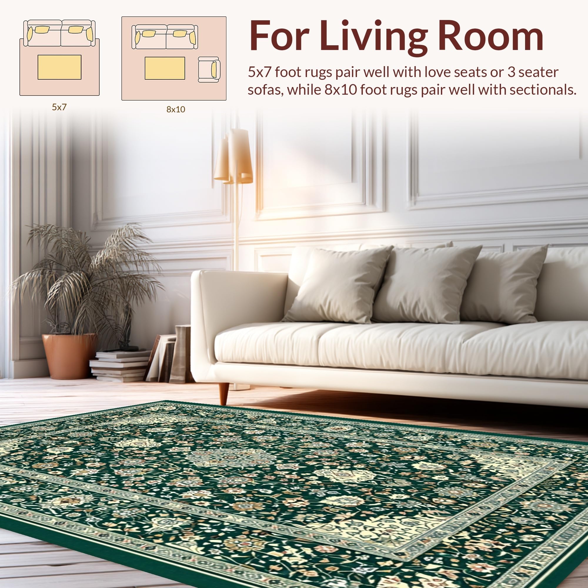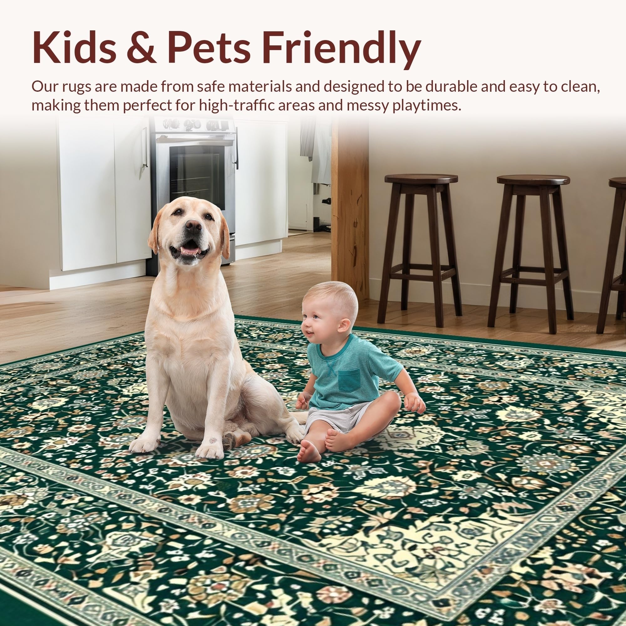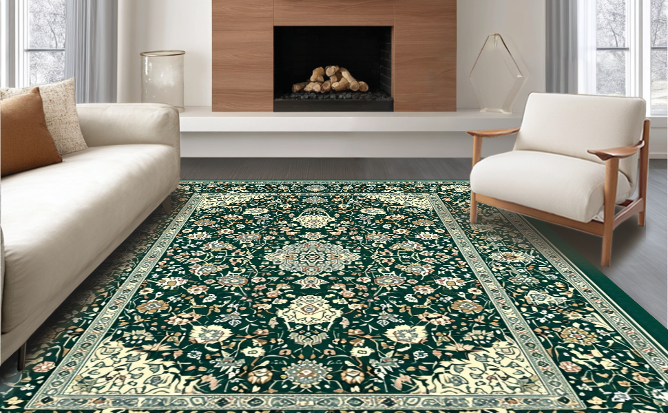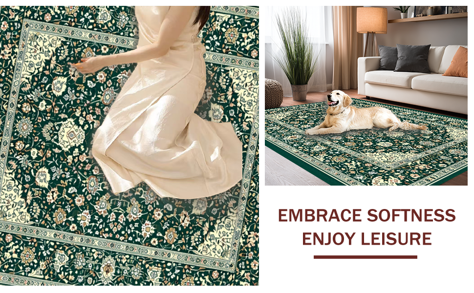 Ultra Soft Area Rug, Non Slip, Stain Resistant, Washable Area Rugs for Living Room, Bedroom, Elegant Distressed Green Aesthetic(Green) Overview: