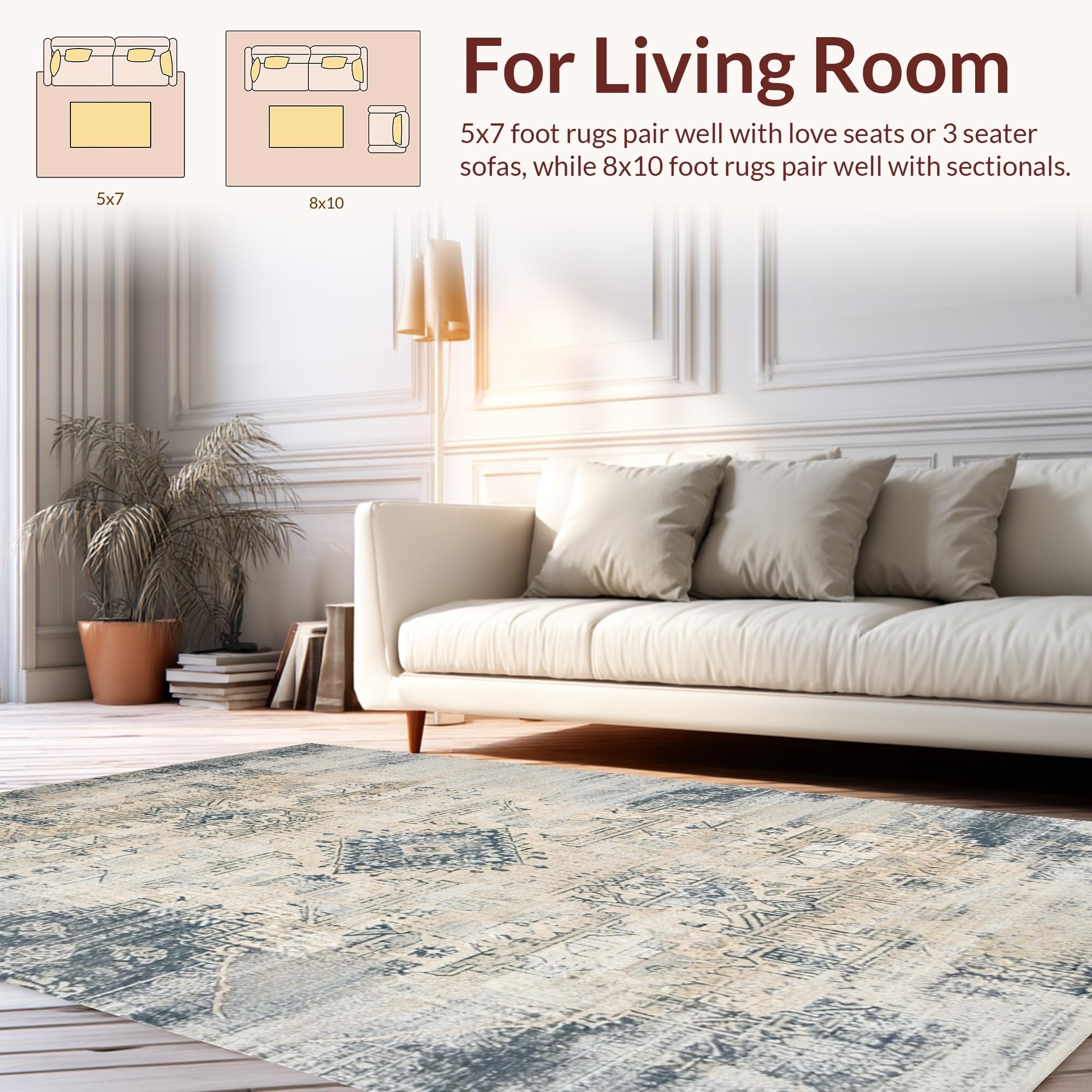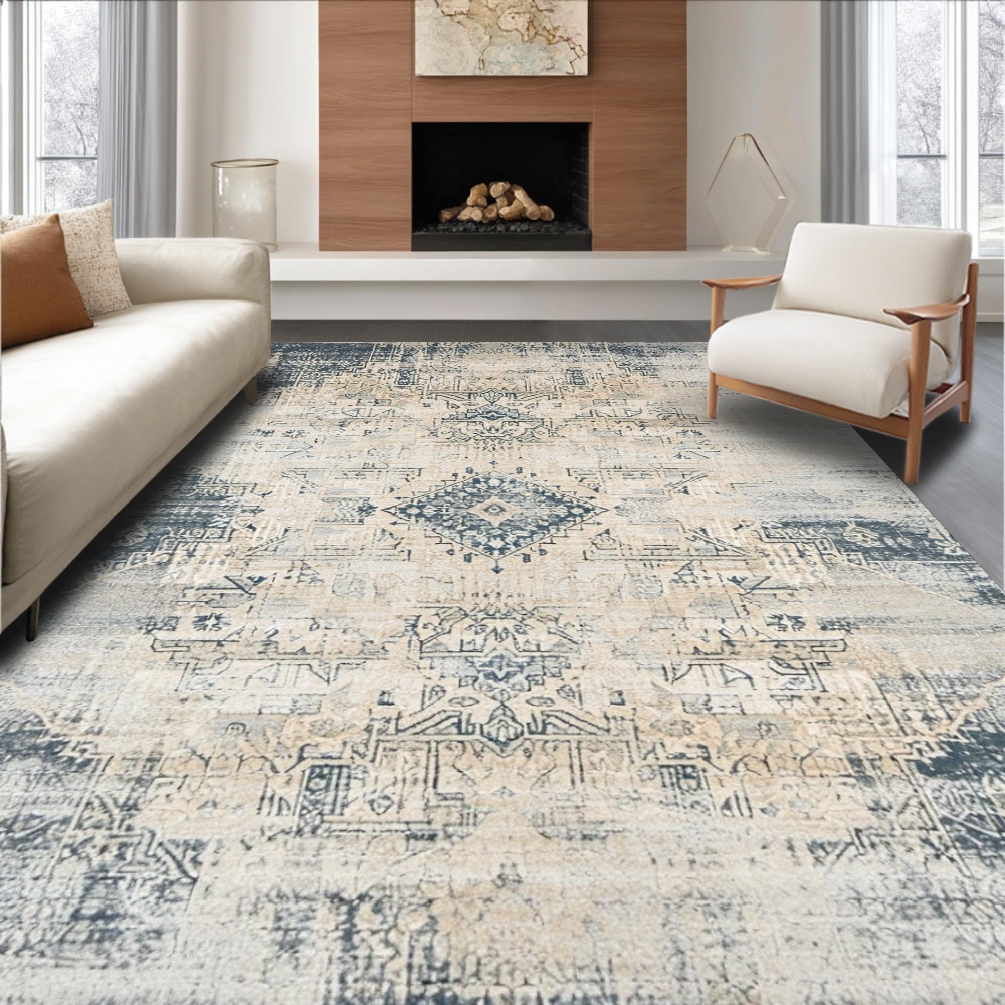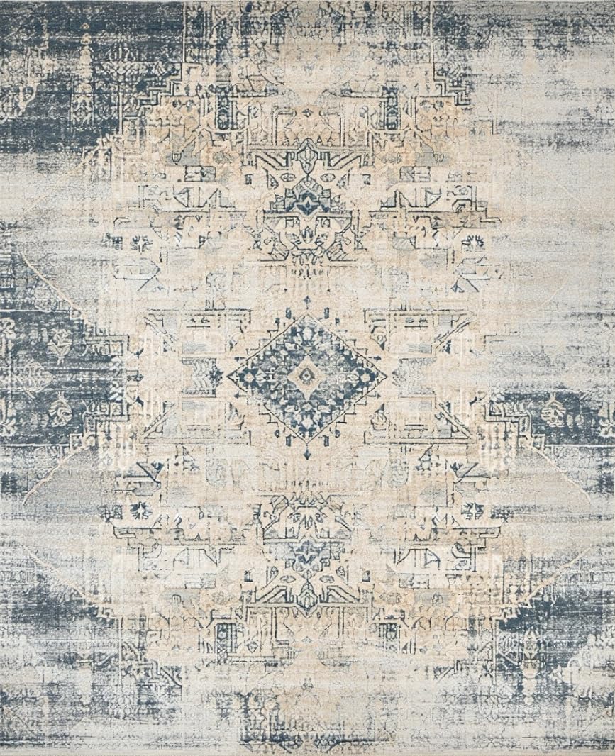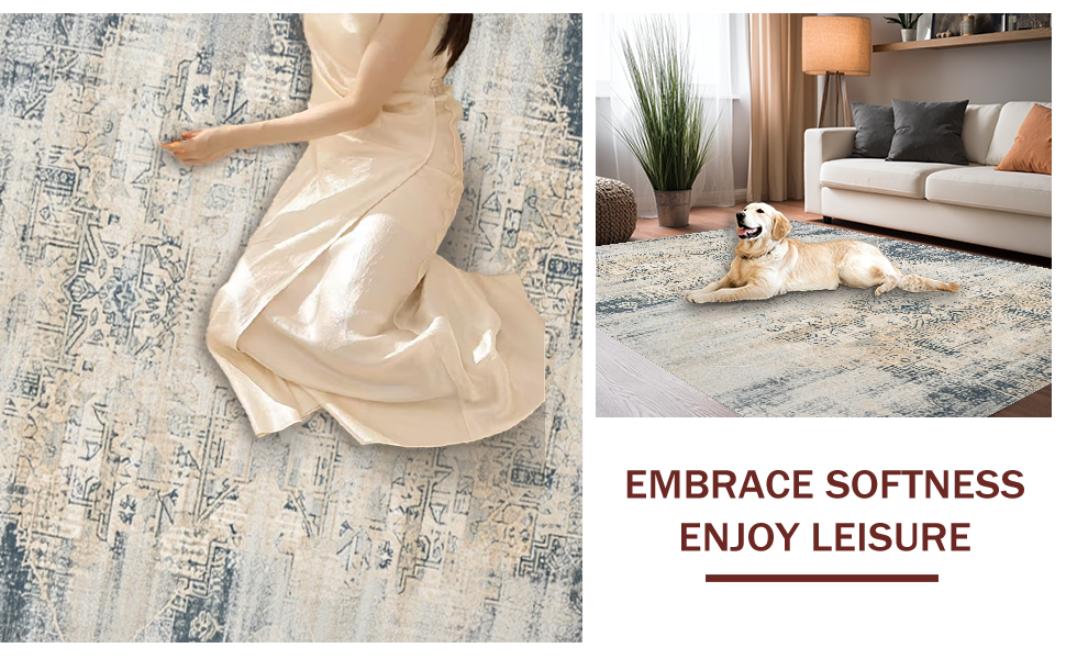 Ultra Soft Area Rug, Non Slip, Stain Resistant, Washable Area Rugs for Living Room, Bedroom, Elegant Distressed Striped Design(Beige) Overview: